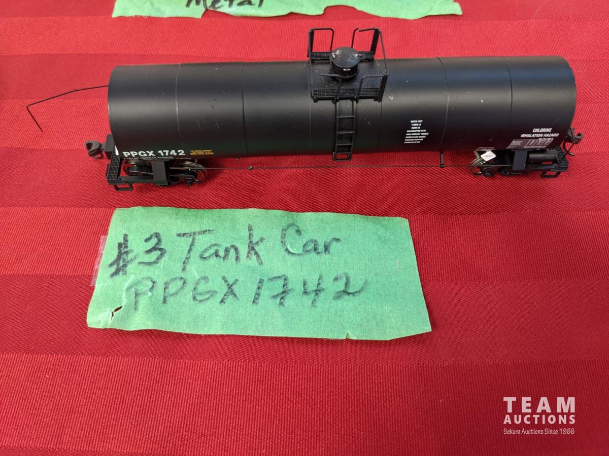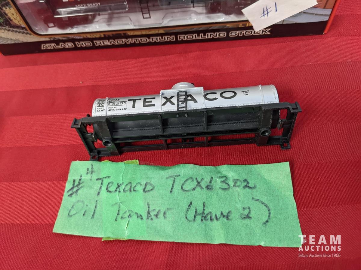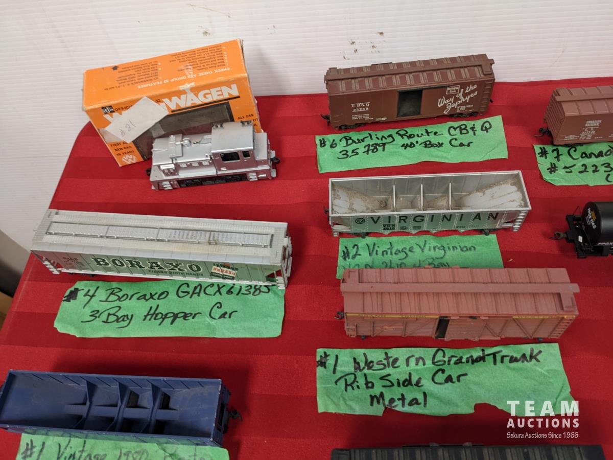 Assortment of train cars, tanks, side and hopper cars