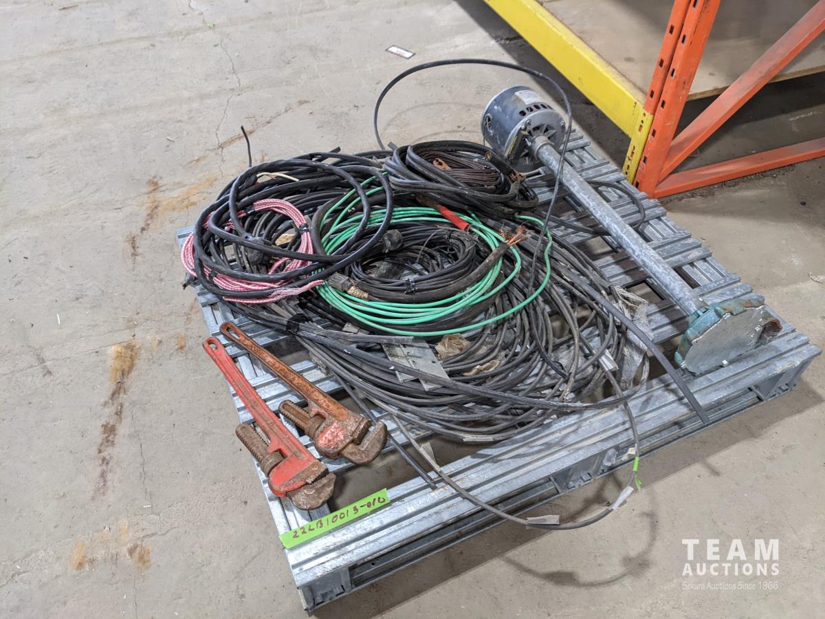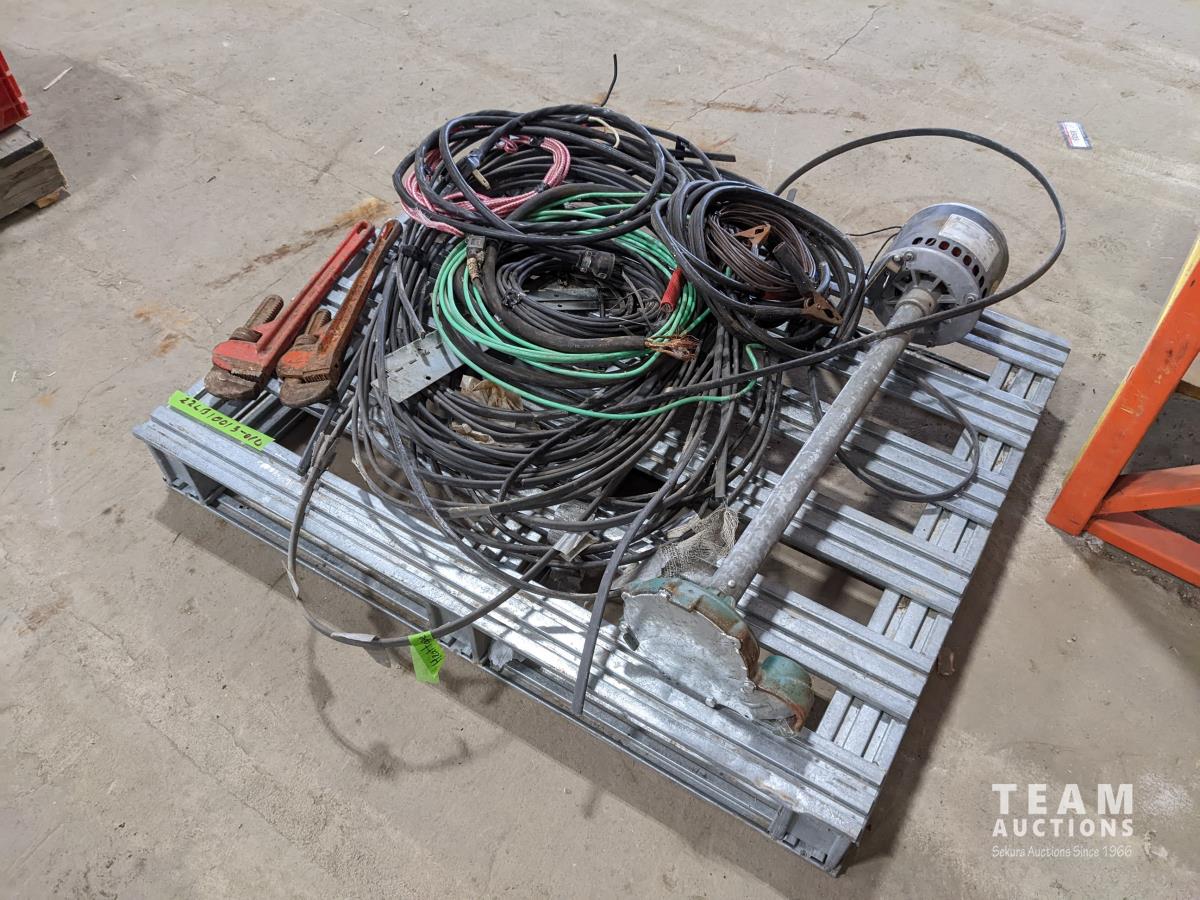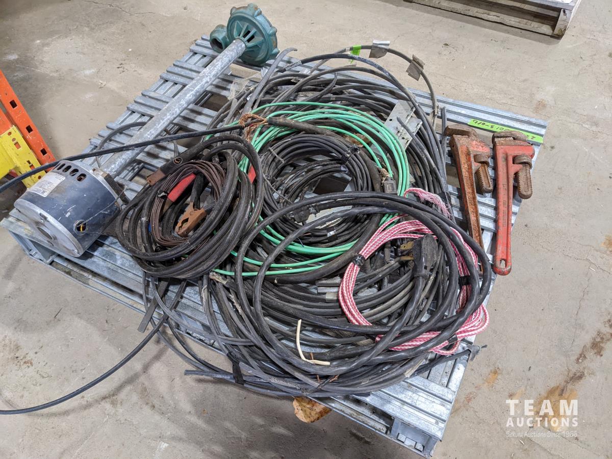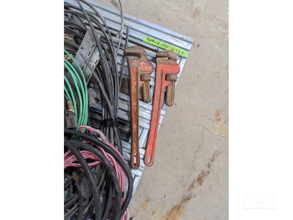 (2) pipe wrenches, booster cables, sump pump, qty of electrical wire