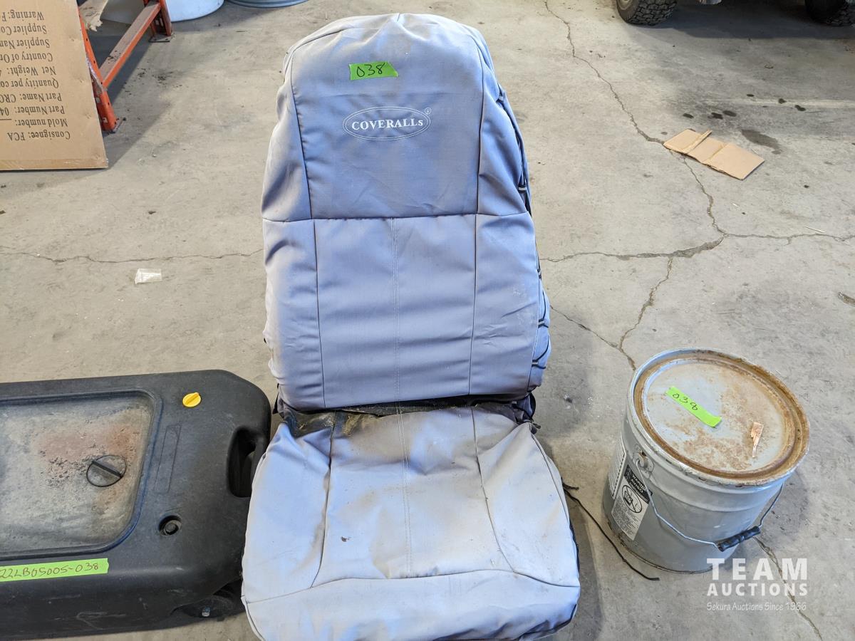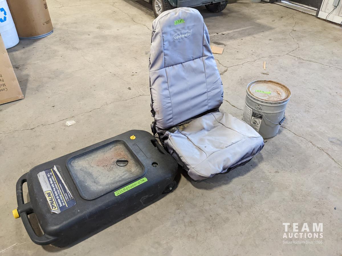 1269 Oil Drain Pan, Truck Seat & Pail of Primer Paint