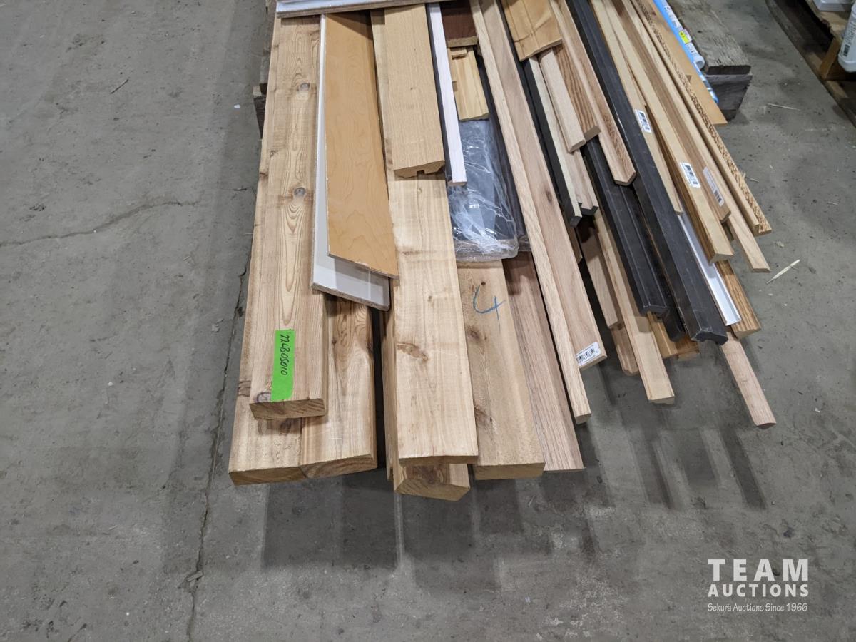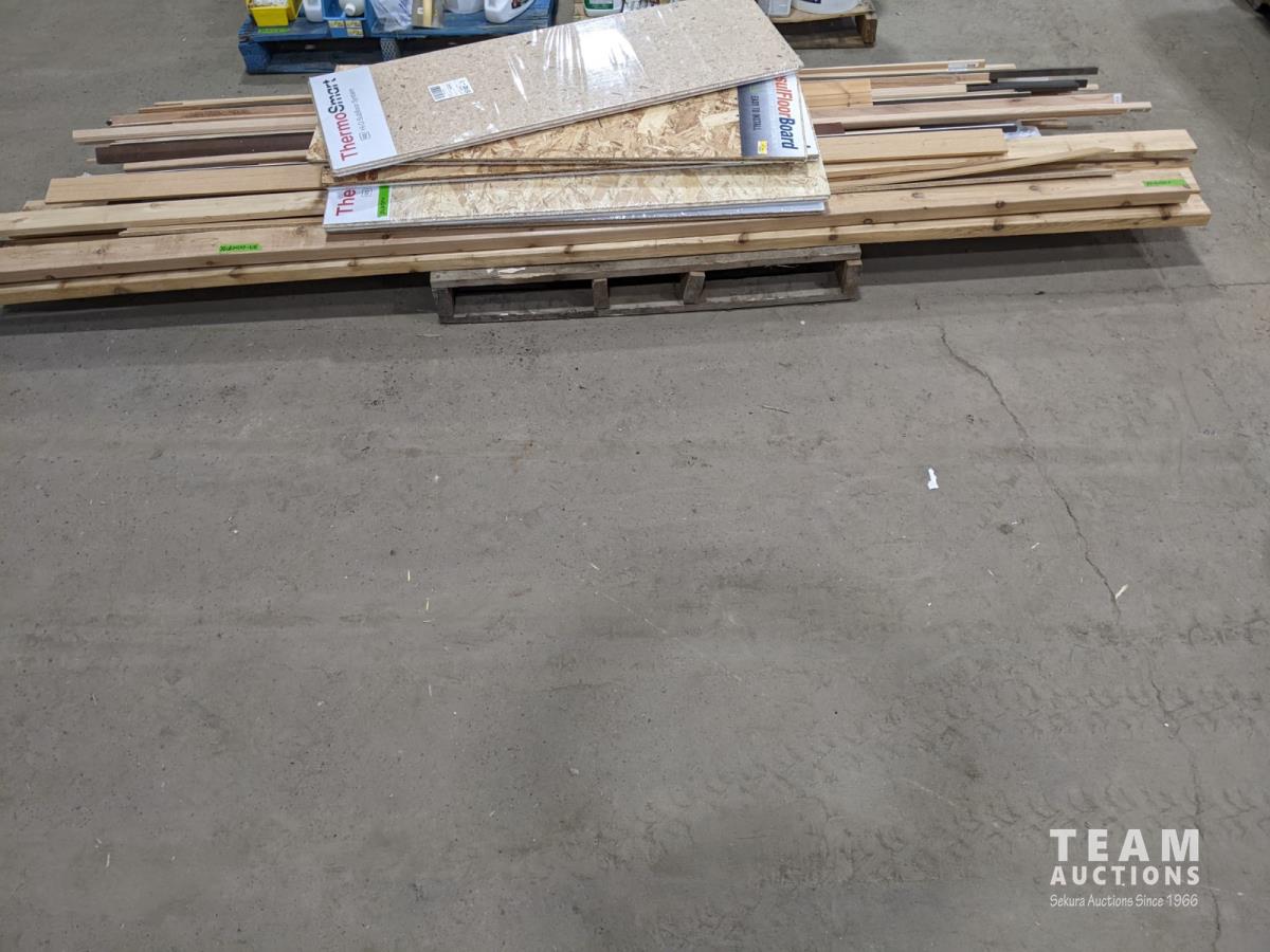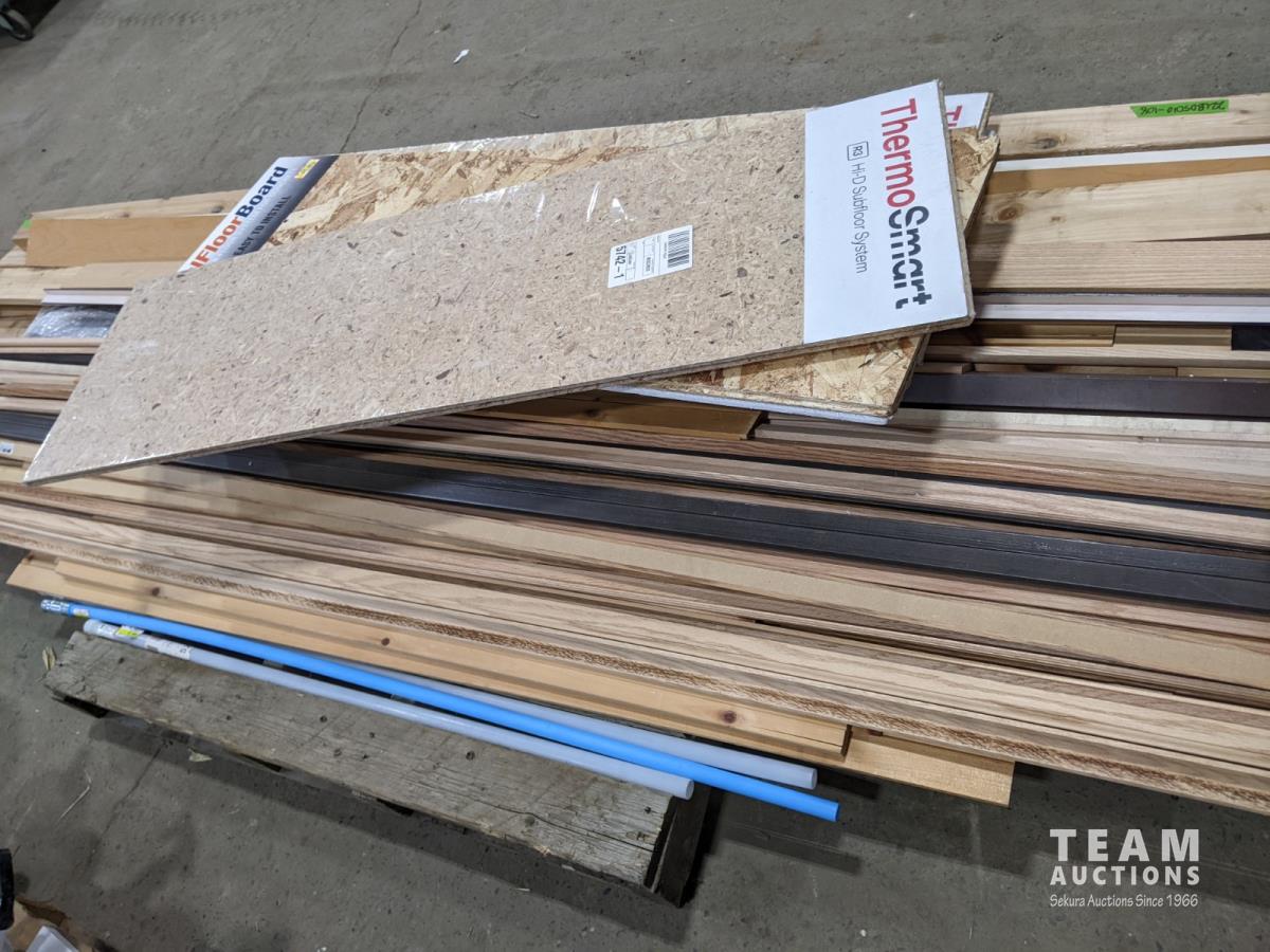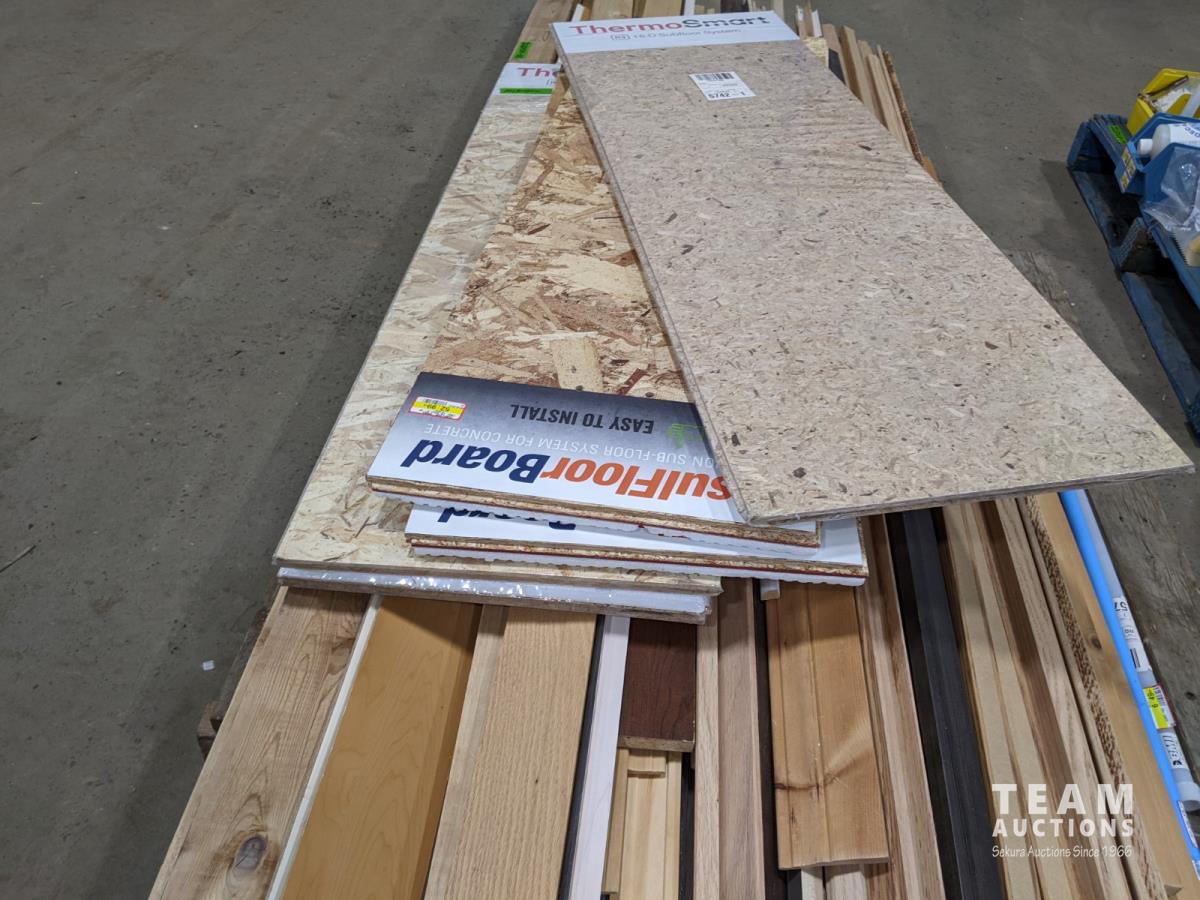 1351 Pallet of Misc Wood Mdf Trim 2 X 4 and (5) 15 Inch X 48 Inch Subflooring
