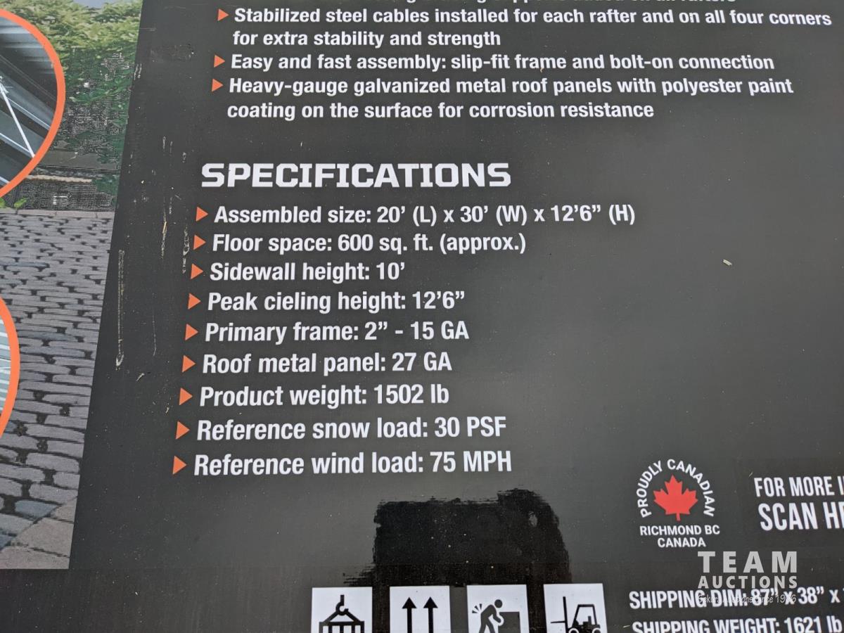 2548 TMG Industrial 20 Ft x 30 Ft Metal Garage (Unused)