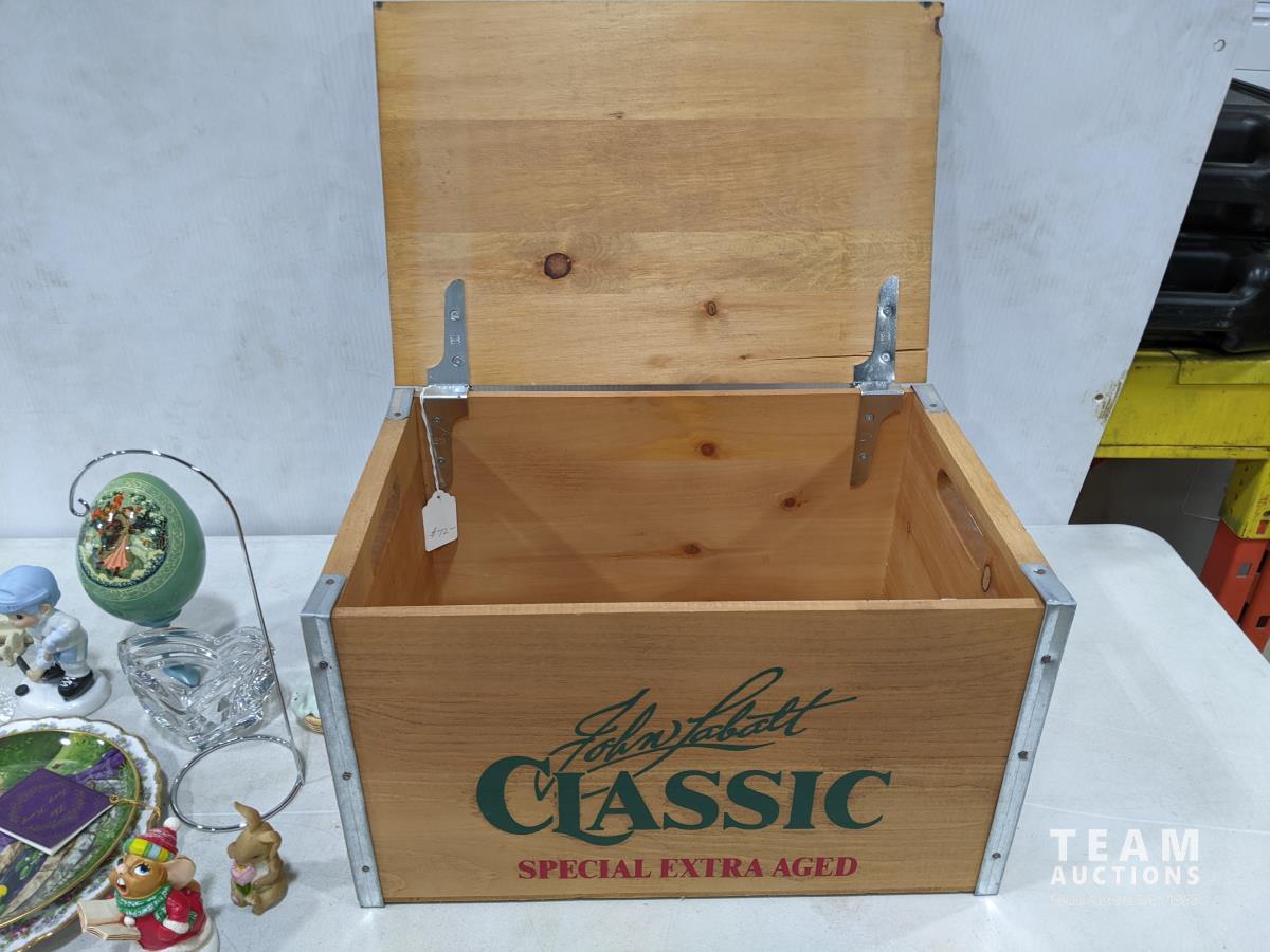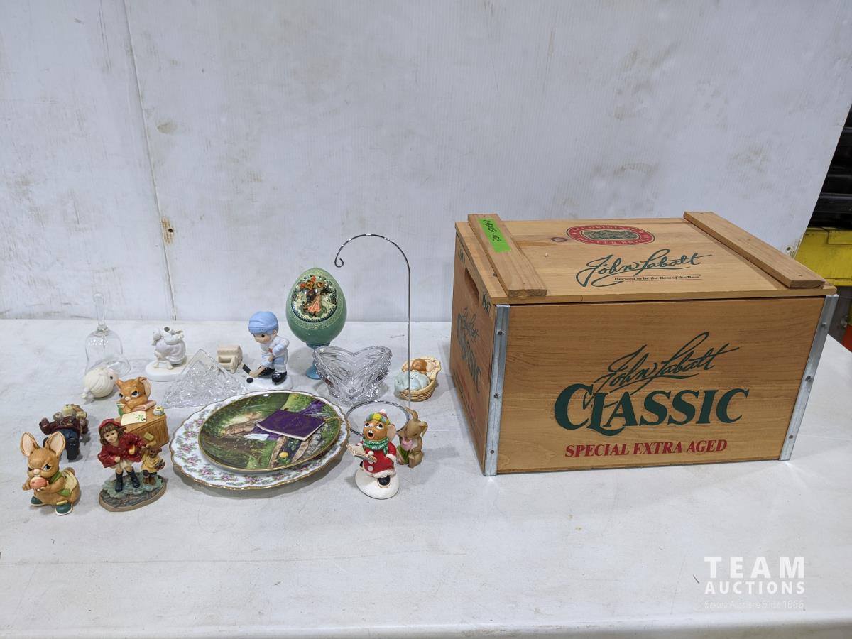 1580 Wooden Box and Assortment of Ornaments