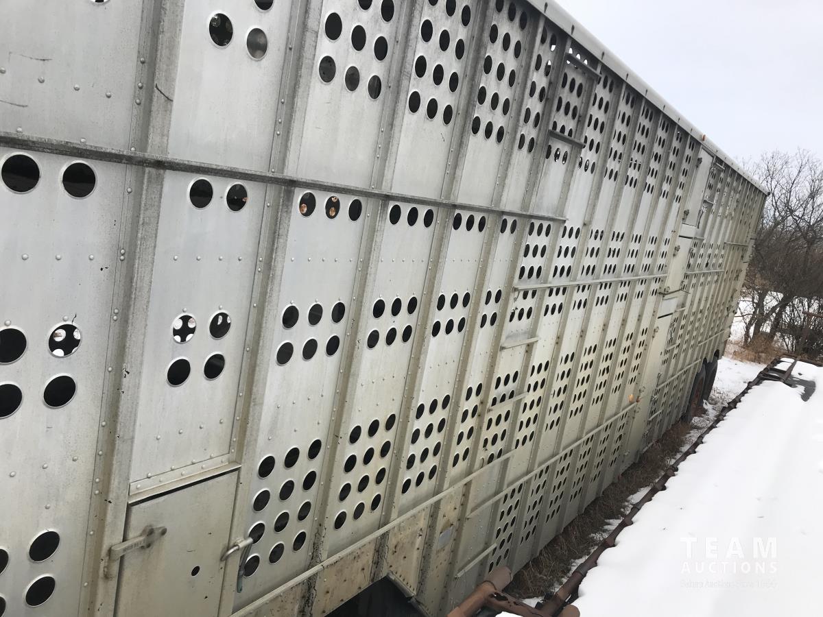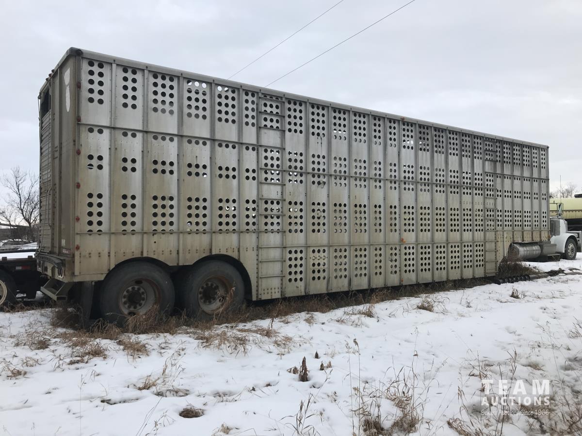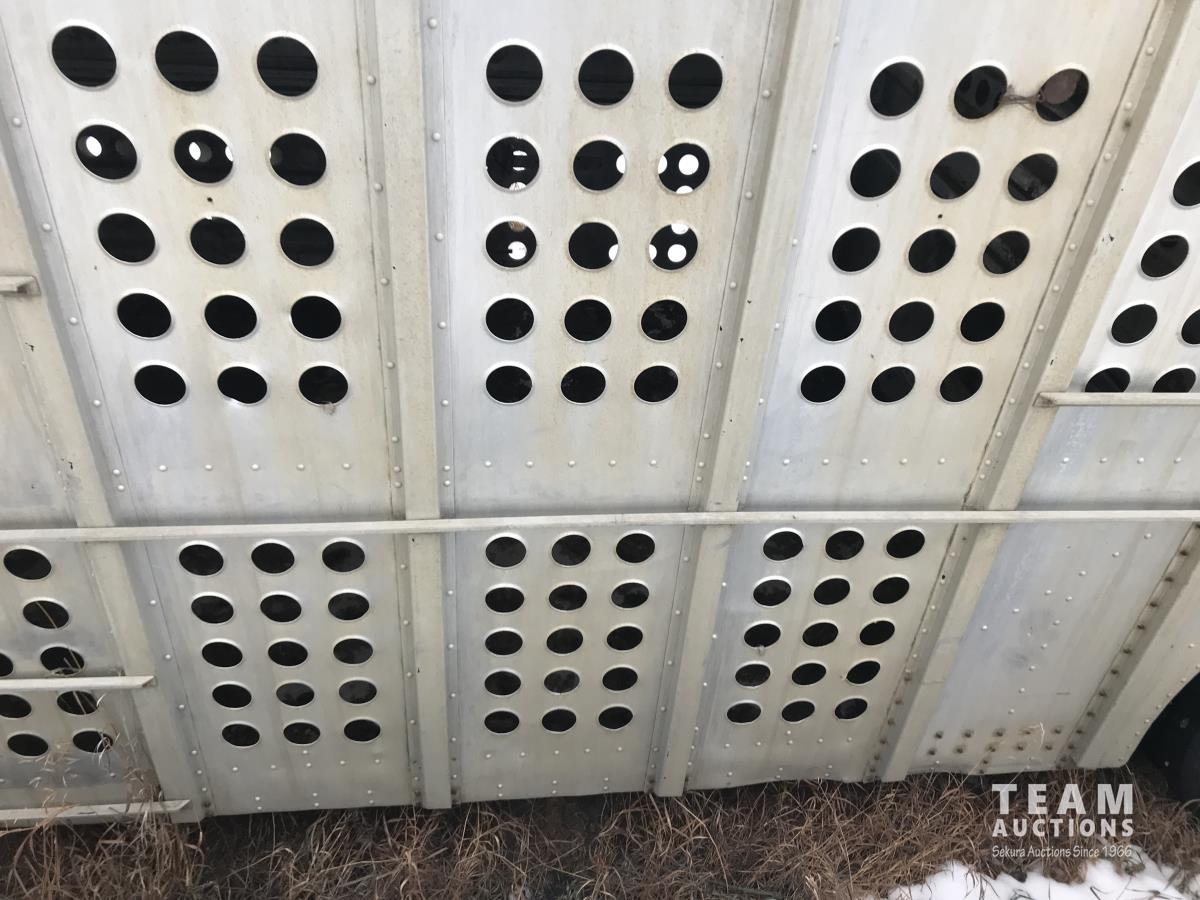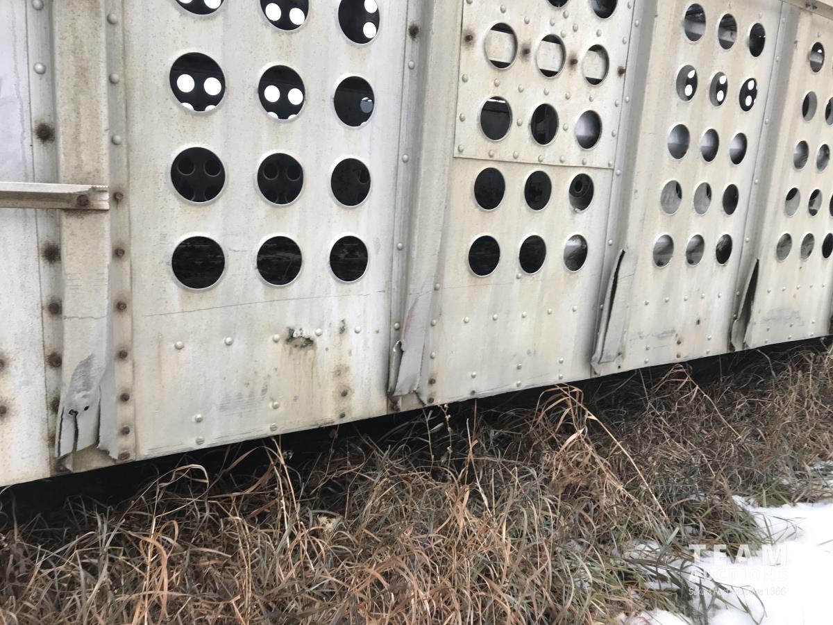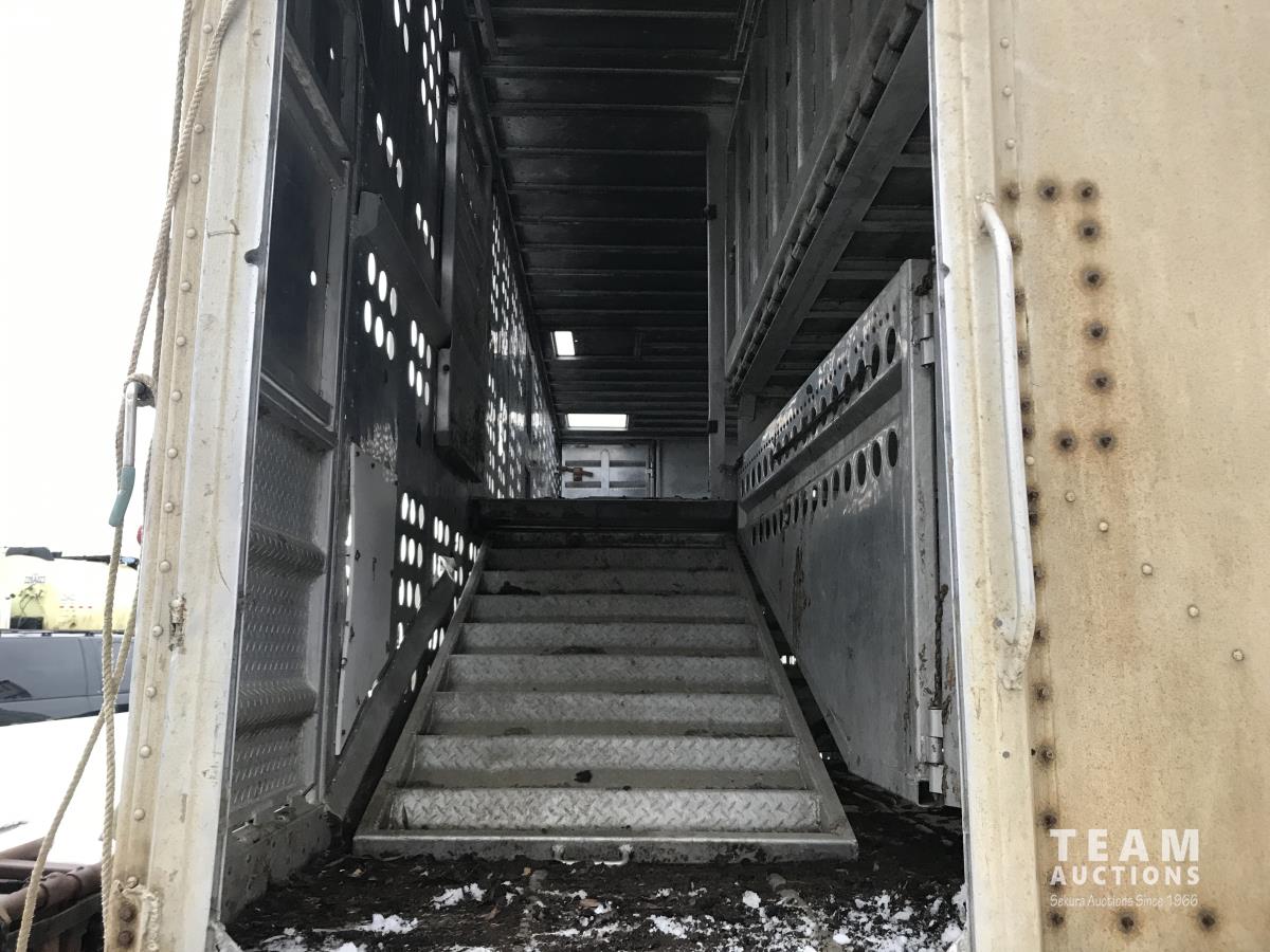 Cattle/hog combo, spring suspension, fold-down dog house, wide clean out-doors, third rail in belly c/w deck planks, nose deck planks