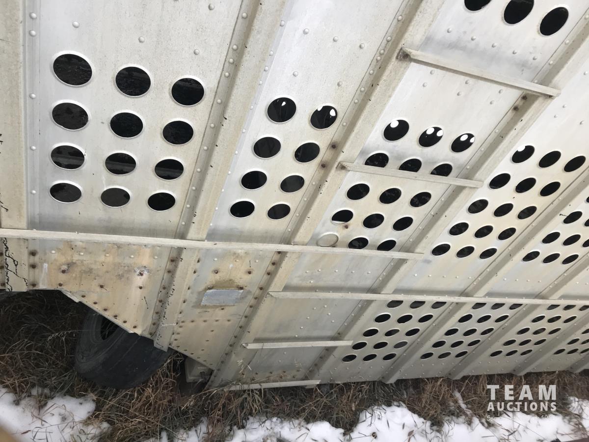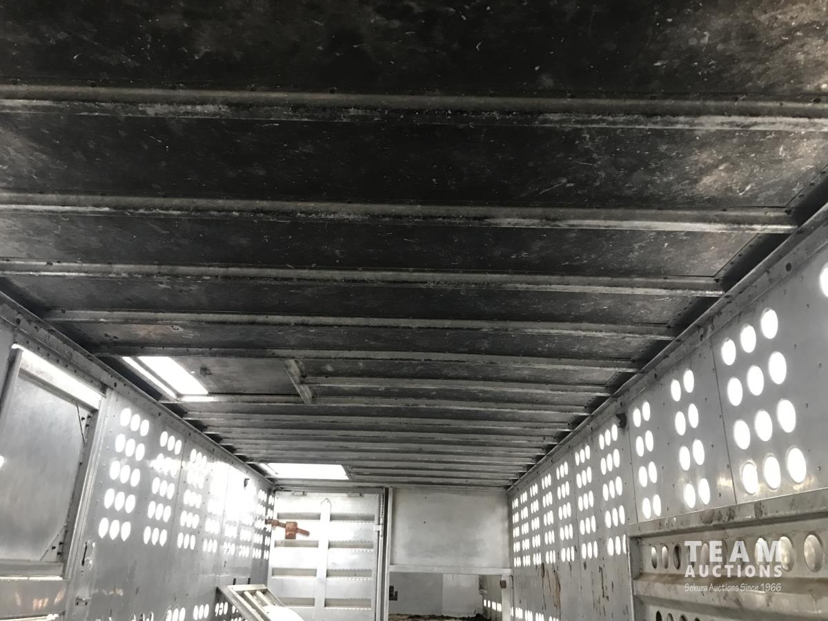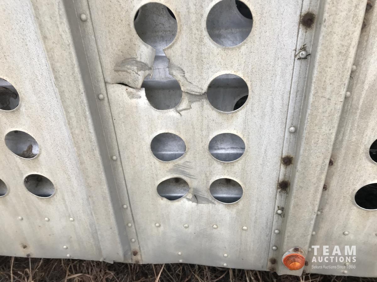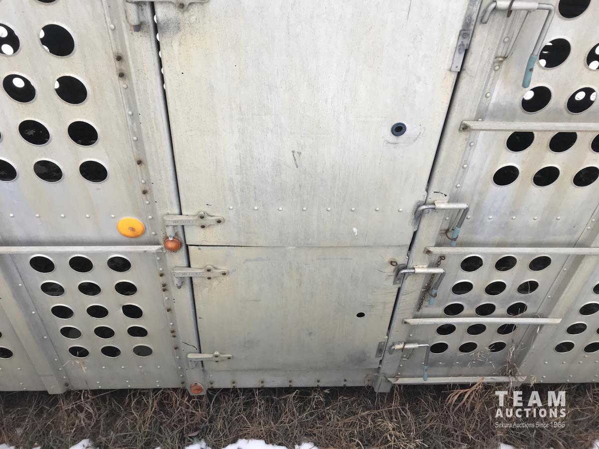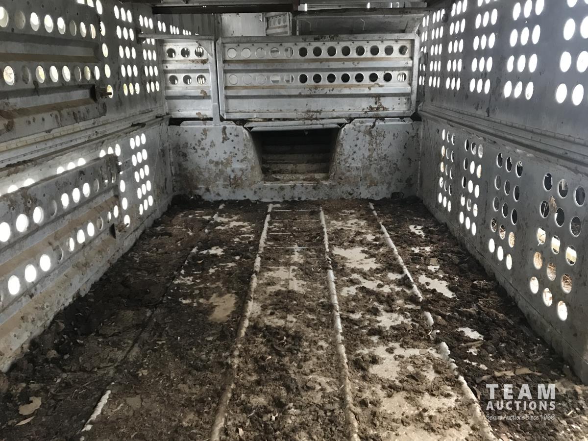 Cattle/hog combo, spring suspension, fold-down dog house, wide clean out-doors, third rail in belly c/w deck planks, nose deck planks