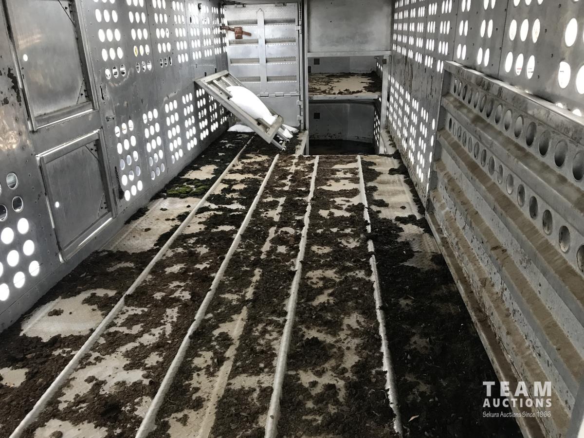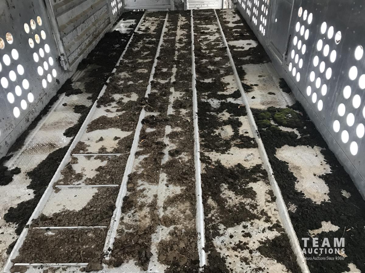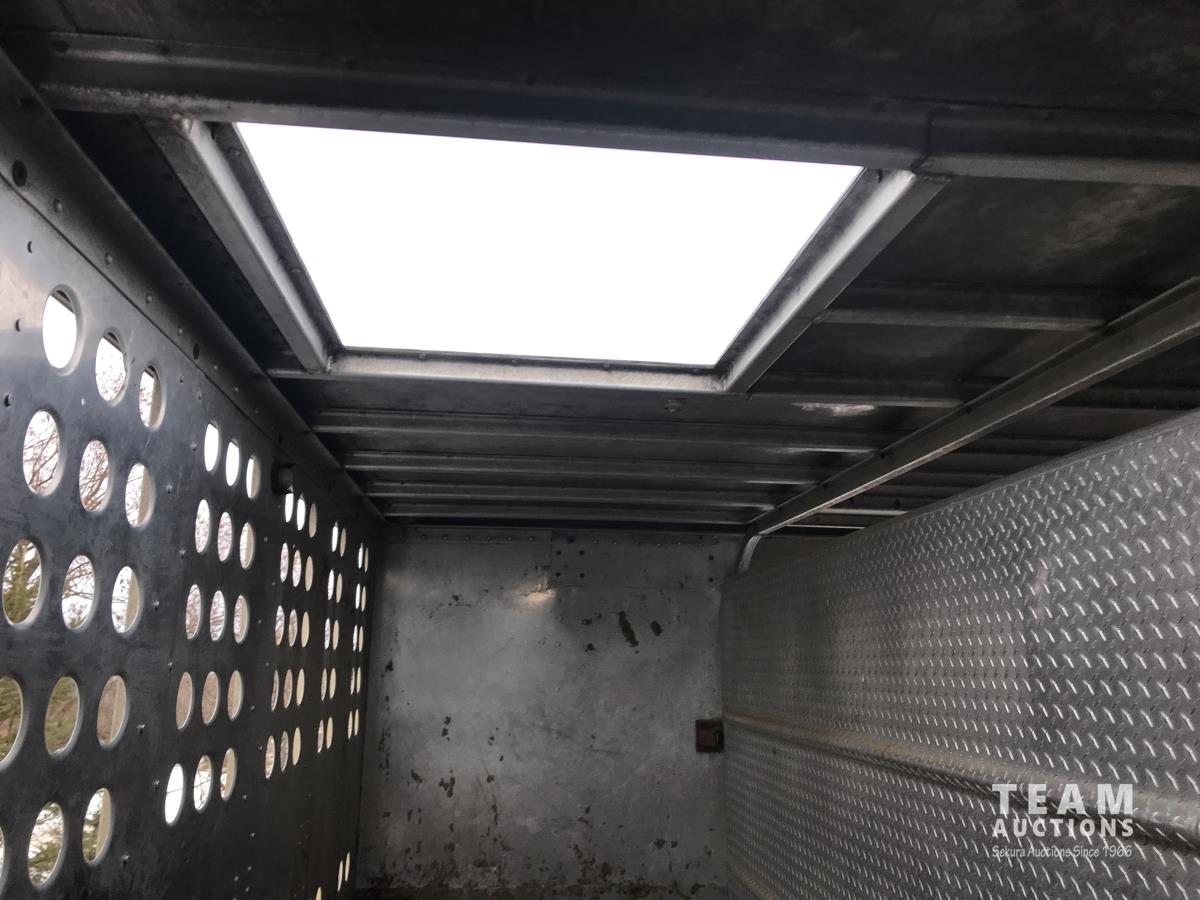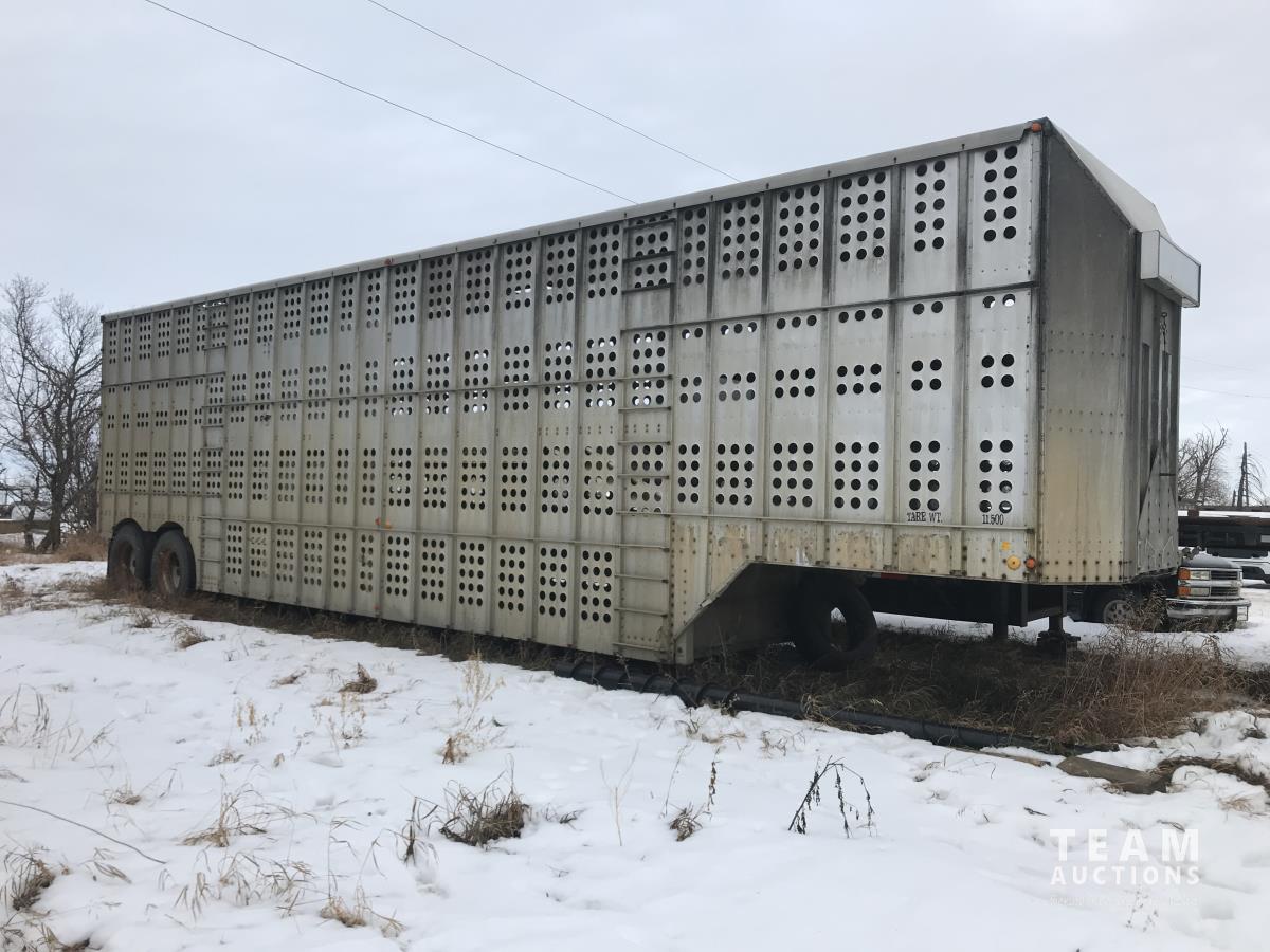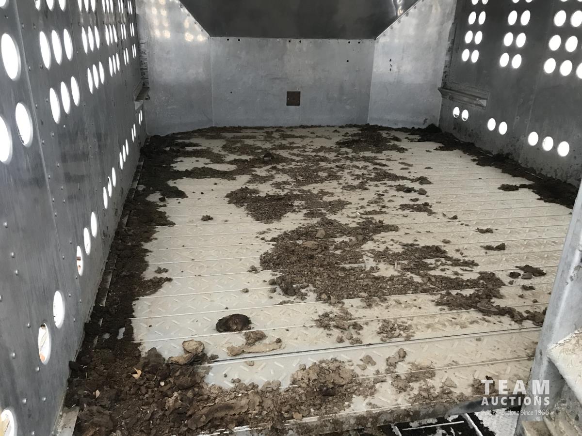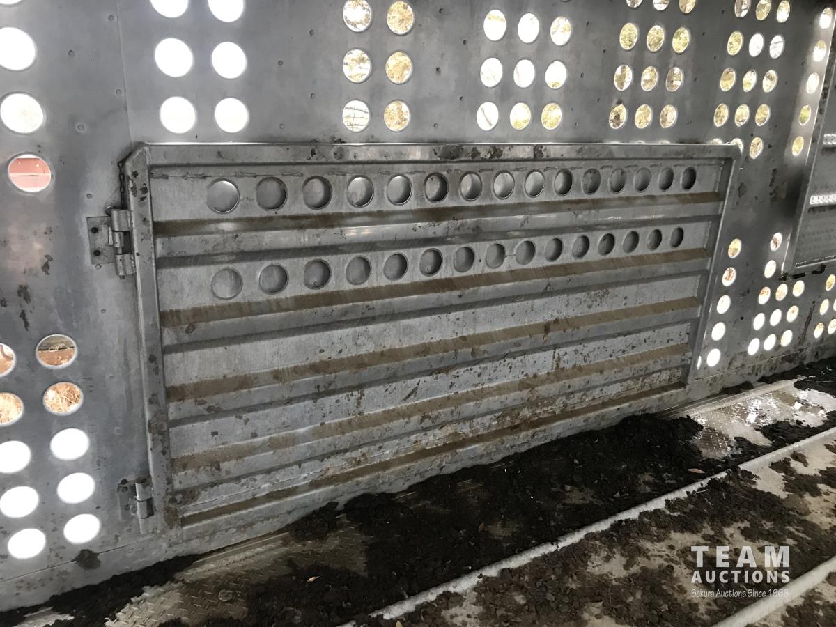Cattle/hog combo, spring suspension, fold-down dog house, wide clean out-doors, third rail in belly c/w deck planks, nose deck planks
