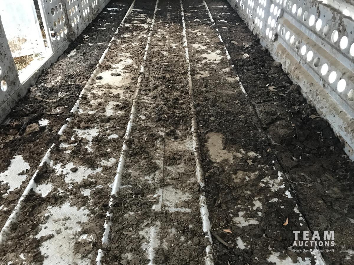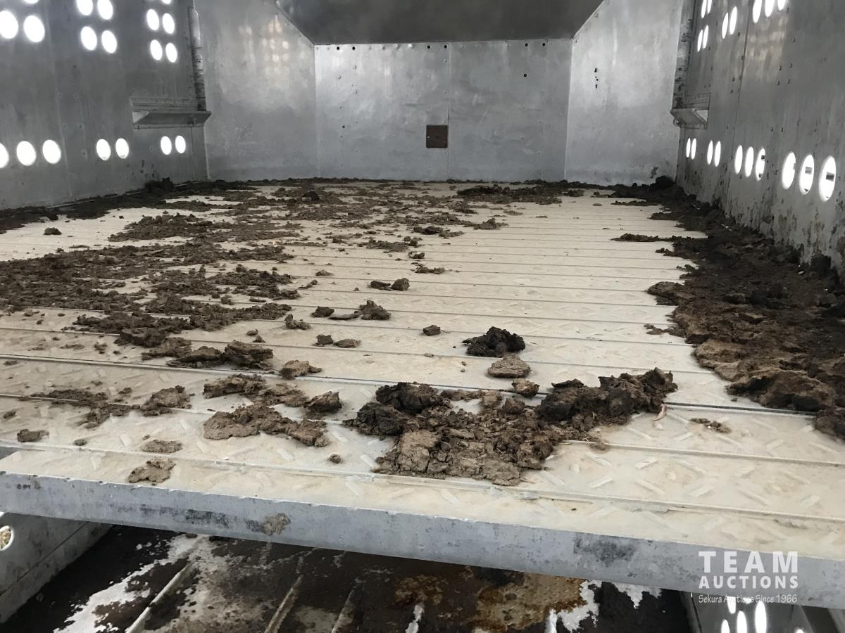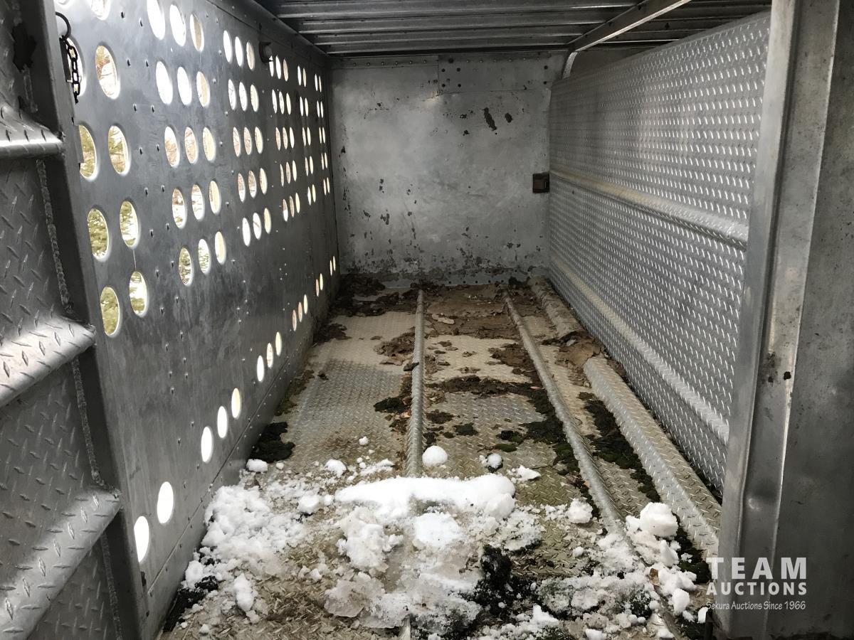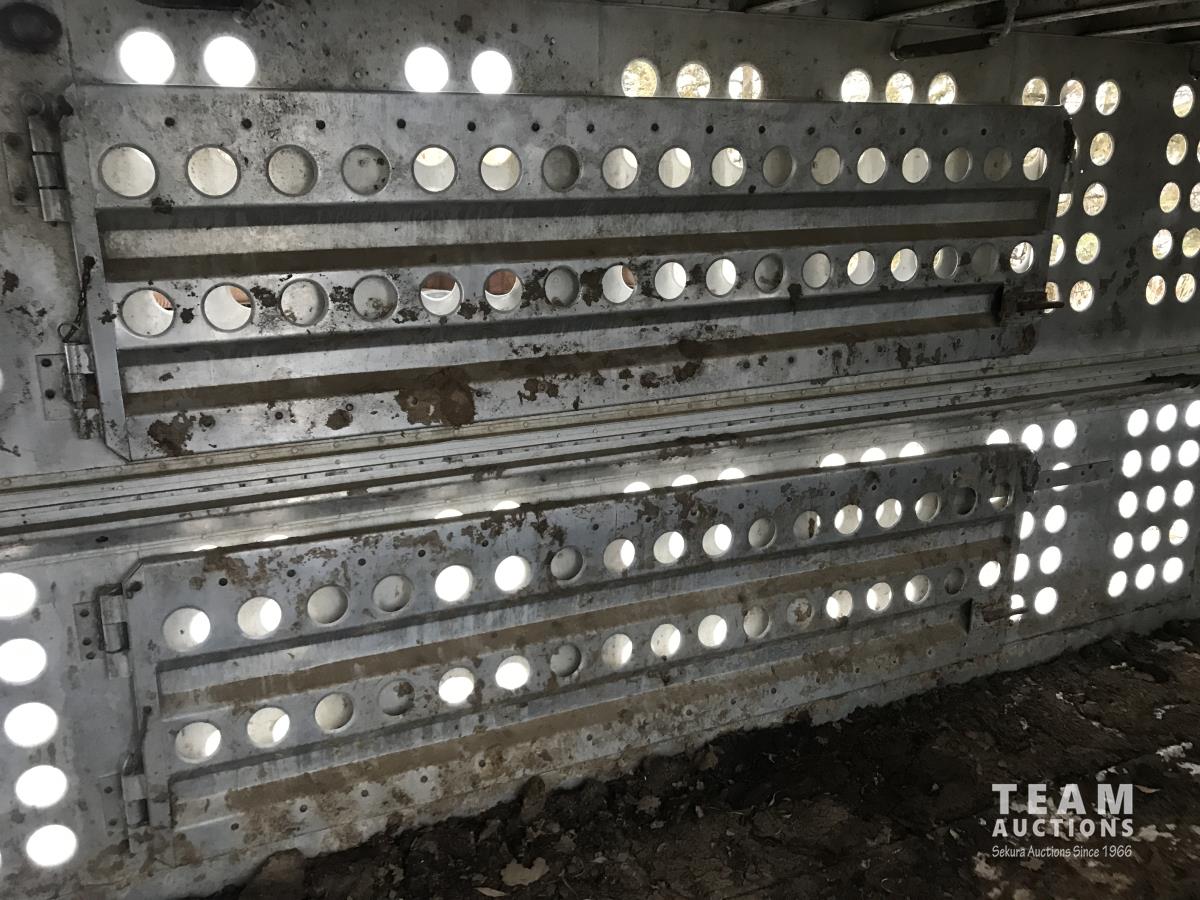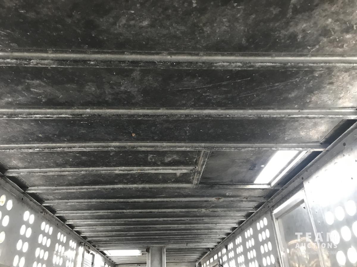 Cattle/hog combo, spring suspension, fold-down dog house, wide clean out-doors, third rail in belly c/w deck planks, nose deck planks