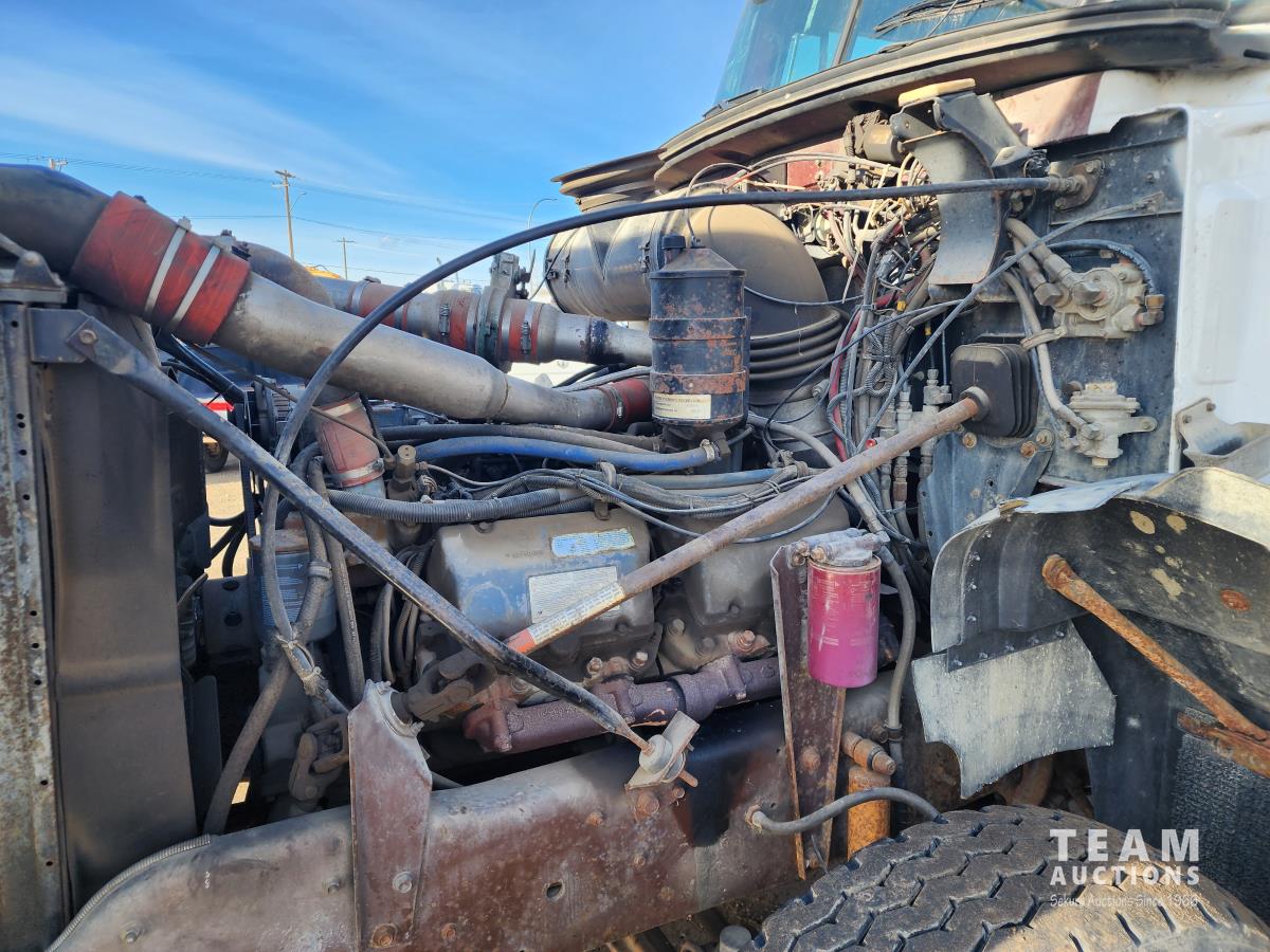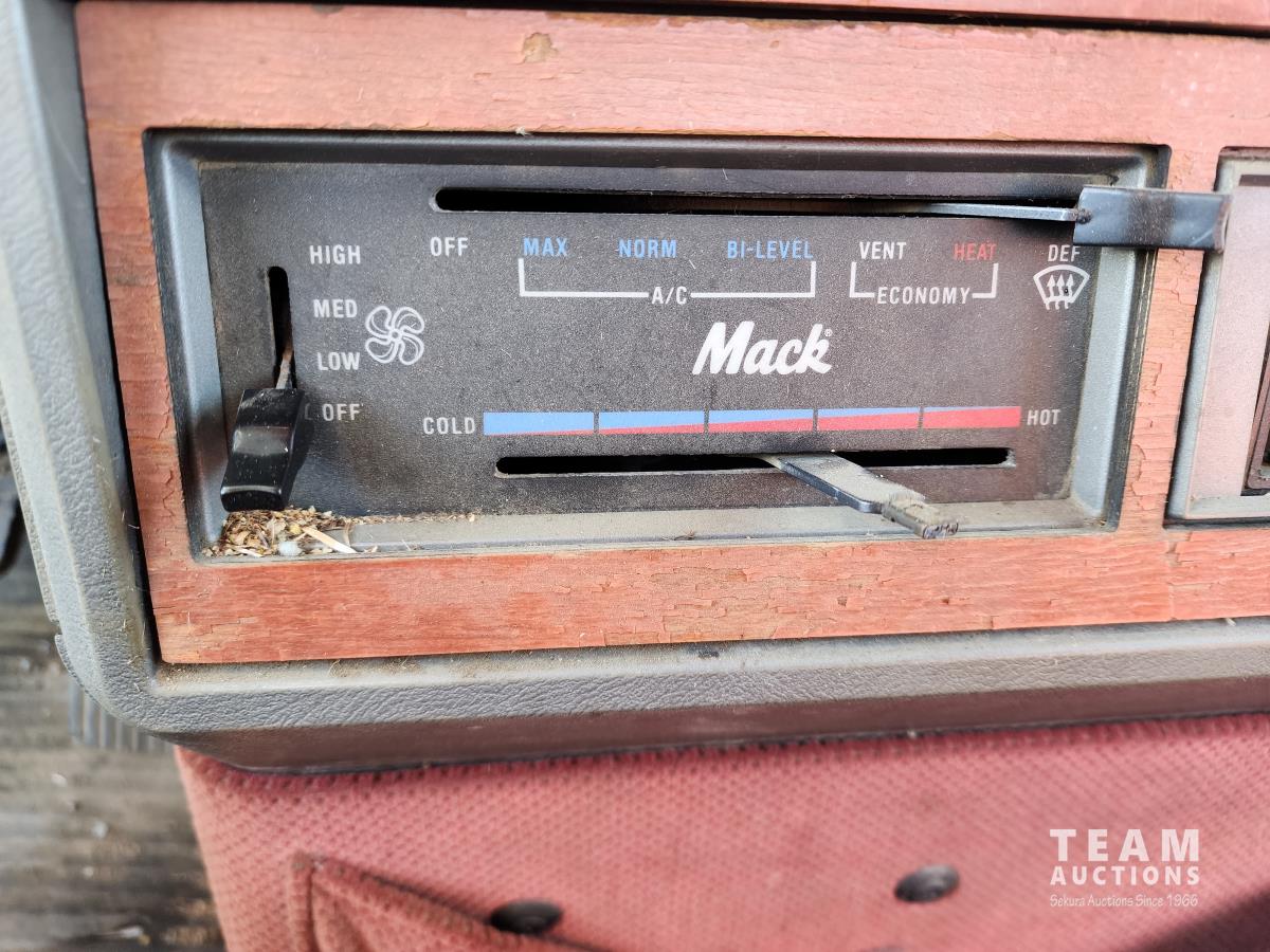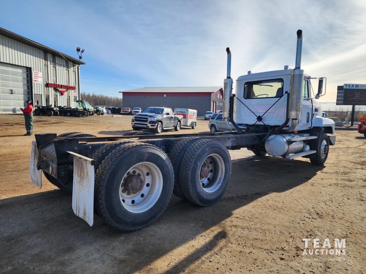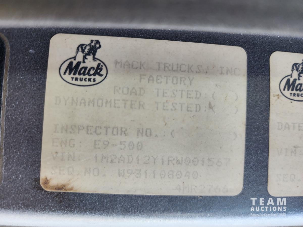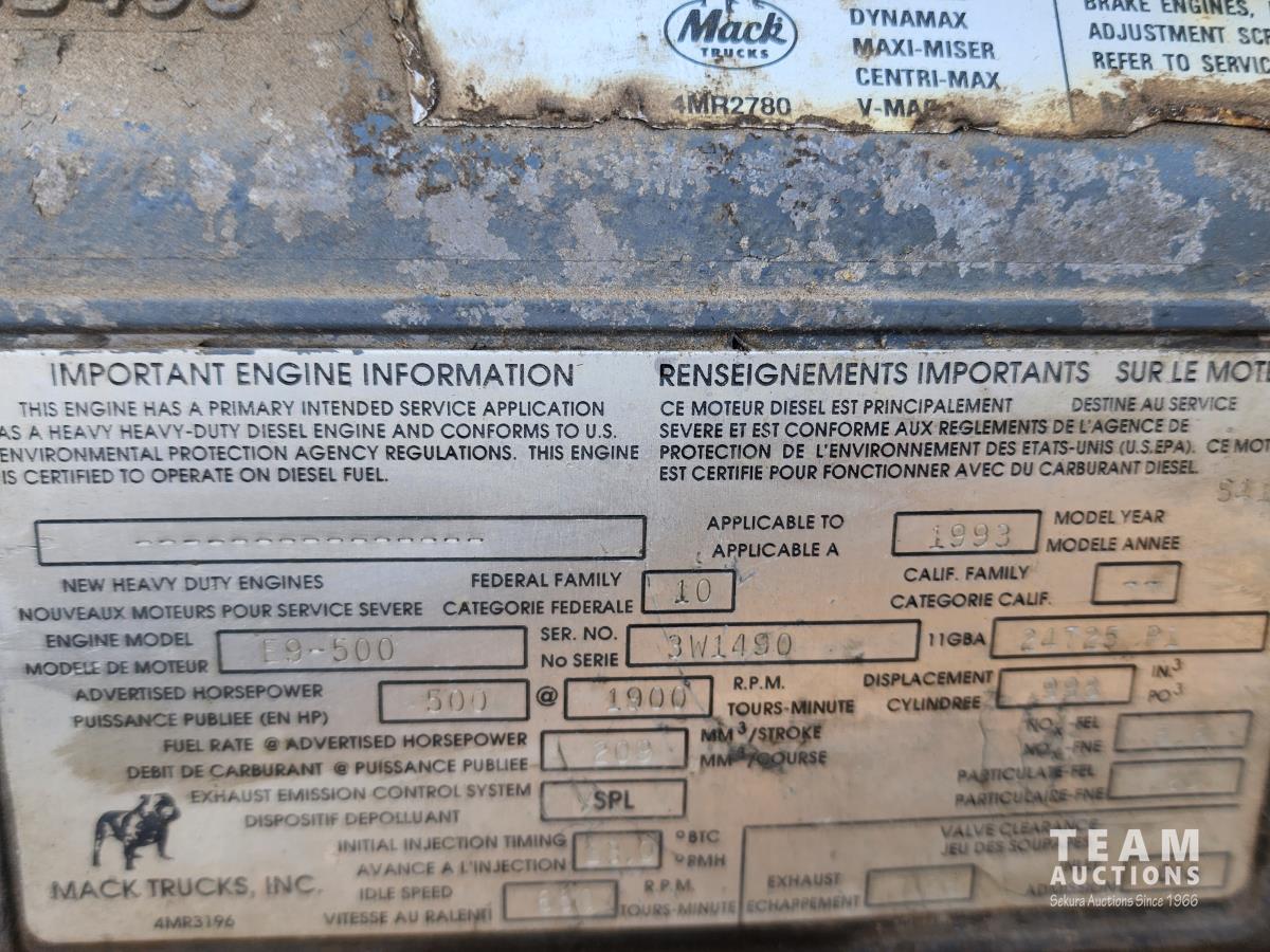 Mack E9-500, 500 HP engine, Mack 18 speed transmission, Hendrickson rubber block walking beam suspension, 246 inch WB, PTO, A/C, 315/80R22.5 inch front tires, 11R24.5 inch rear tires