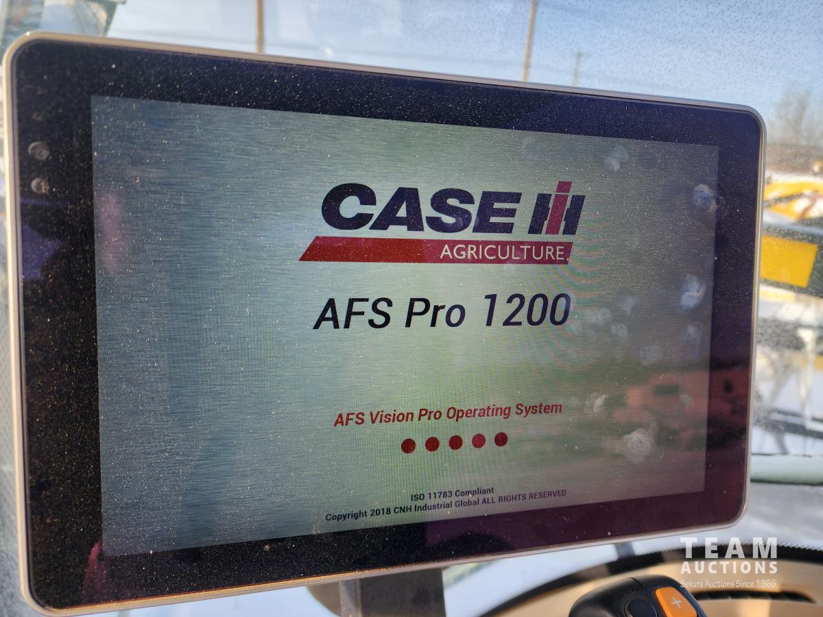 180 HP engine, 150 HP PTO, CVT transmission, LH reverser, differential lock, Ac cab, AFS Pro 1200, Loader w/ bucket & grapple, 540/1000 PTO, 4 hydraulic outlets, 3 PT hitch, rear wheel weights, 600/70R30 front, 710/70R42 rear