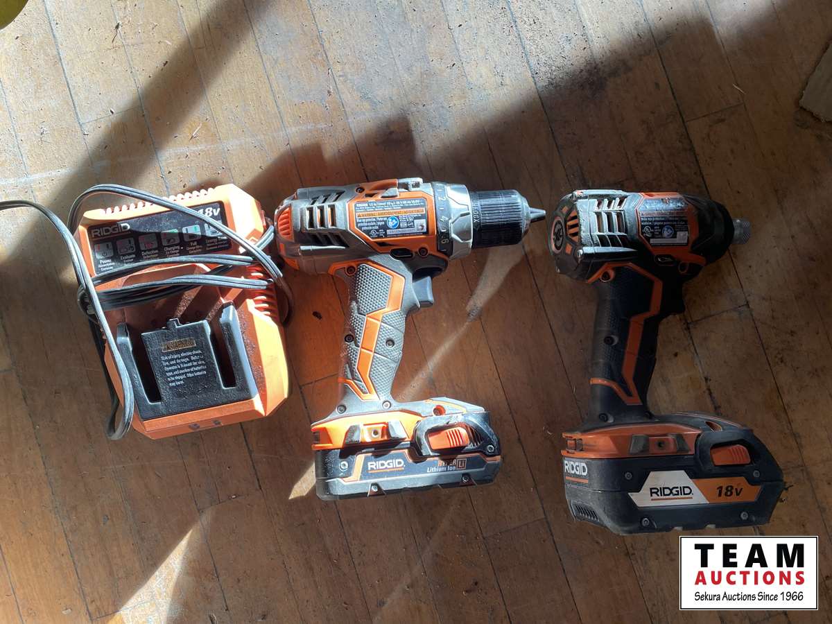 1677 (2) Ridgid 18V Drills w/ Batteries & Charger