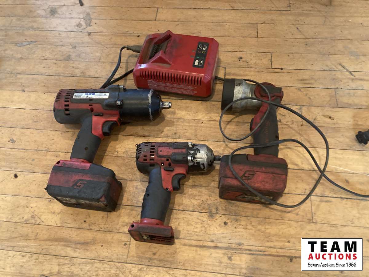 1/2 inch impact, 3/8 inch impact, flashlight, batteries w/ charger