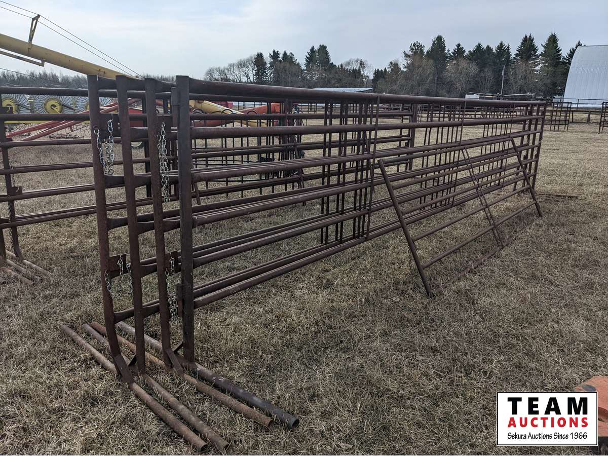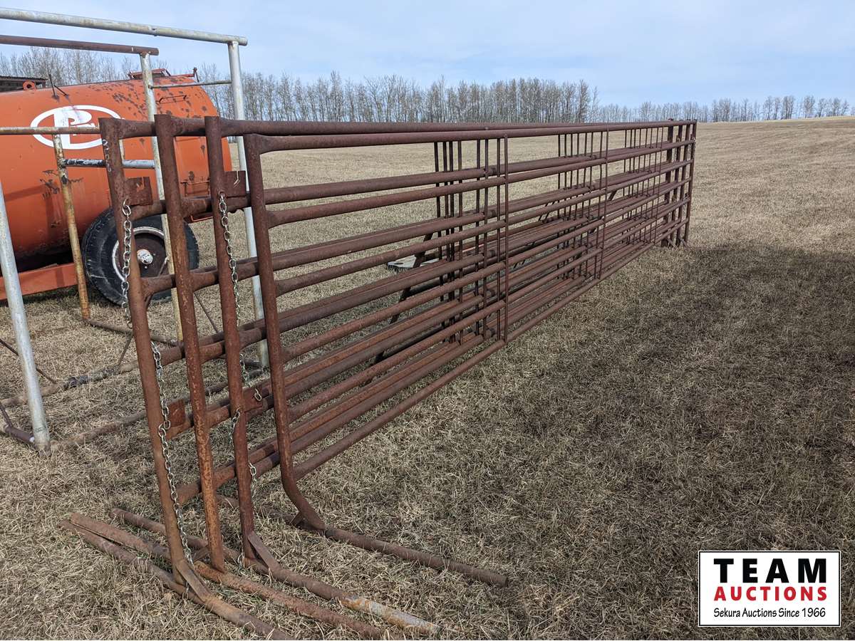 367 (2) 24 Ft Free Standing 6 Bar Panels, (1) 24 Ft Freestanding Panels with 12 Ft Gate