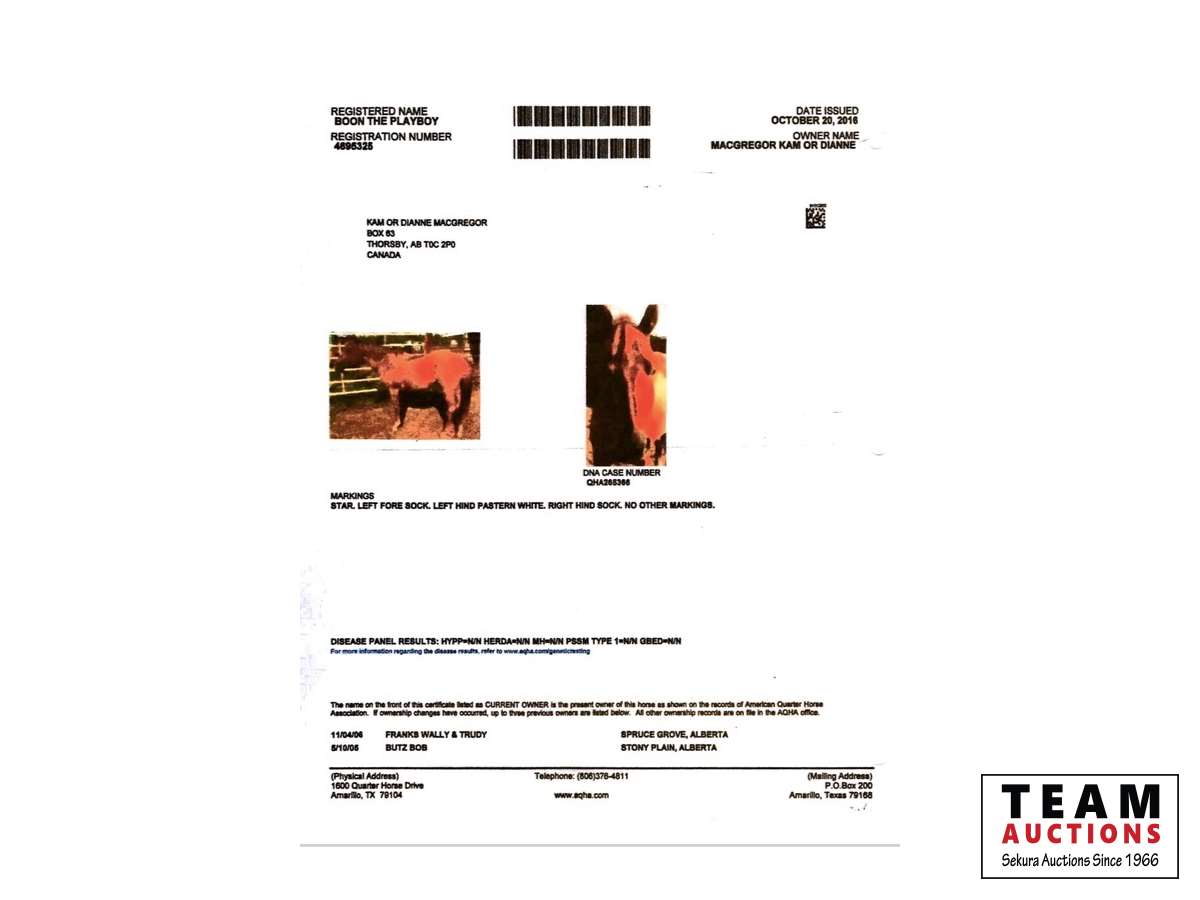 Registered Quarter Horses Unreserved Timed Auction for The Estate of Kam MacGregor – Near Thorsby, AB – May 7, 2022