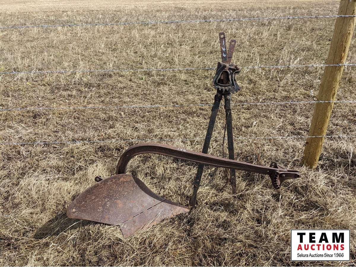177 Antique One Bottom Plow and Plow Adjustment Handles