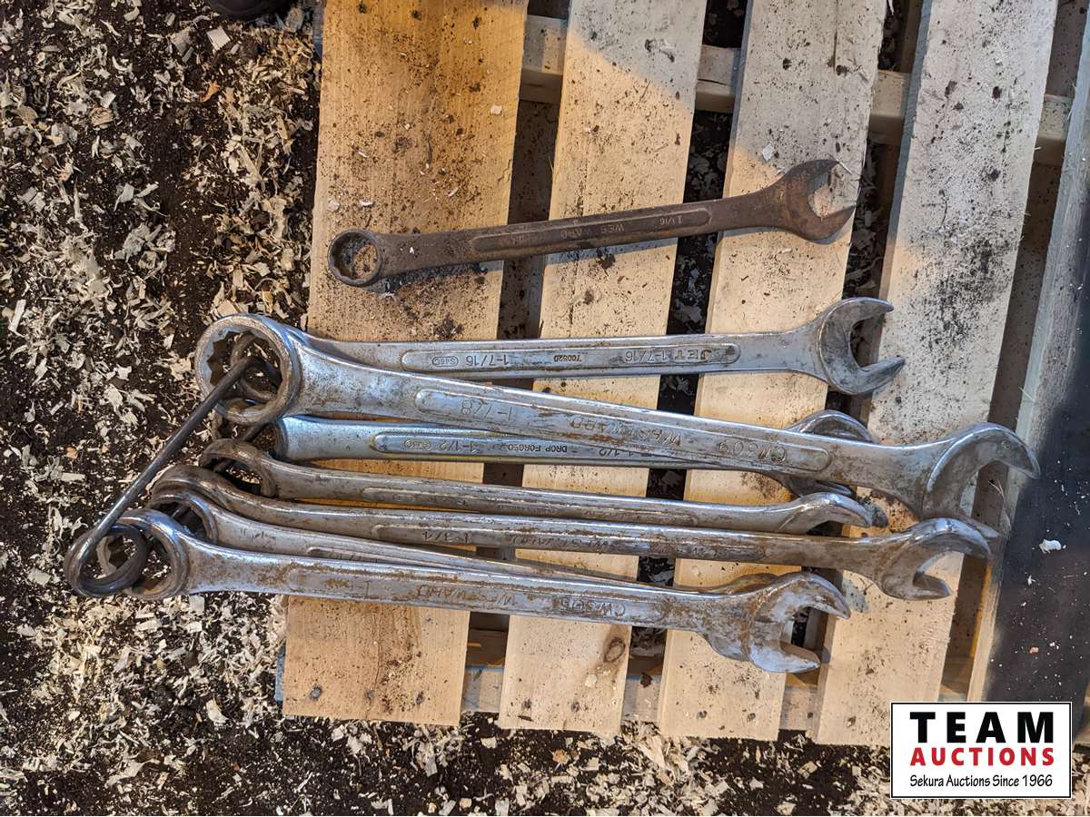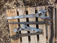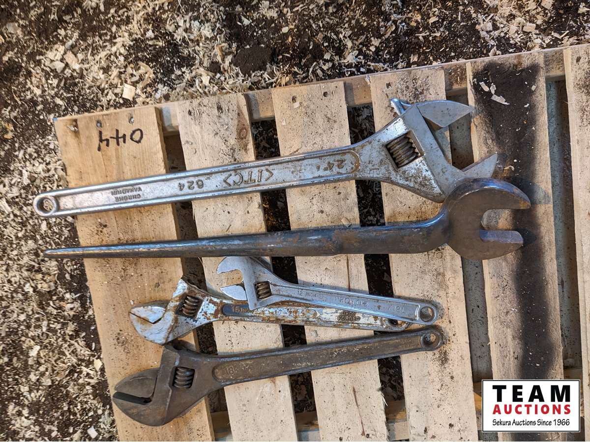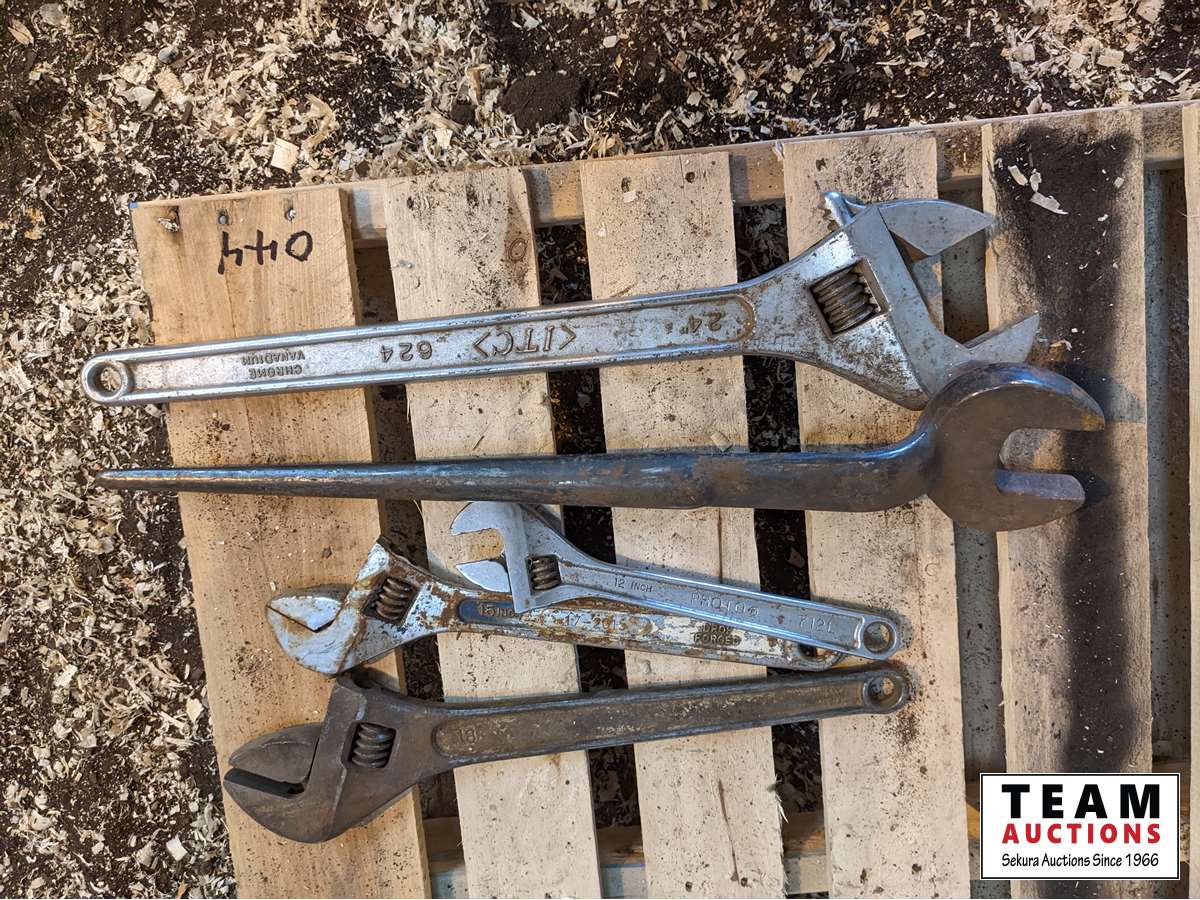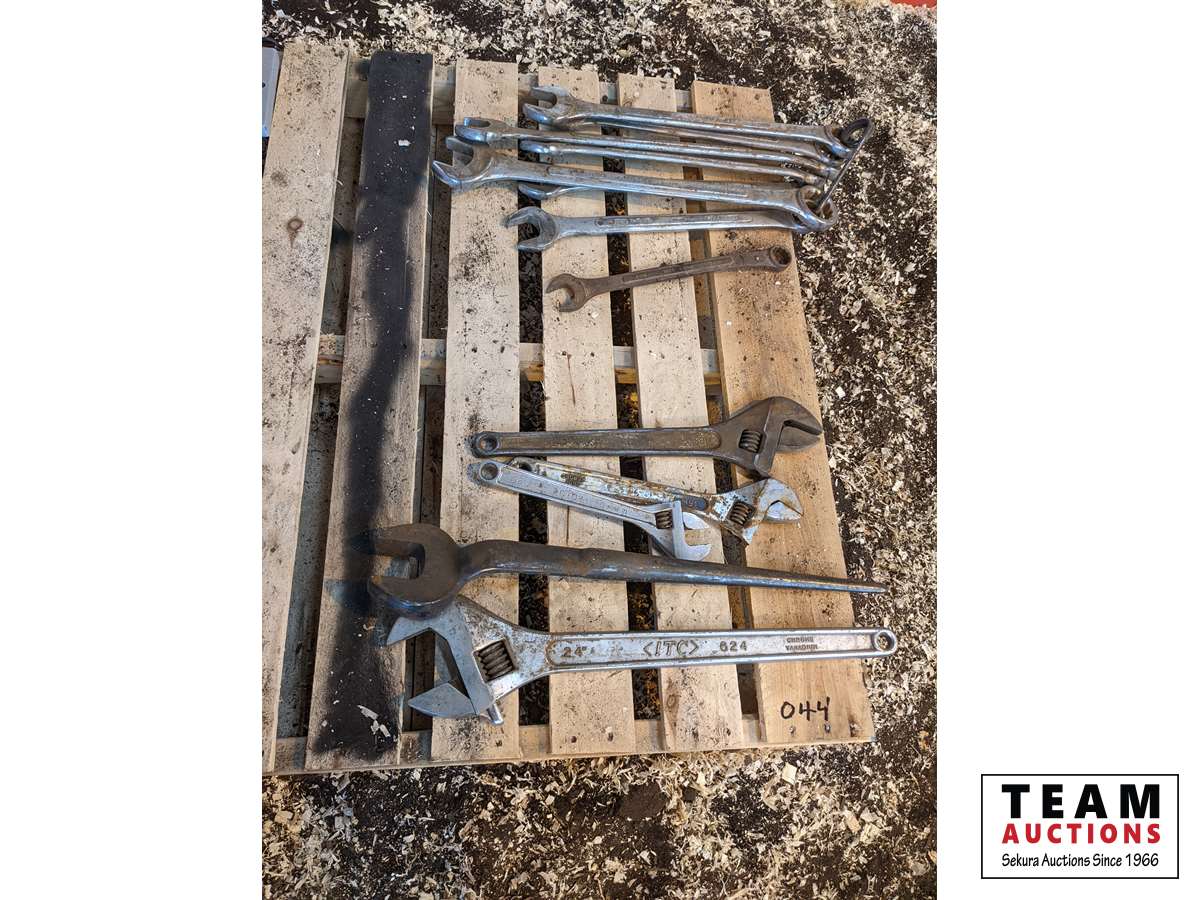 (4) Adjustable wrenches 12 inch, 15 inch, 18 inch & 24 inch, open end alignment wrench, qty of combination wrenches