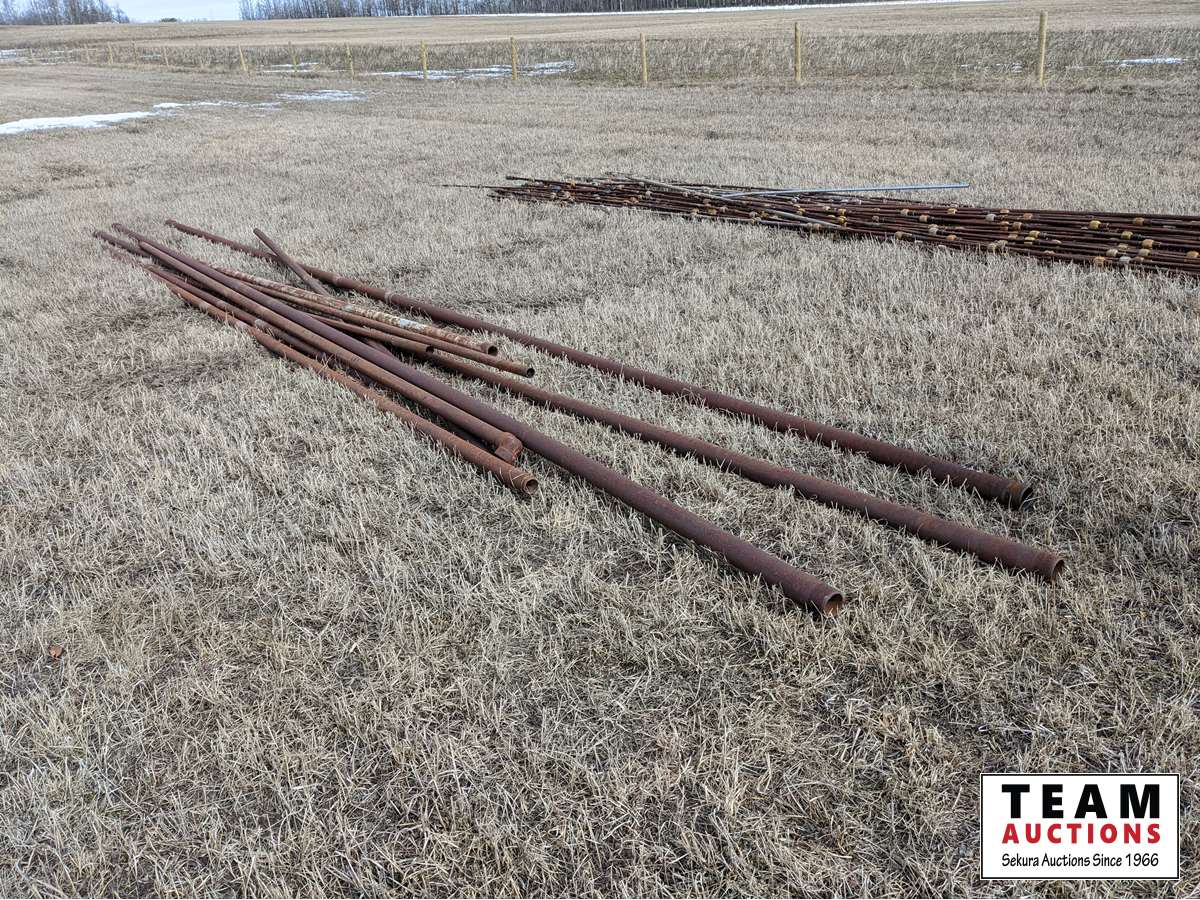 (3) 2-3/8 inch 30 ft pipes, assorted lengths of 2-3/8 inch and 1-1/2 inch pipe