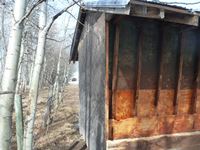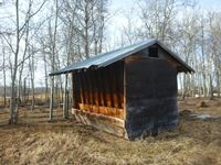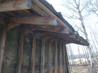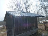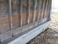 8 ft wide, wood construction with metal roof