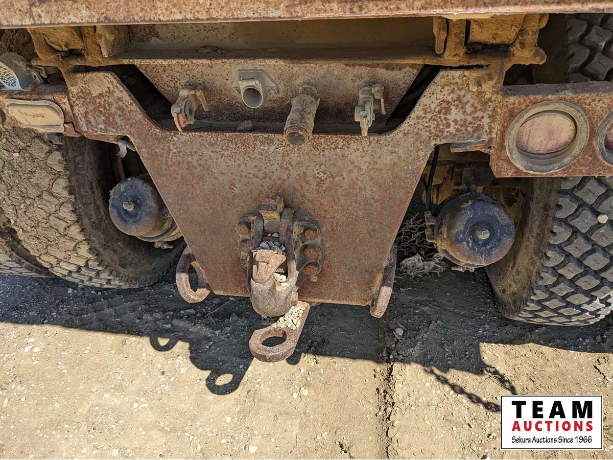 Caterpillar 3406B engine, 9 speed transmission, 12,000 lb front axle, 40,000 lb rears, 12 ft hydraulic angle blade, 16 ft gravel box, telescopic hoist, roll tarp, rear pintle hitch, spring suspension, 11R24.5 tires