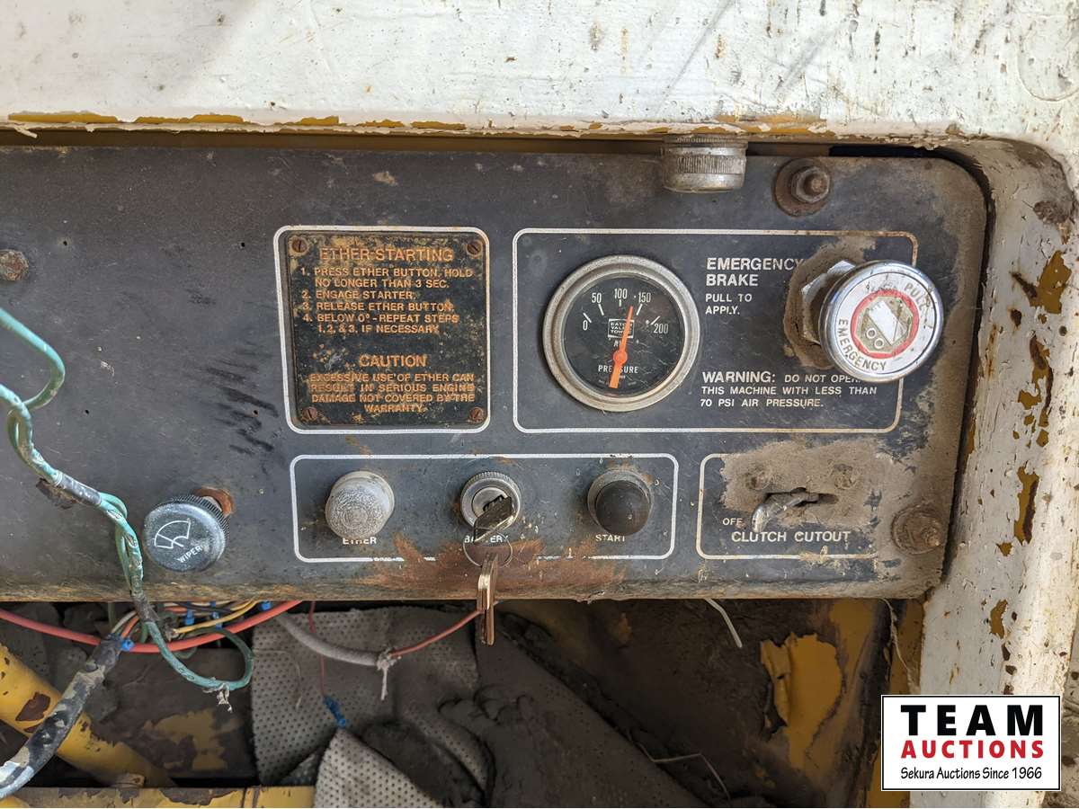 Has some oil leaks and transmission charge pump or torque convertor has some problems. After unit has been stopped it has to be revved up for transmission to start working and after that it's fine.