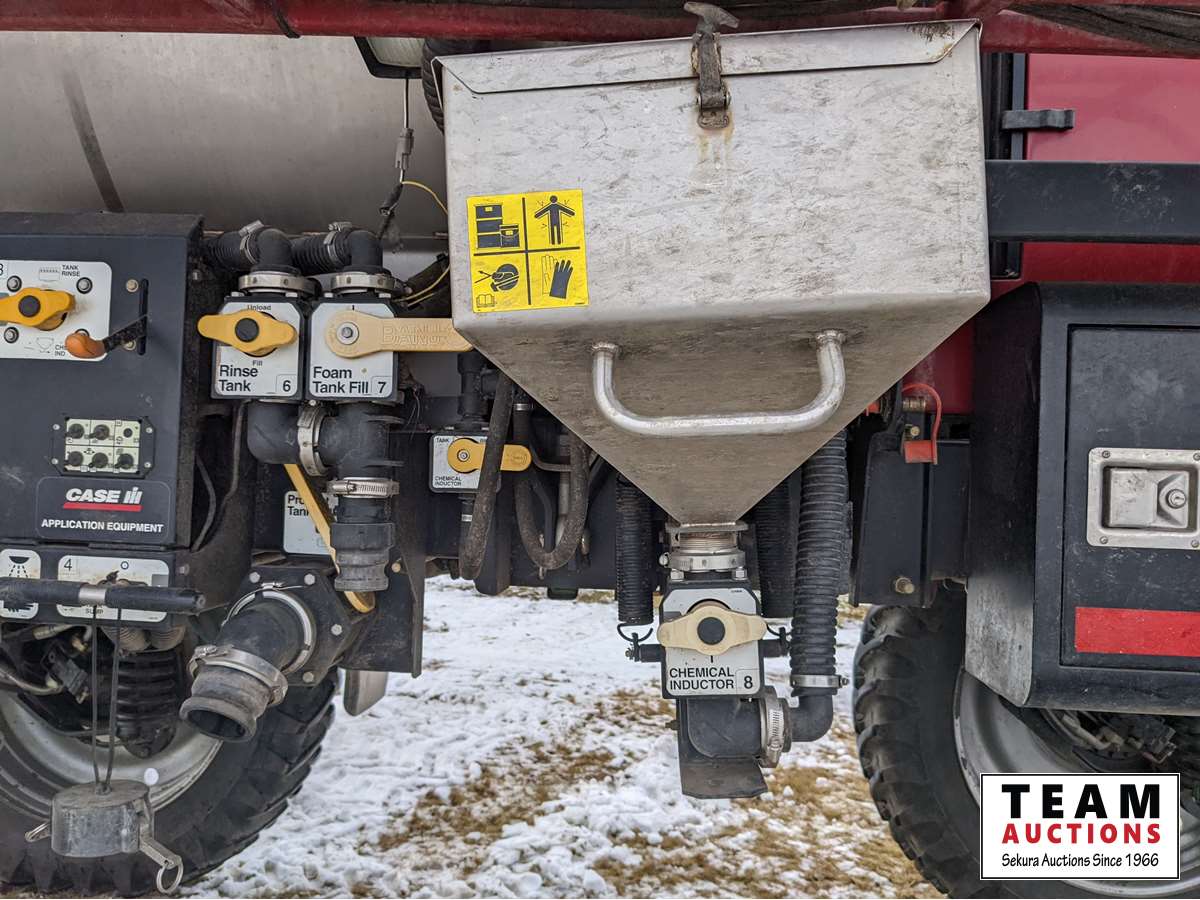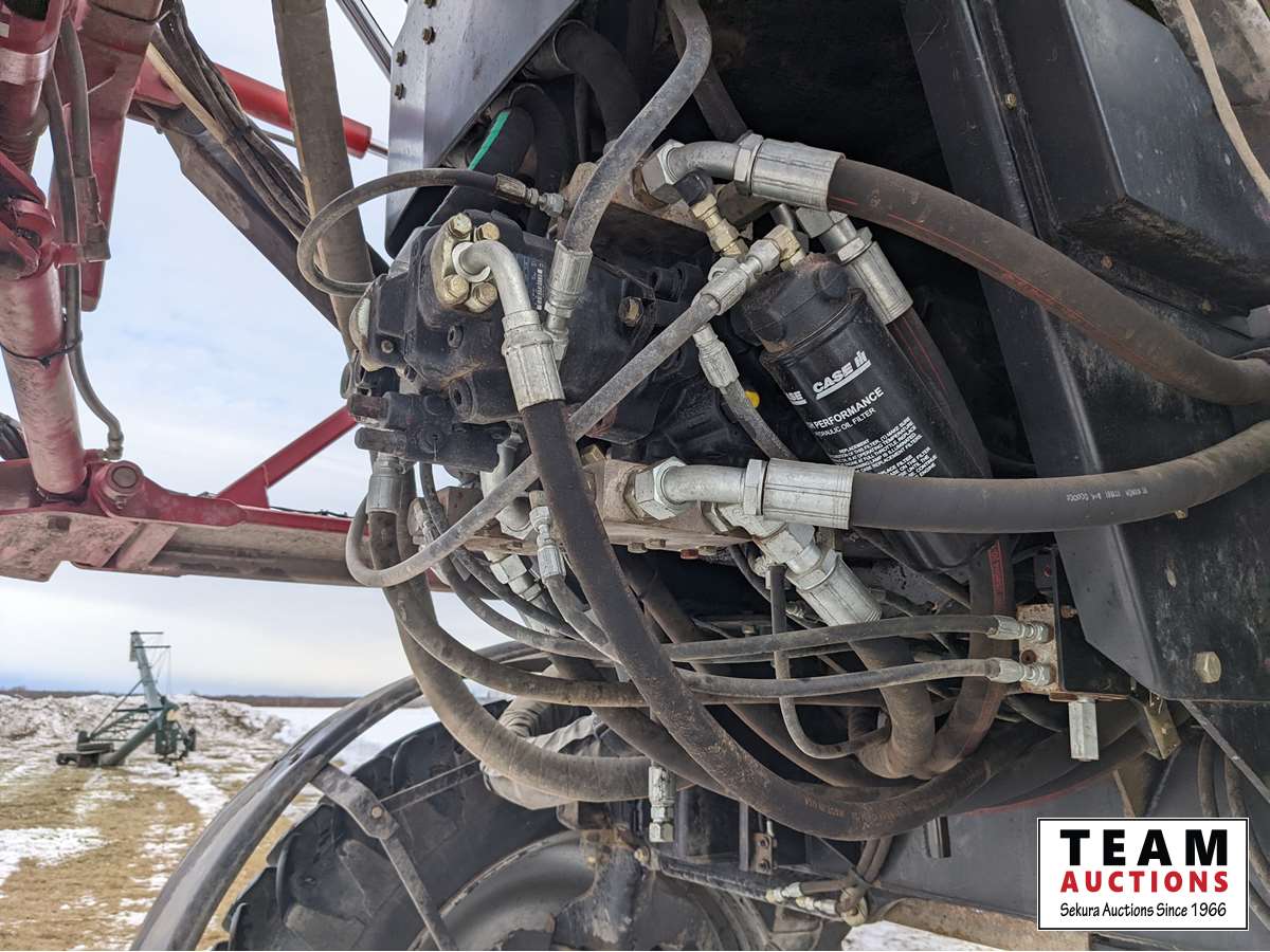 8.3 Cummins engine, 1200 gal stainless tank, 70 gal rinse tank, chemical mix tank, hydraulic axles, double nozzles, auto rate, SCX460 MVM display, Raven auto steer, AIM command, auto boom, height control, 5 section, section control, foam markers, 380/90R46