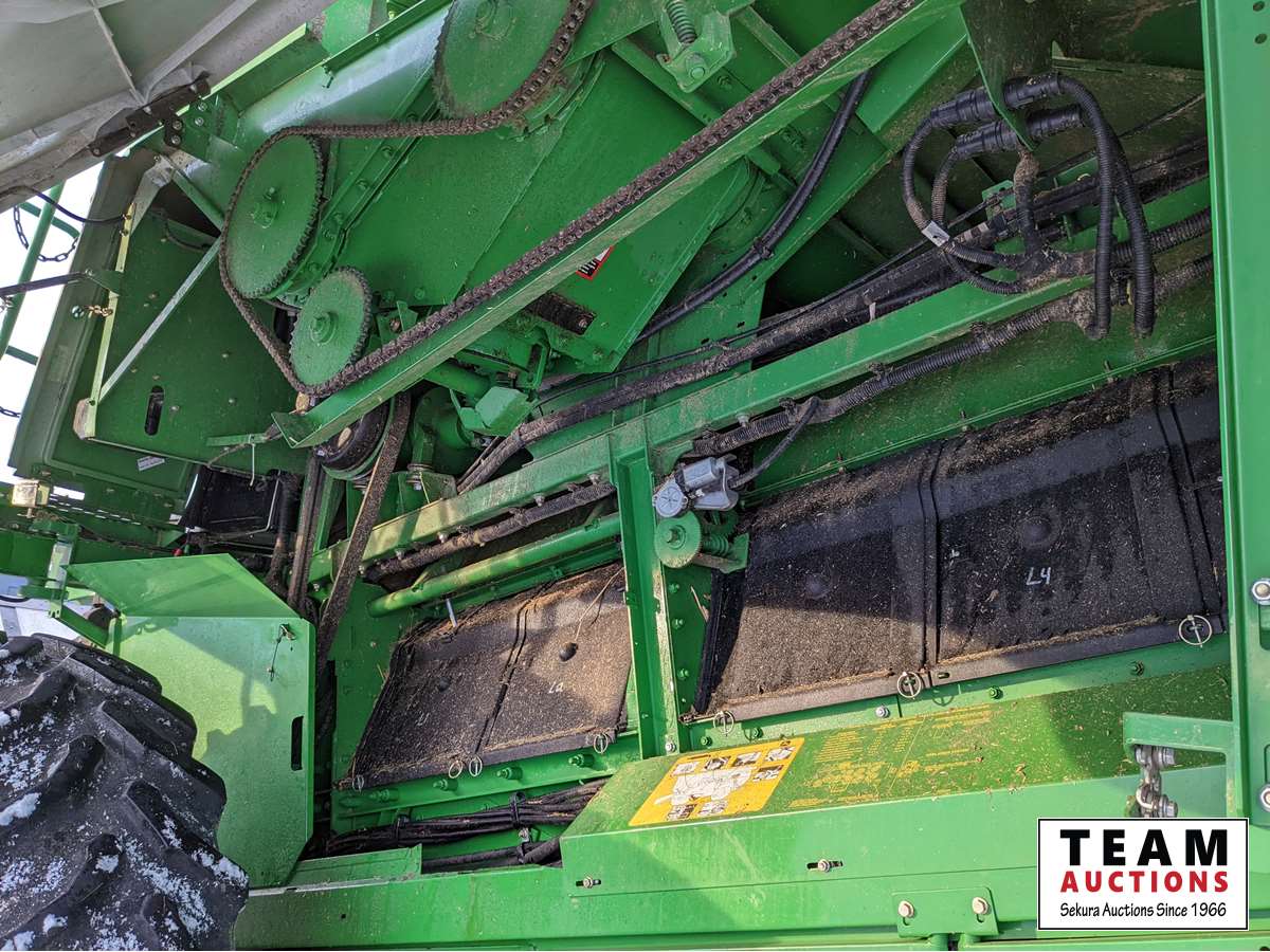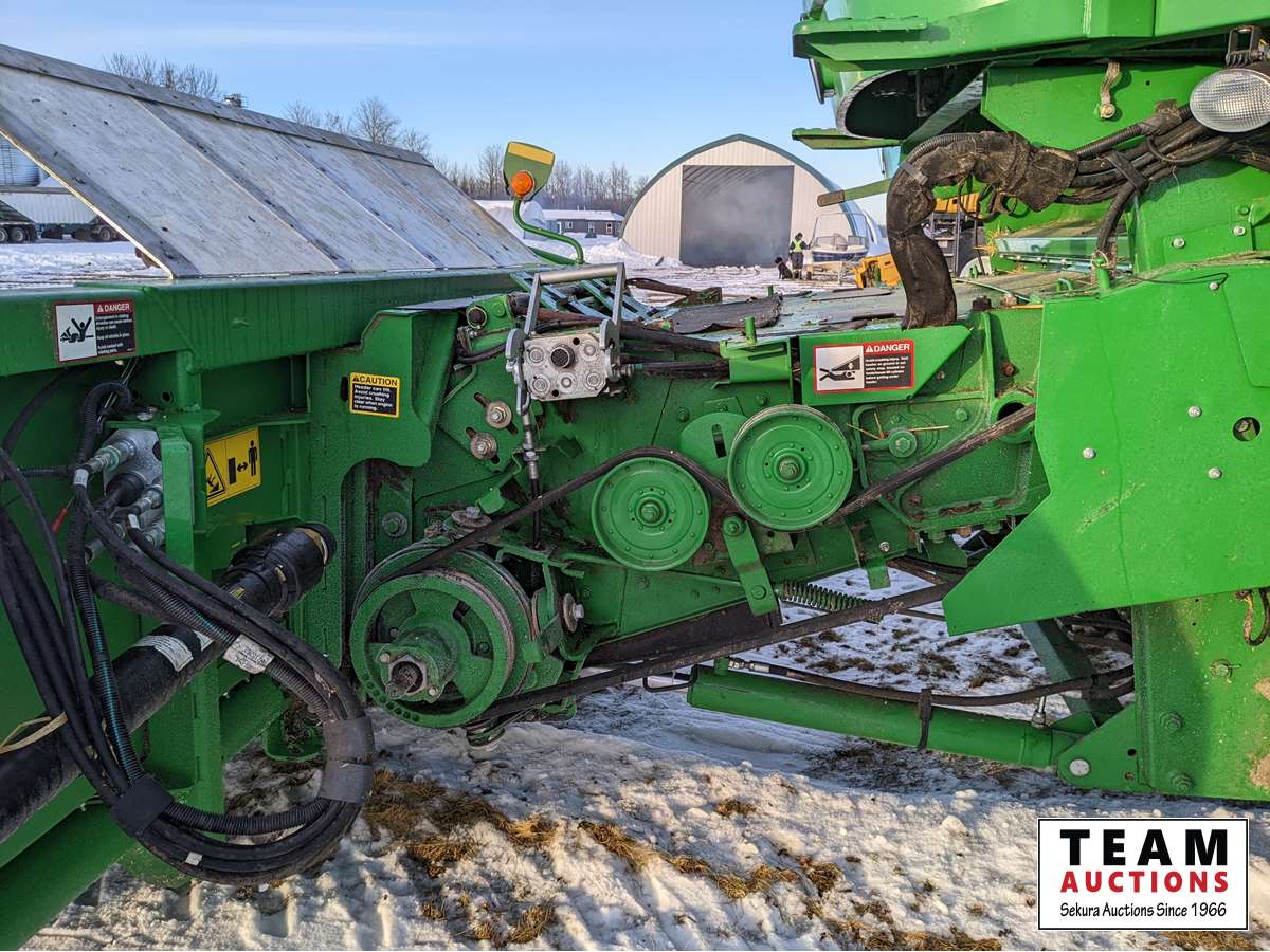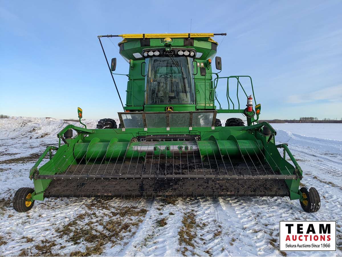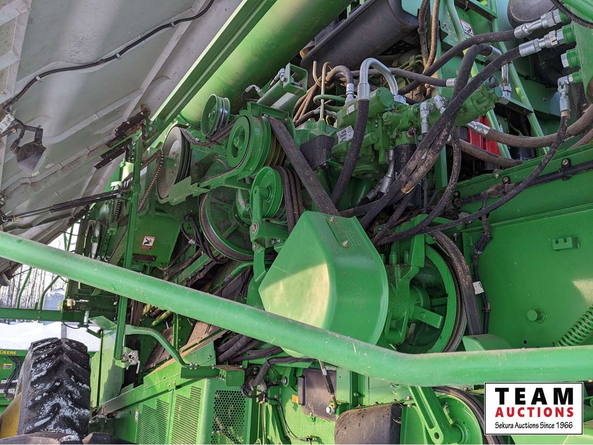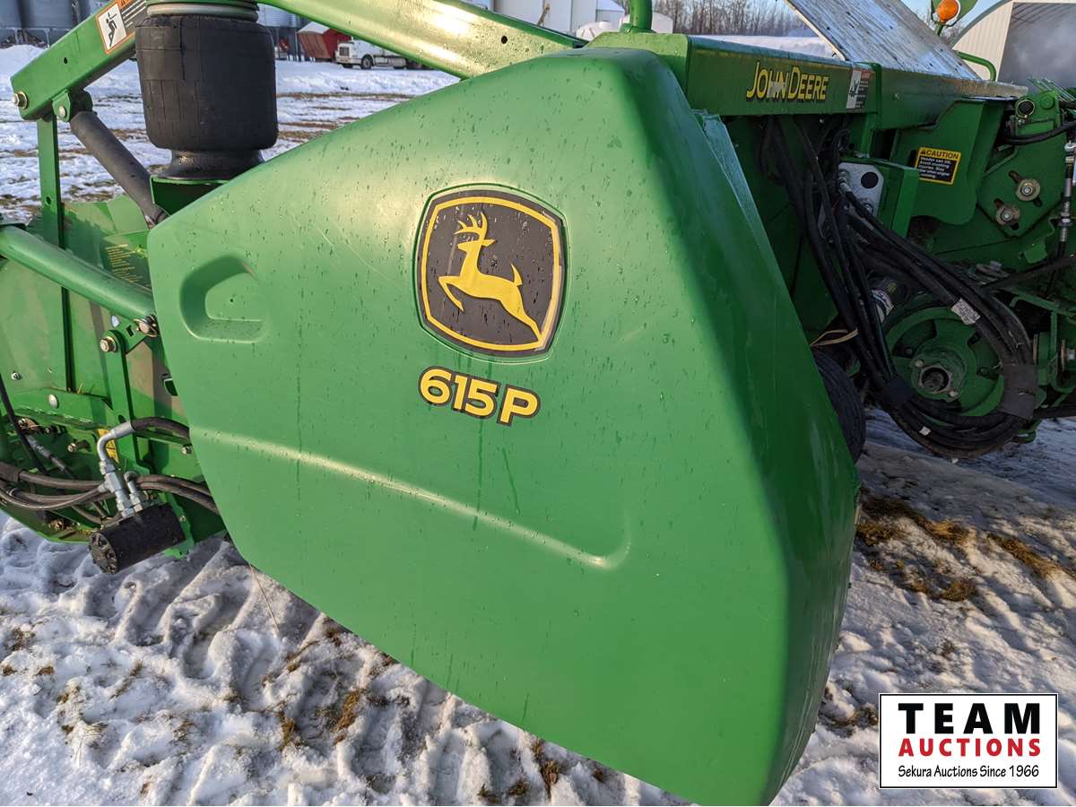 John Deere 615P belt pickup header, reverser, variable speed reel, header height control, auto steer ready, chopper, Crary Big Top hopper extension with roll tarp, chopper, 520/85R38 front duals, 28 L -26 rear, 1620 separator hrs