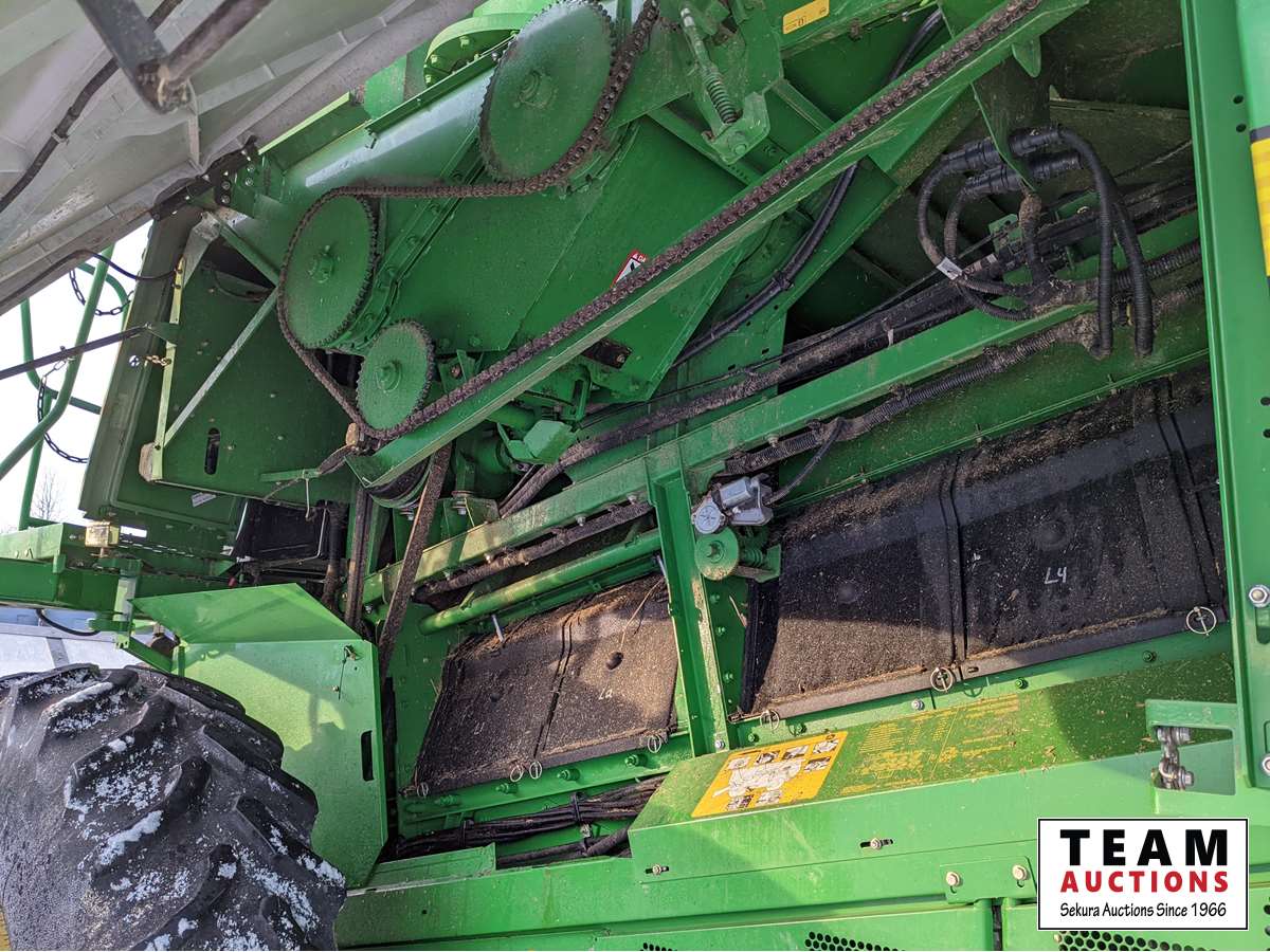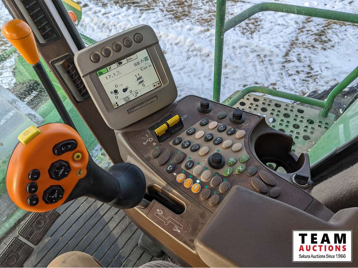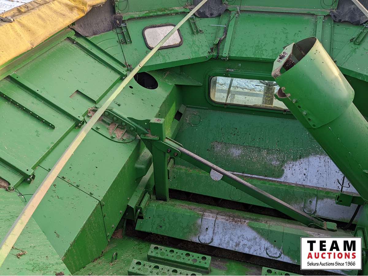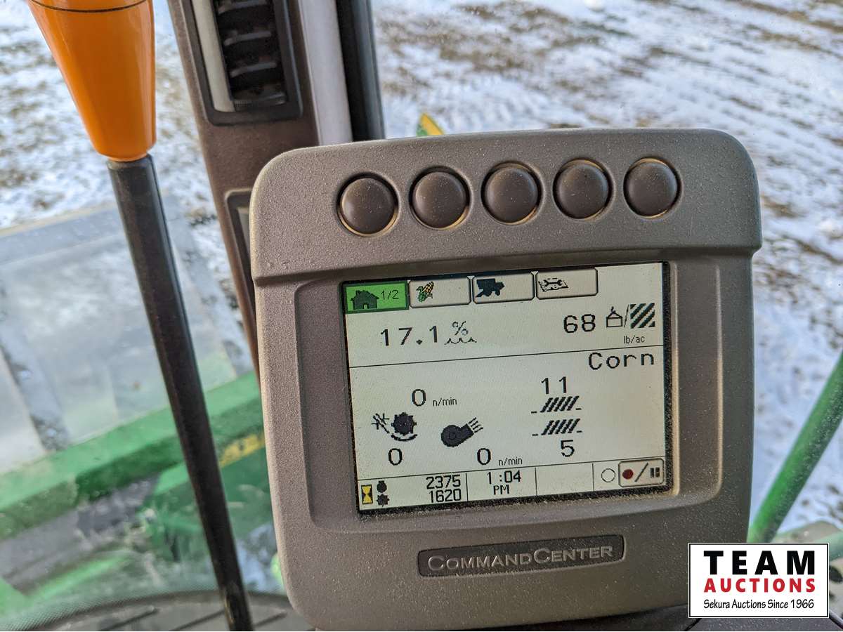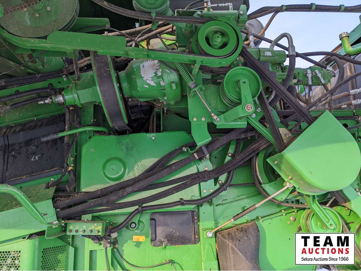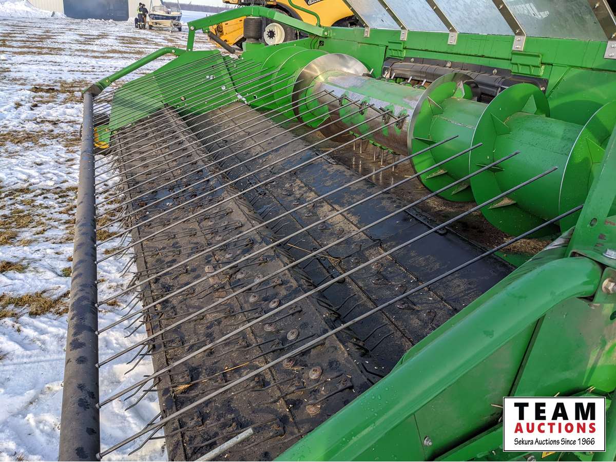 John Deere 615P belt pickup header, reverser, variable speed reel, header height control, auto steer ready, chopper, Crary Big Top hopper extension with roll tarp, chopper, 520/85R38 front duals, 28 L -26 rear, 1620 separator hrs