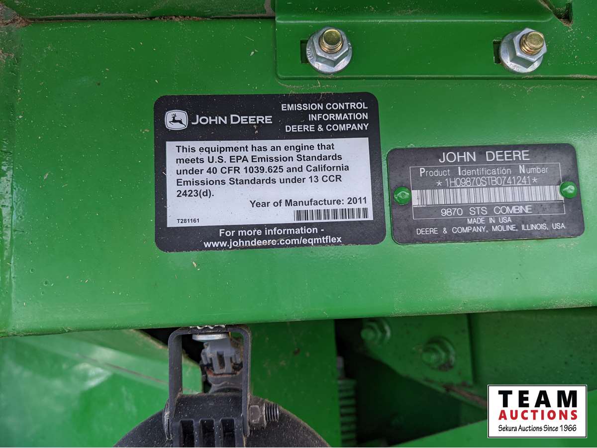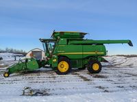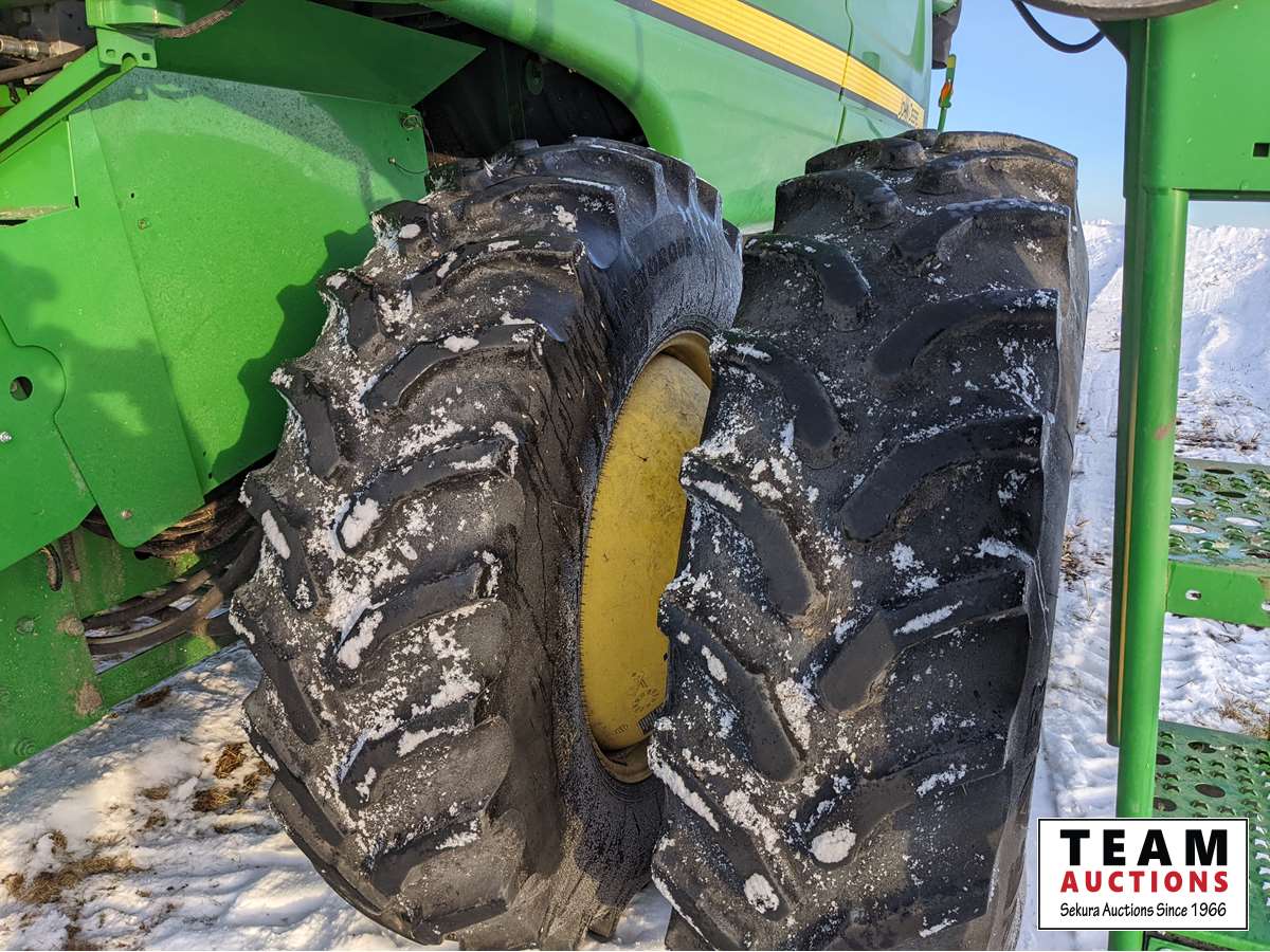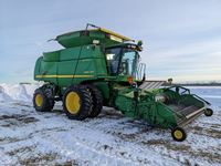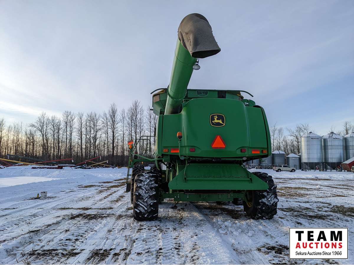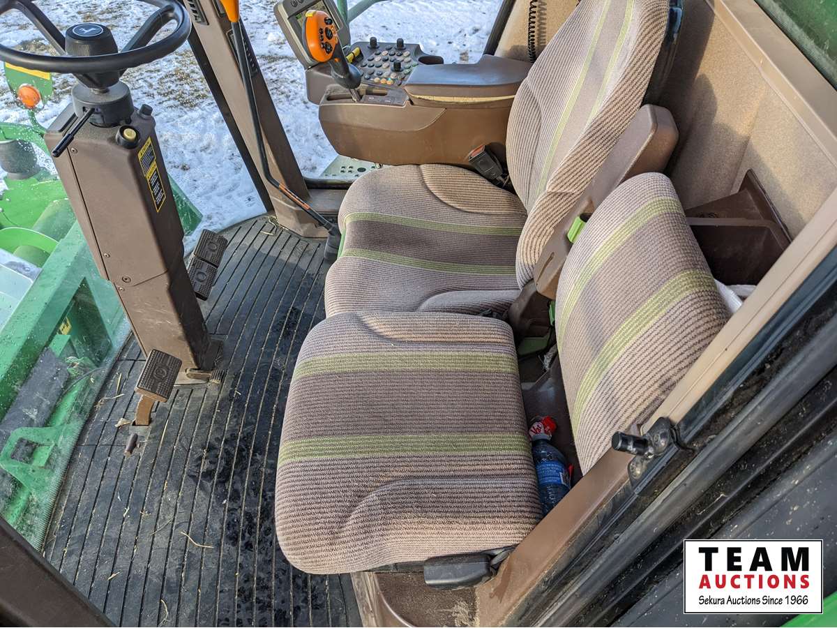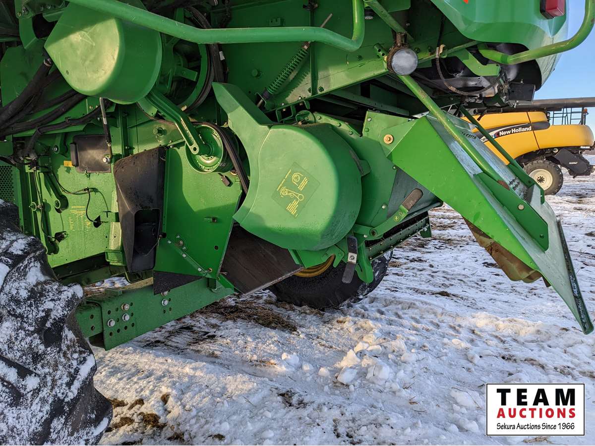 John Deere 615P belt pickup header, reverser, variable speed reel, header height control, auto steer ready, chopper, Crary Big Top hopper extension with roll tarp, chopper, 520/85R38 front duals, 28 L -26 rear, 1620 separator hrs