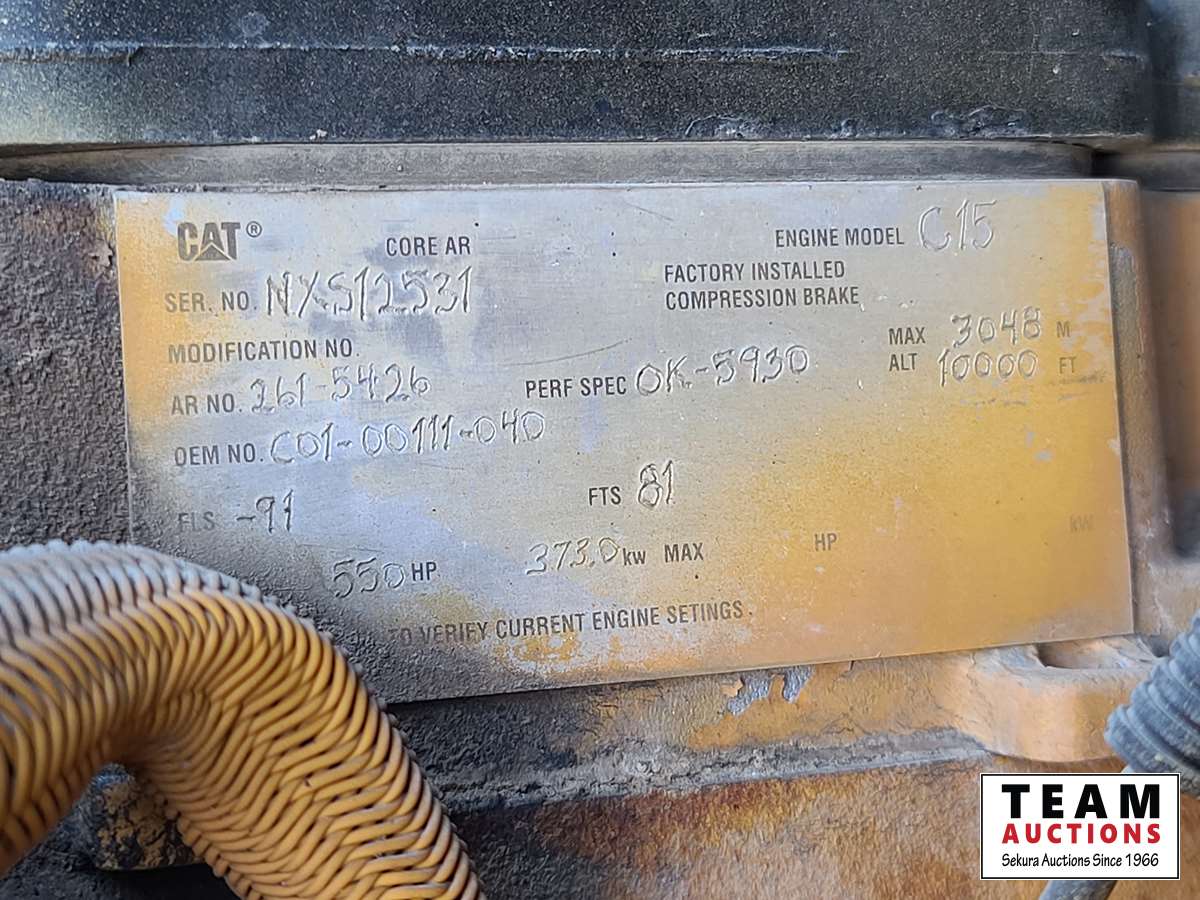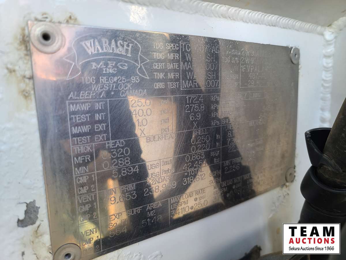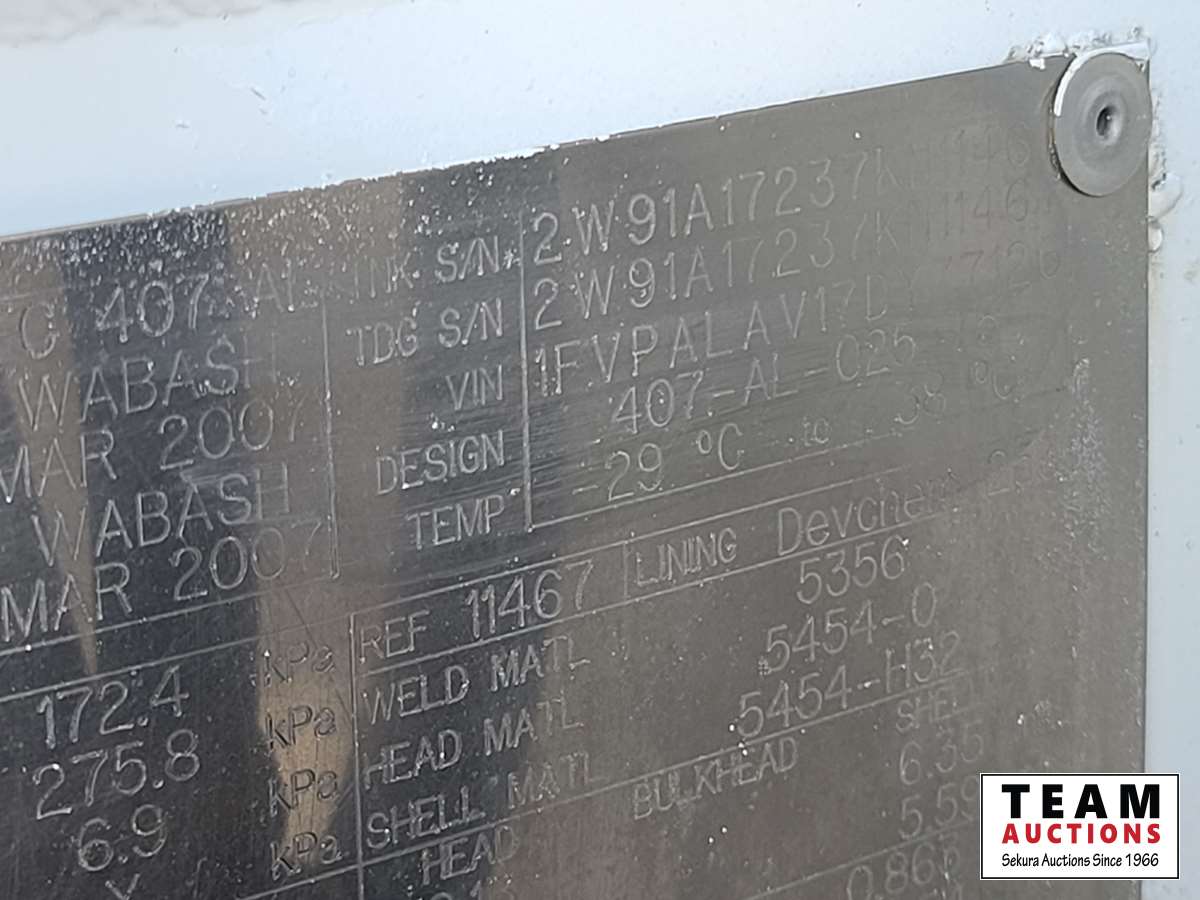 CAT C15, 500 HP engine, Eaton Fuller 18 speed transmission, engine brake, air ride suspension, 20,000 lb front, 69,000 lb rears, triple locking differential, 265 inch WB, aluminum wheels, 2007 Wabash 1 compartment aluminum tank, TC407 code, T&E 4 inch hydraulic driven pump, plumbed for pup, 385/65R22.5 front, 11R24.5 rear