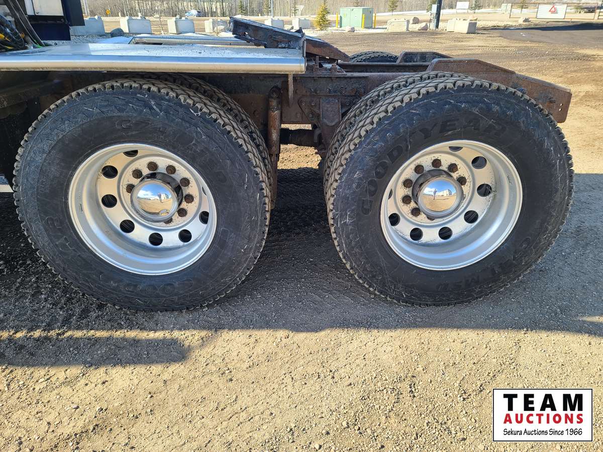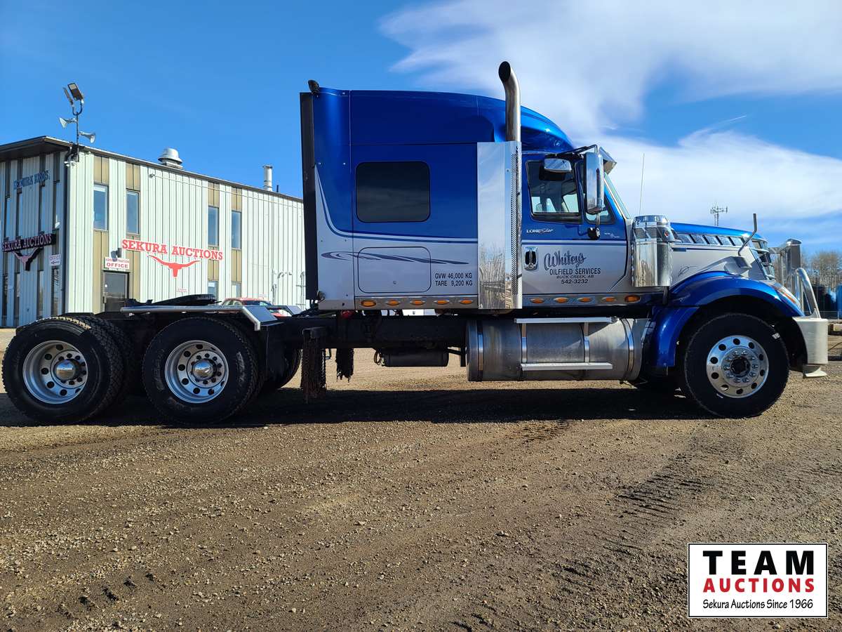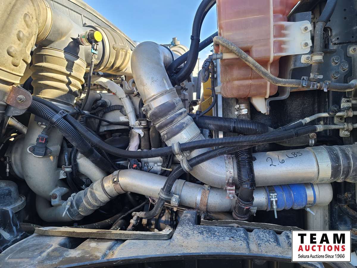Maxxforce 13 500 HP engine, Eaton Fuller 18 speed transmission, air ride suspension, 13,220 lb front axle, 46,000 rear axle, locking differential, sliding 5th wheel, double acting hydraulic drive pump, front Rue bar, aluminum rims, fridge, storage cabinets, 11R24.5