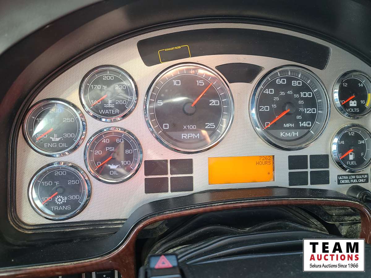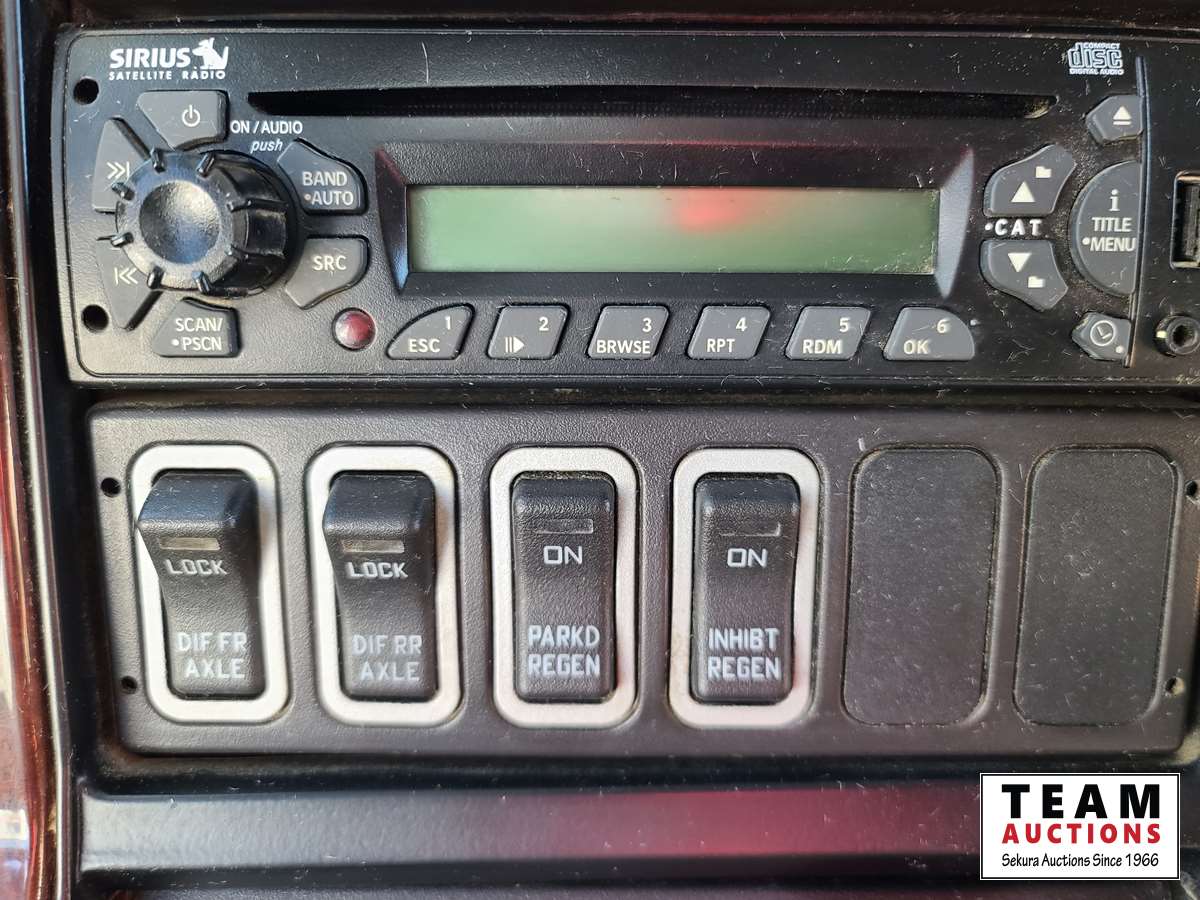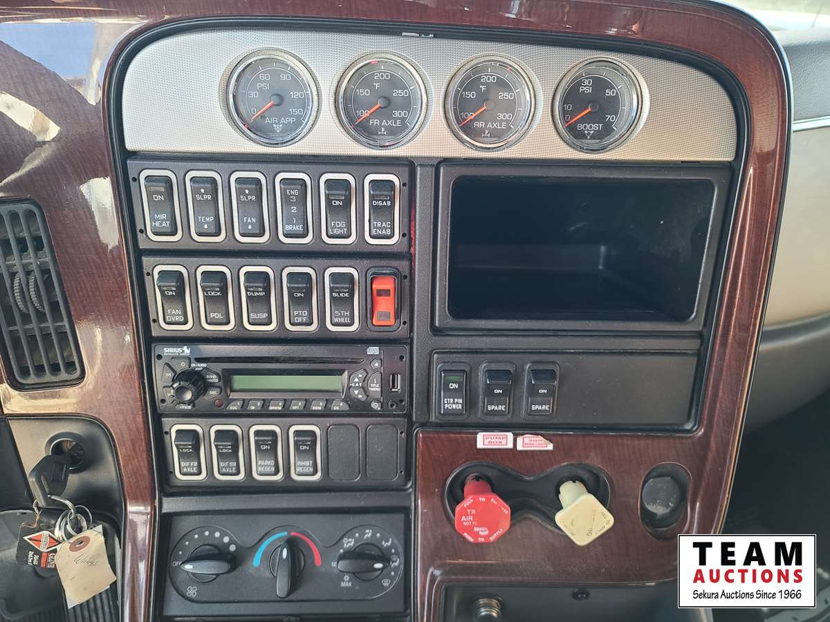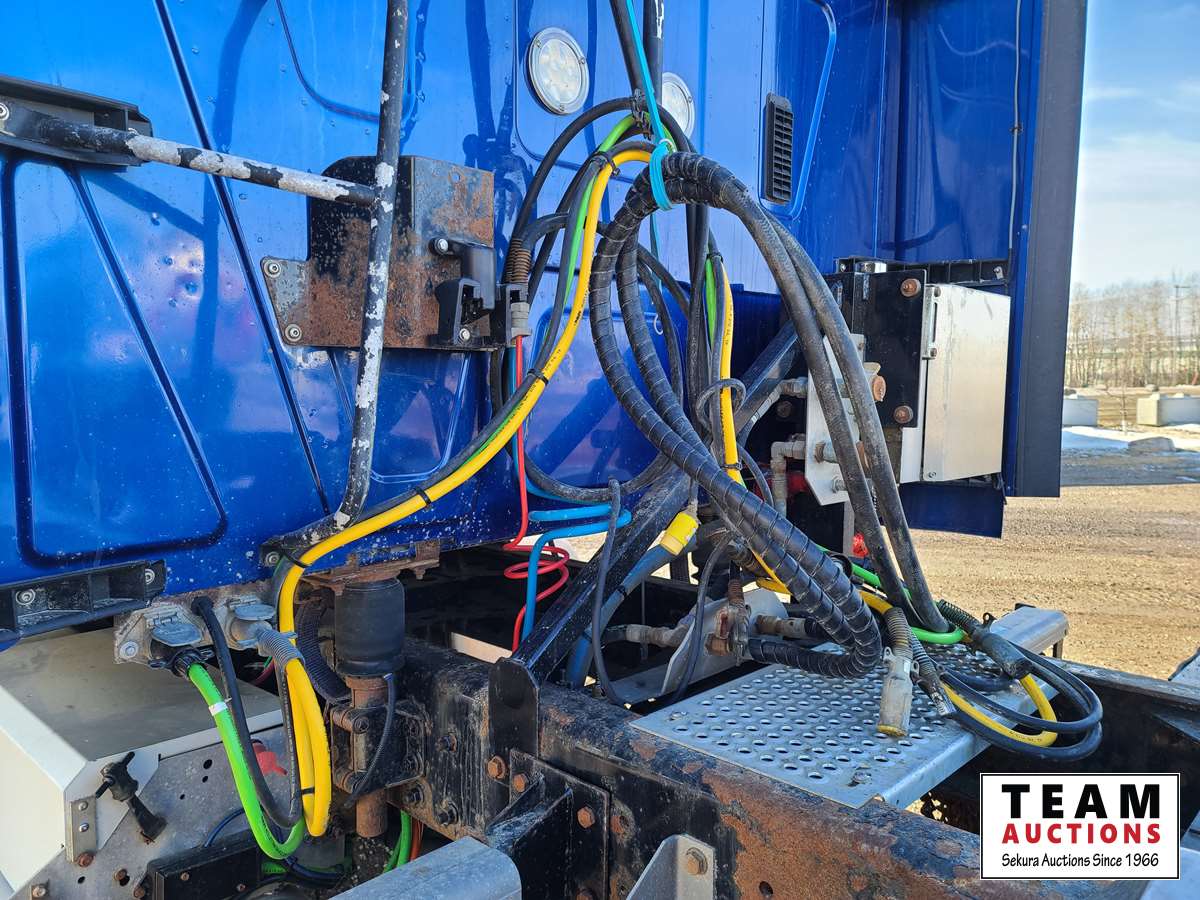 Maxxforce 13 500 HP engine, Eaton Fuller 18 speed transmission, air ride suspension, 13,220 lb front axle, 46,000 rear axle, locking differential, sliding 5th wheel, double acting hydraulic drive pump, front Rue bar, aluminum rims, fridge, storage cabinets, 11R24.5