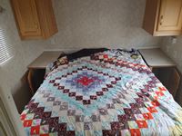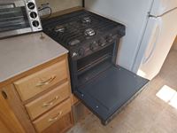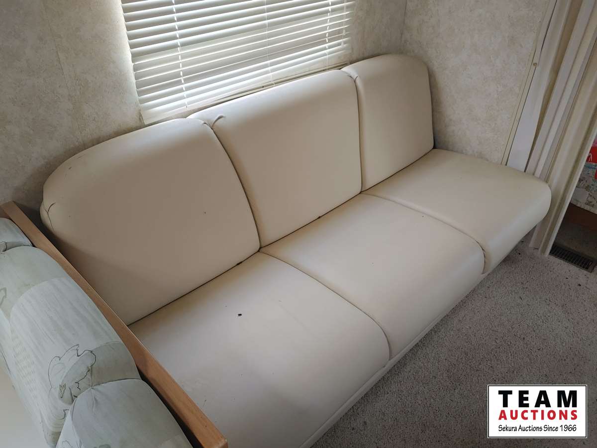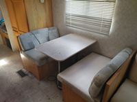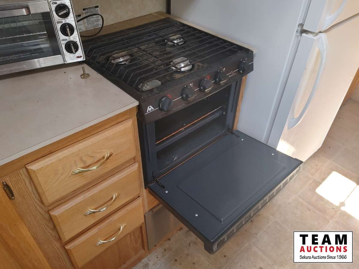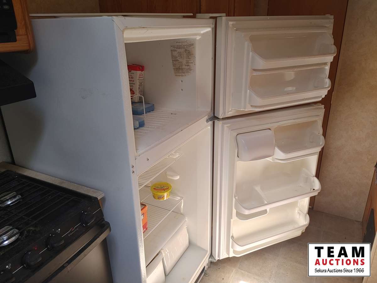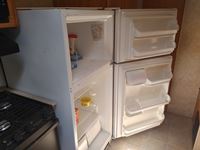 Fullsize fridge, stove/oven, microwave, kitchen, couch/bed, double bed, bunk bed, bathroom, 205/75R14C tires
