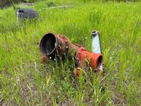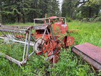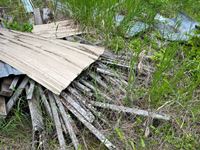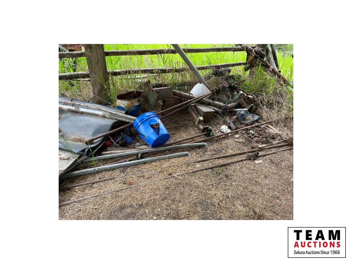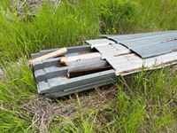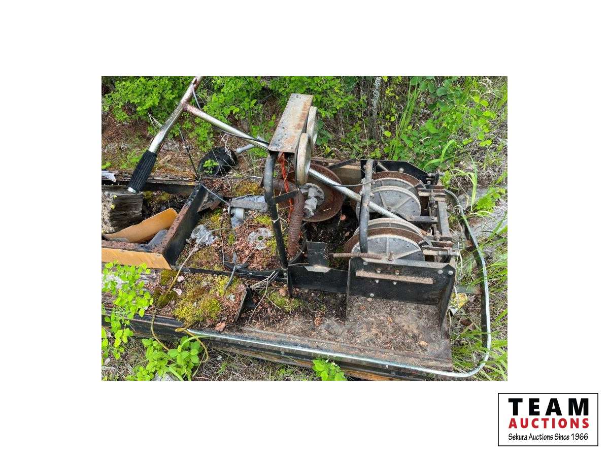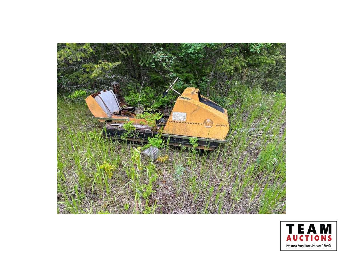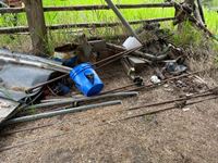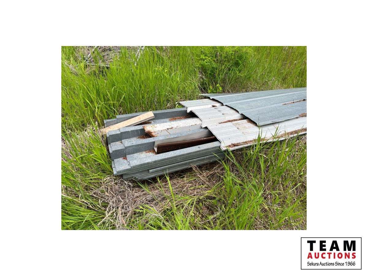 Various items in under cover and within 50 ft of Pole Shed Steel roofing Lumber Old farm equipment Old Bombardie snowmobile Take what you want Pole Shed not included