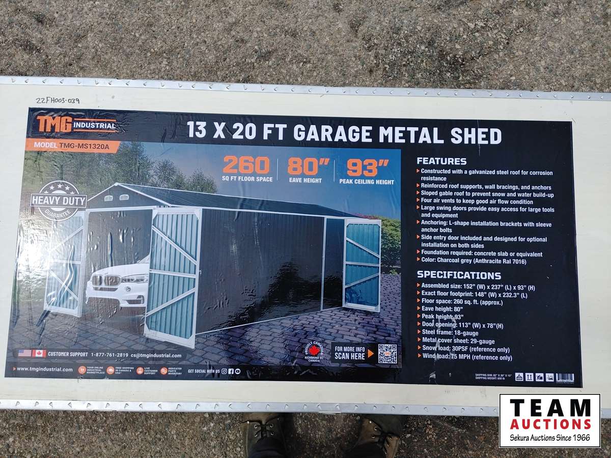 134 TMG Industrial 13 Ft X 20 Ft Metal Shed Garage (Unused)
