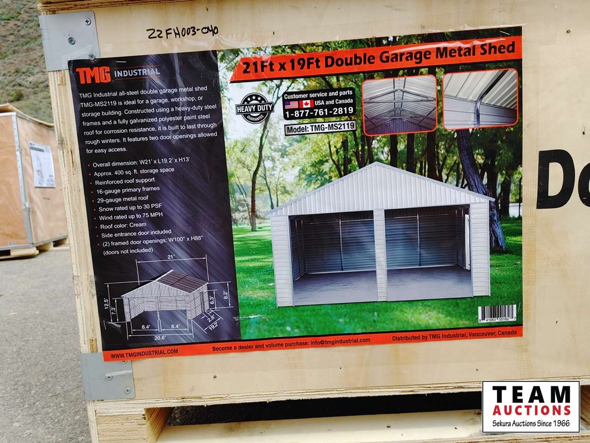 132 TMG Industrial 21 Ft X 19 Ft Metal Shed Double Garage (Unused)