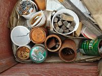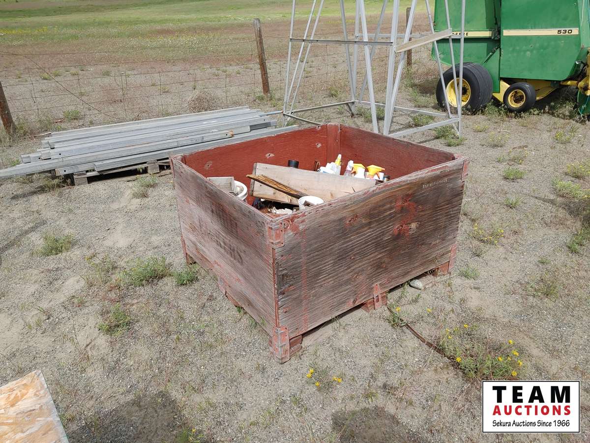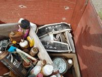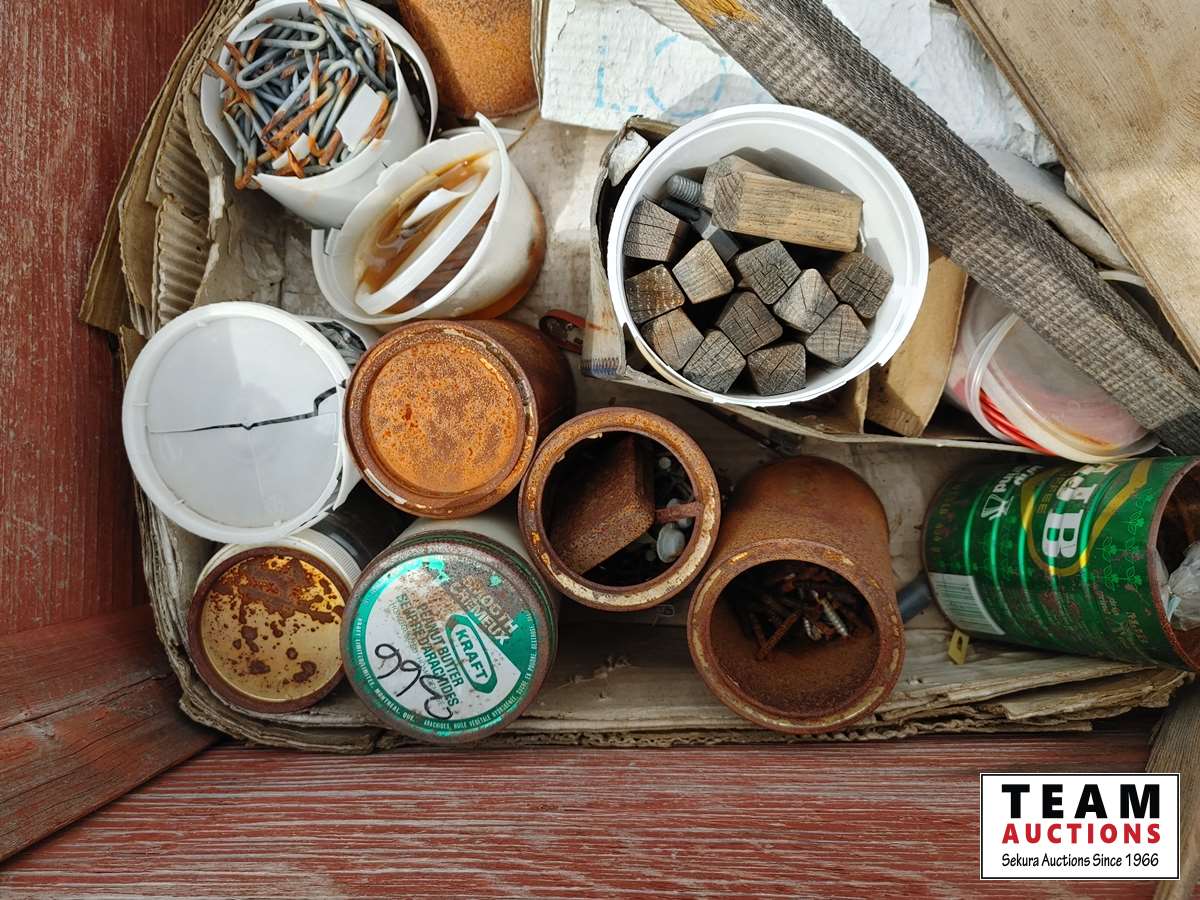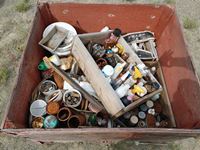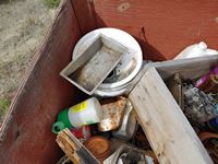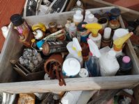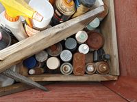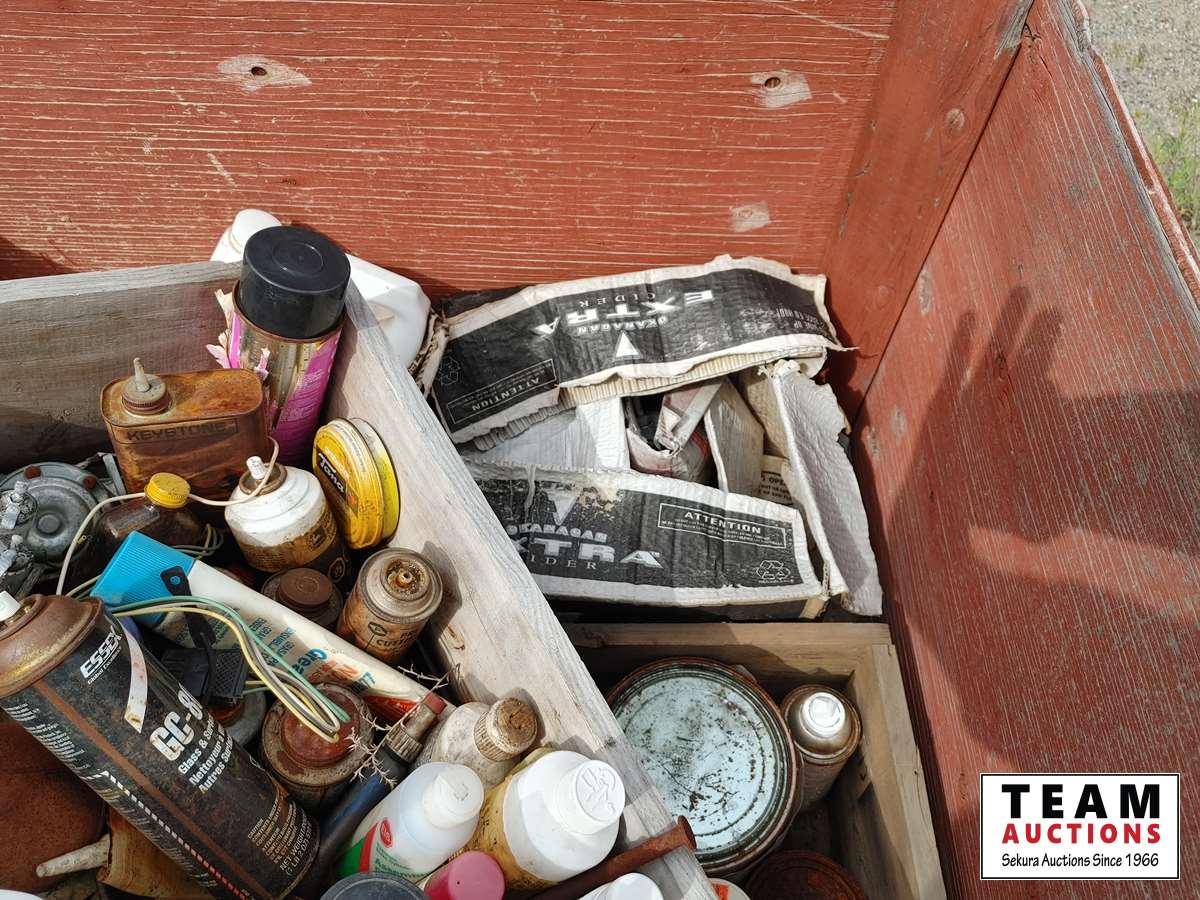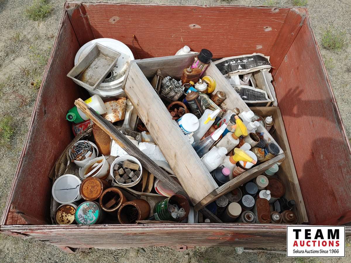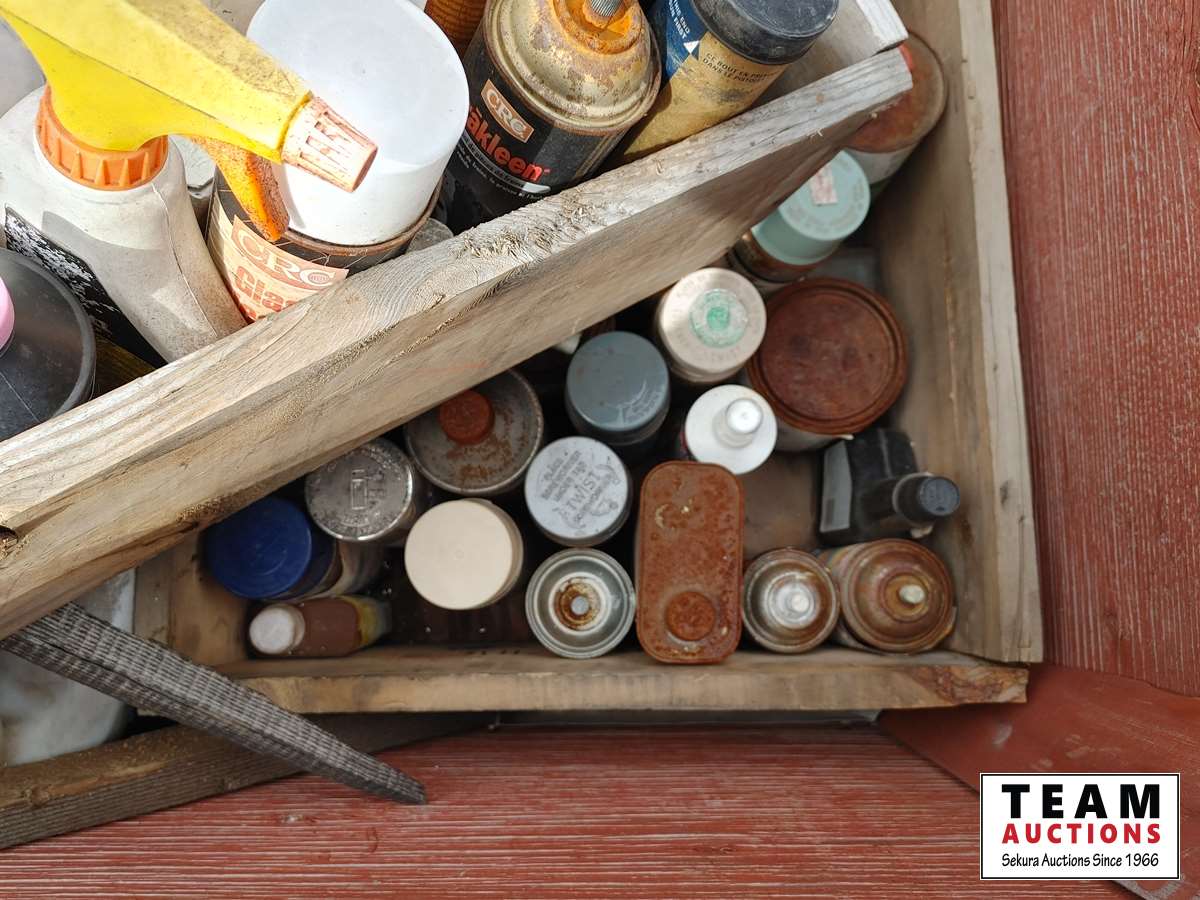 182 Wood Crate with Miscellaneous Cleaners, Paints, Nails.