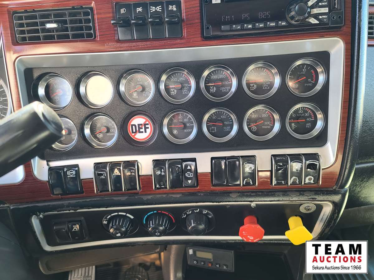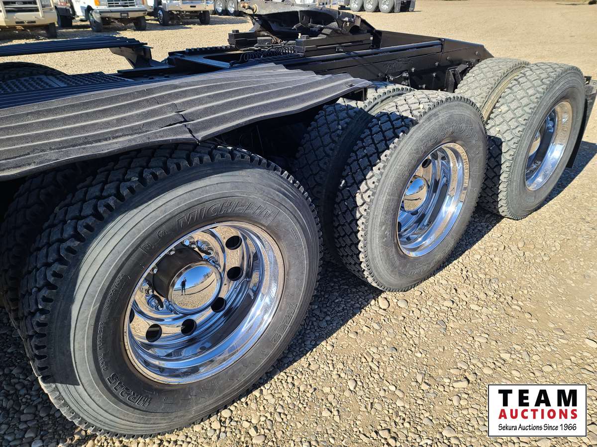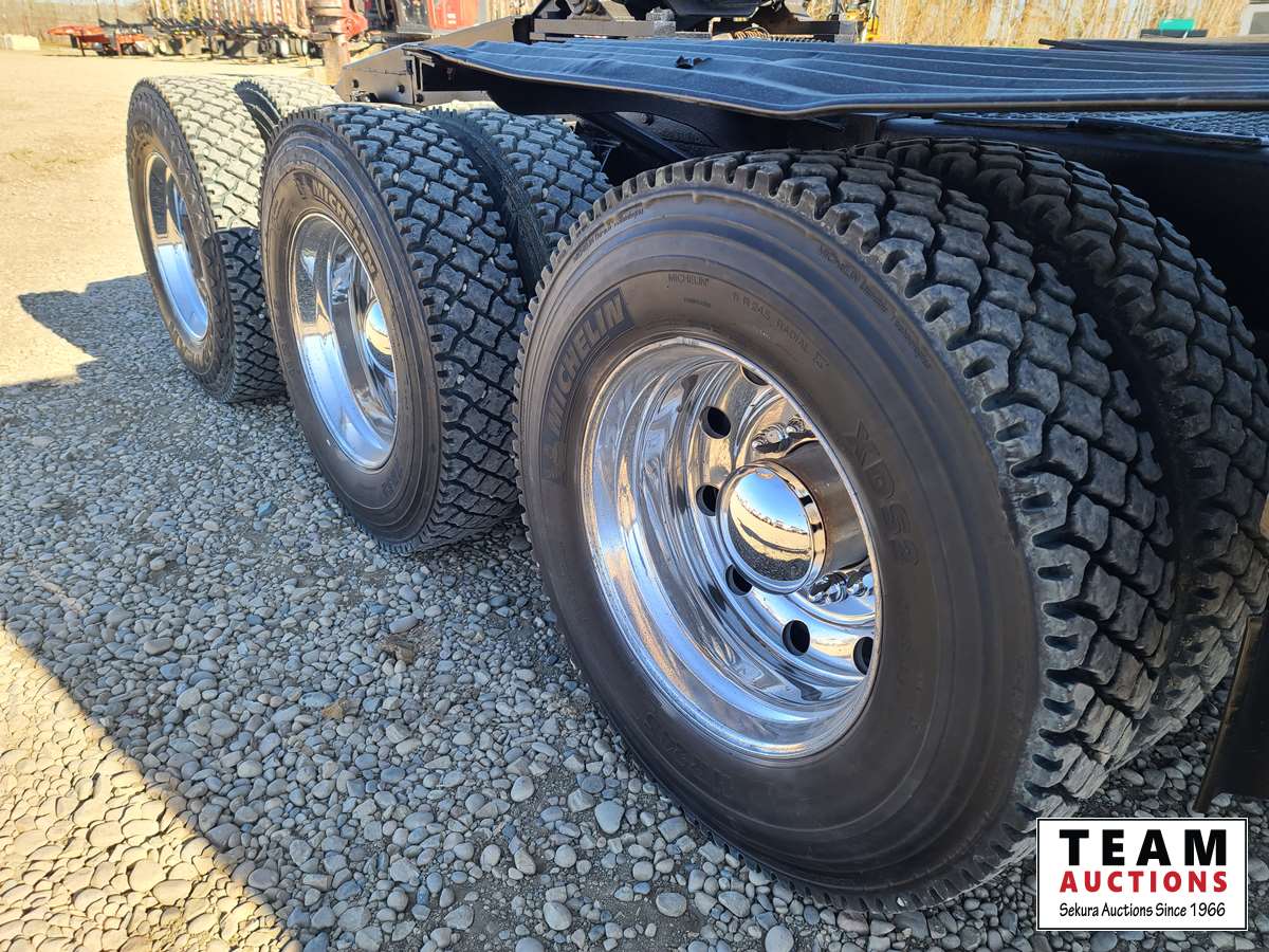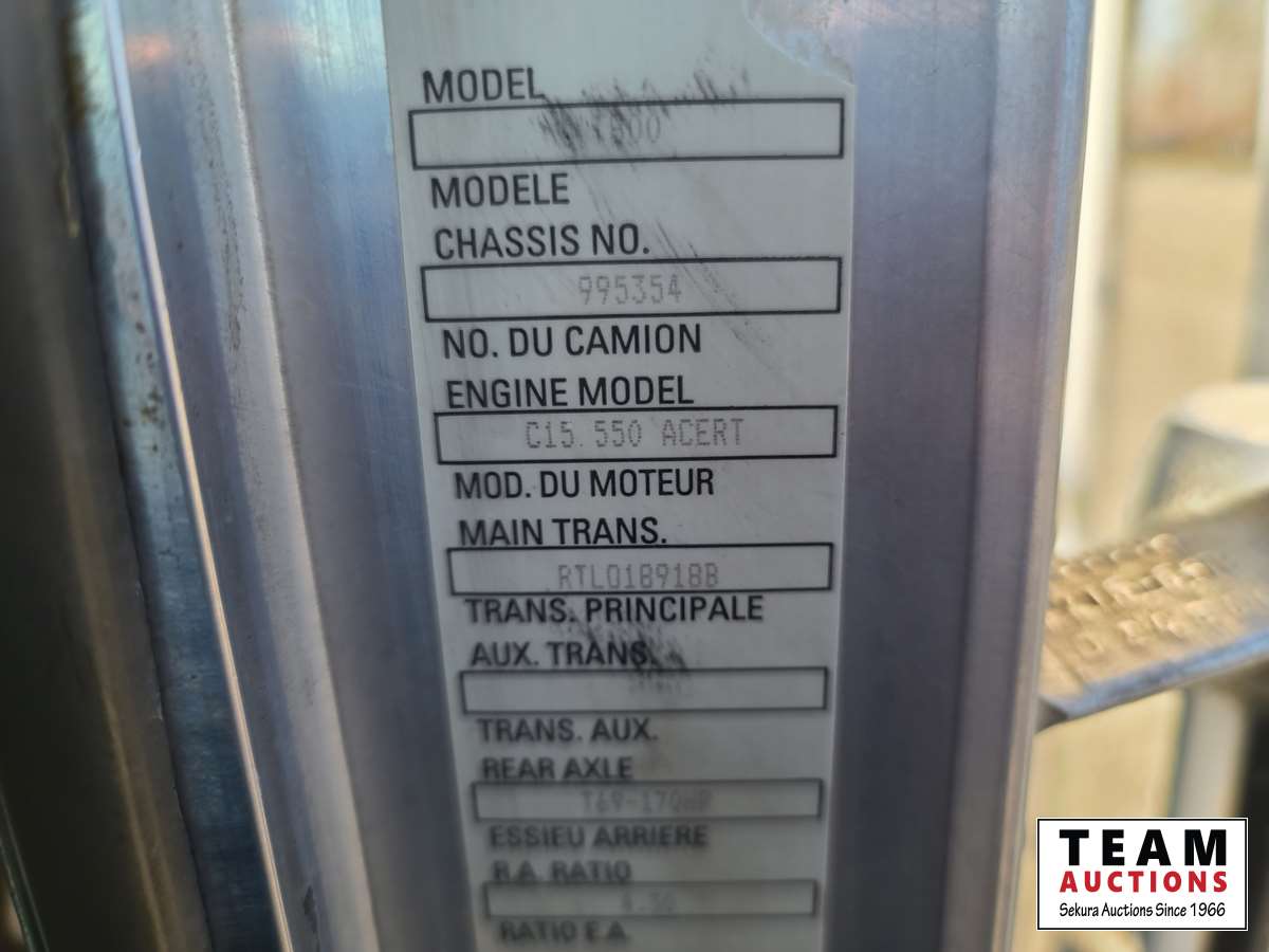 Caterpillar C15, 550 HP, 6 cylinder, diesel, engine brake, Eaton Fuller RTLO18918B tranmission, NeWay air ride suspension, 19,332 lb front, T69170 HP 69,000 lb rears, full locking differentials, 4.30 ratio, 269 inch WB, 38. In sleeper, SI onboard 9100QC logging scales, aluminum front bumper & headache rack, Webasto engine heater, aluminum wheels, 385/65R22.5 front, 11R24.5 rear