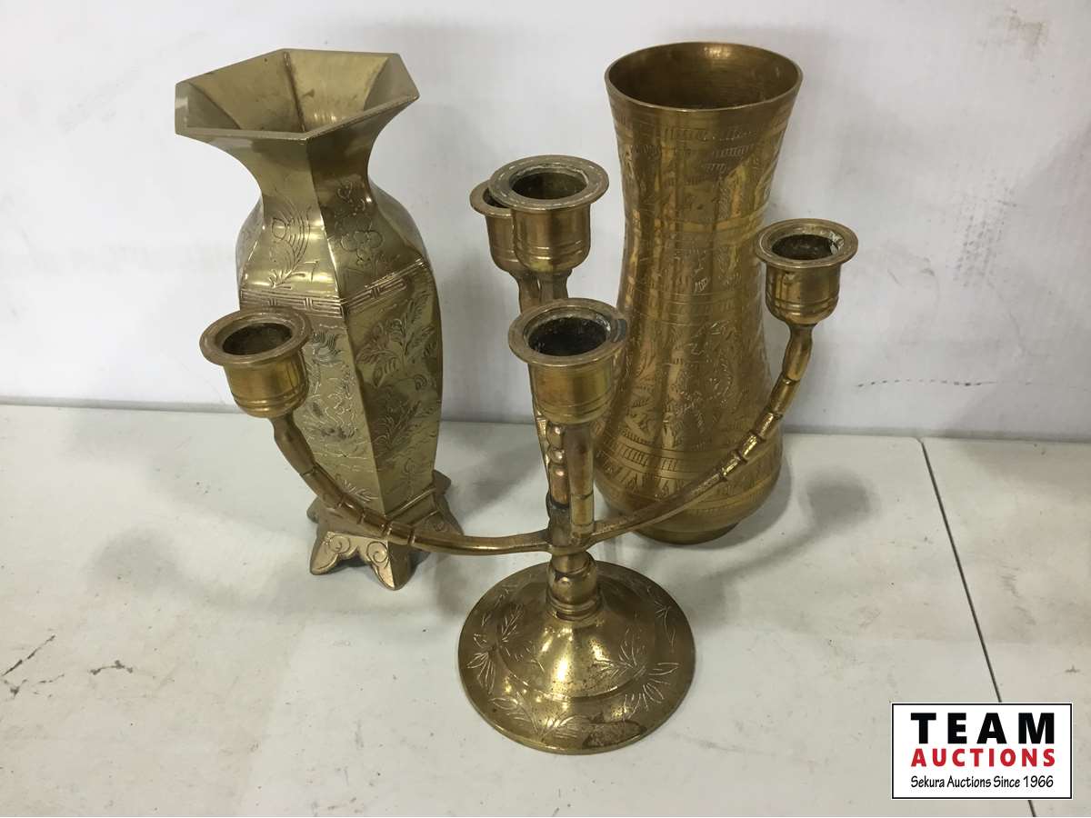 1108 (2) Brass Vases, Brass Candle Holder