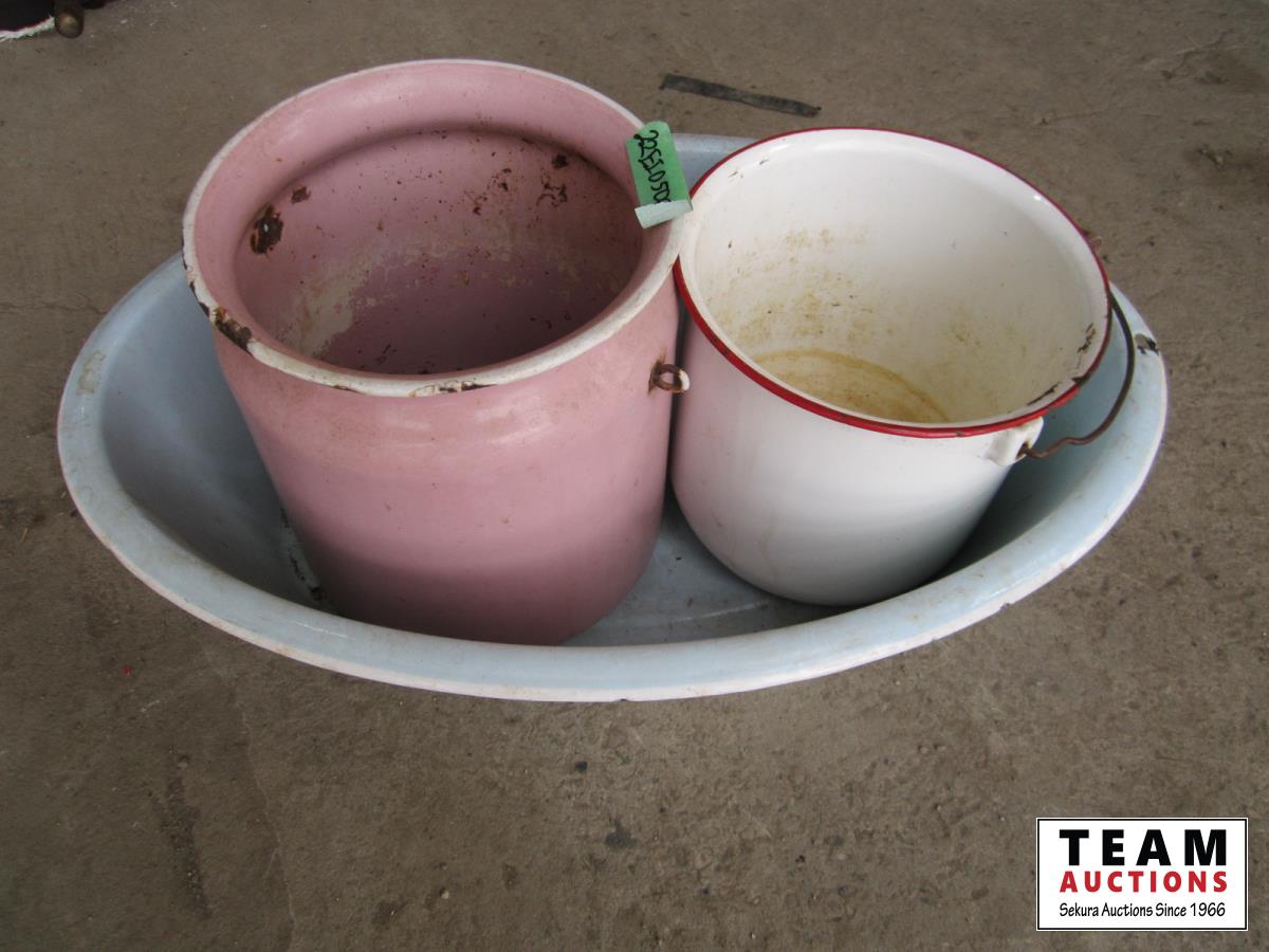 1055 (2) Enamel Pots & Wash Basin