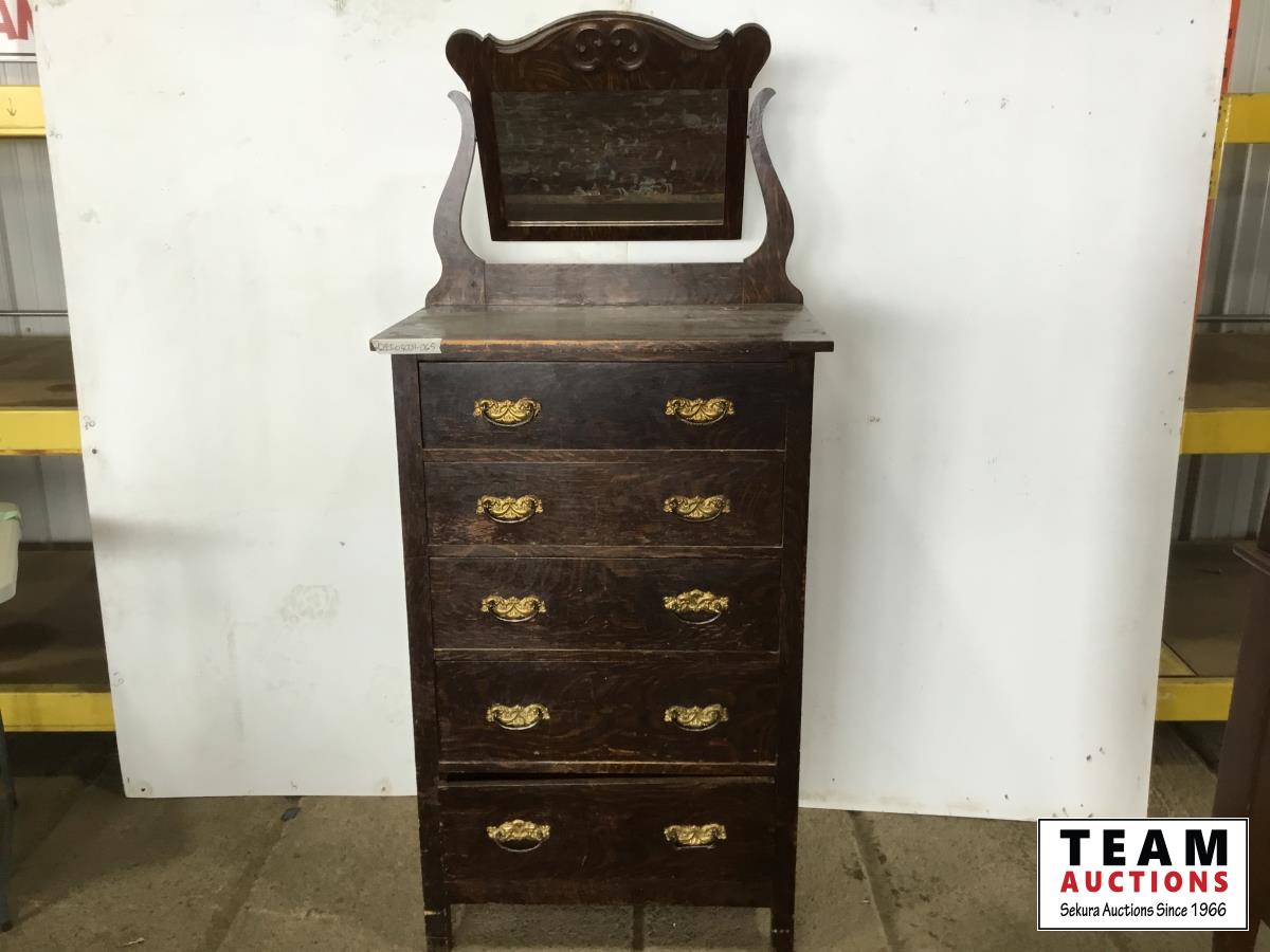 1059 Antique 5 Drawer Dresser with Mirror