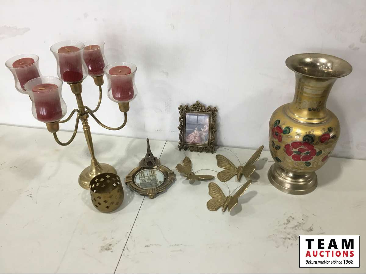 Metal vase, candle holder, picture, butterfly ornament, brass decorative bowl, brass coaster