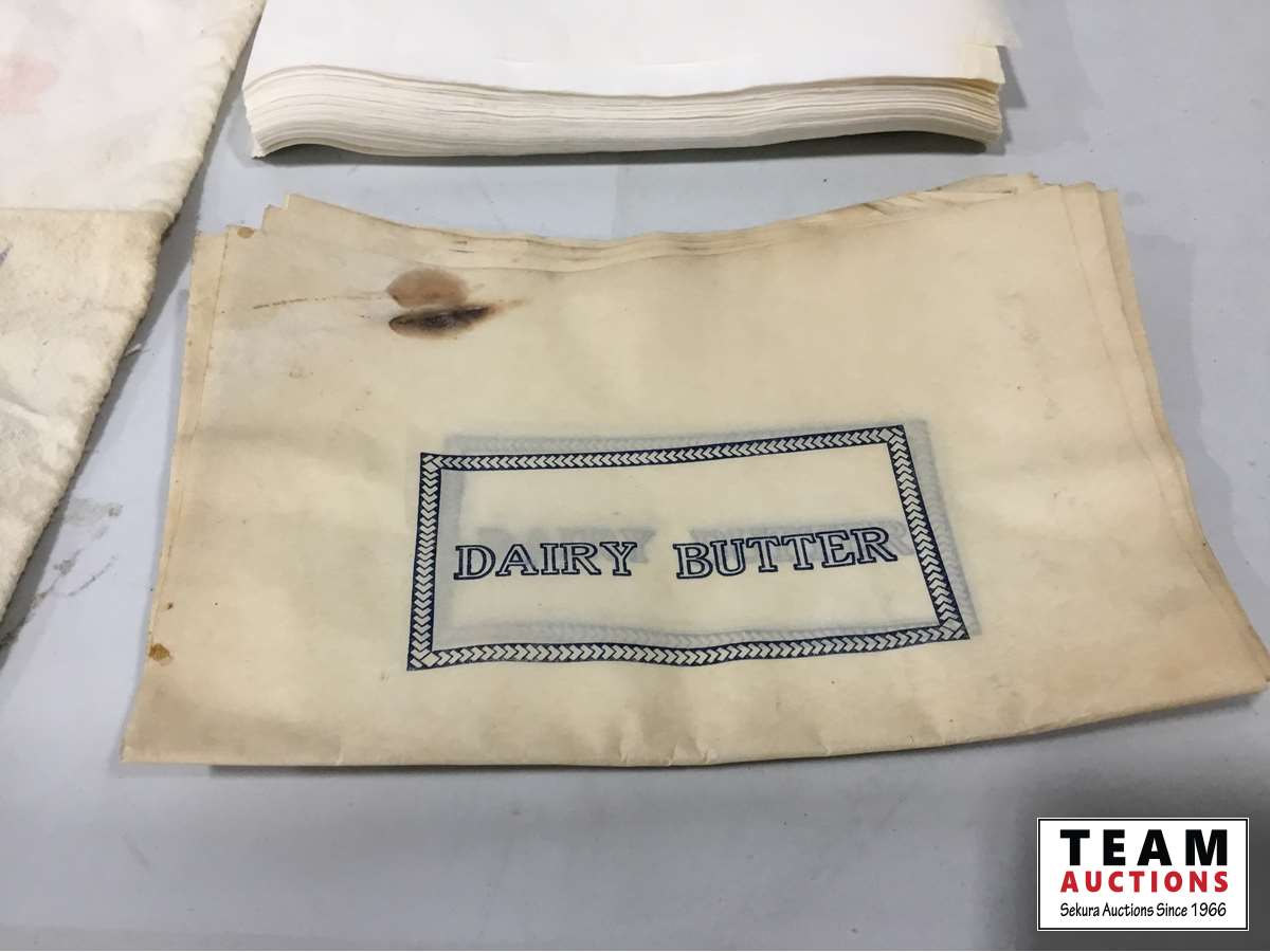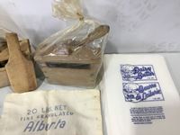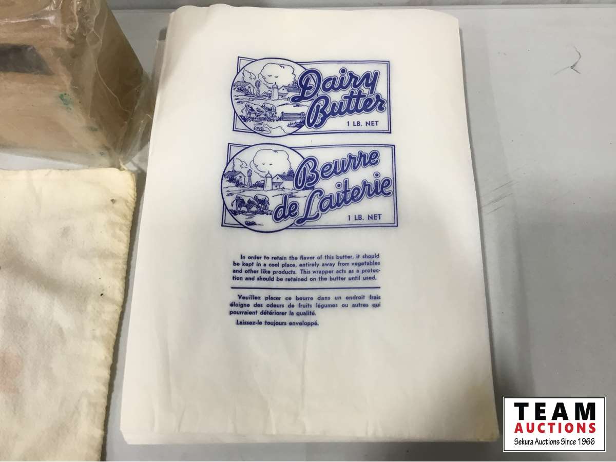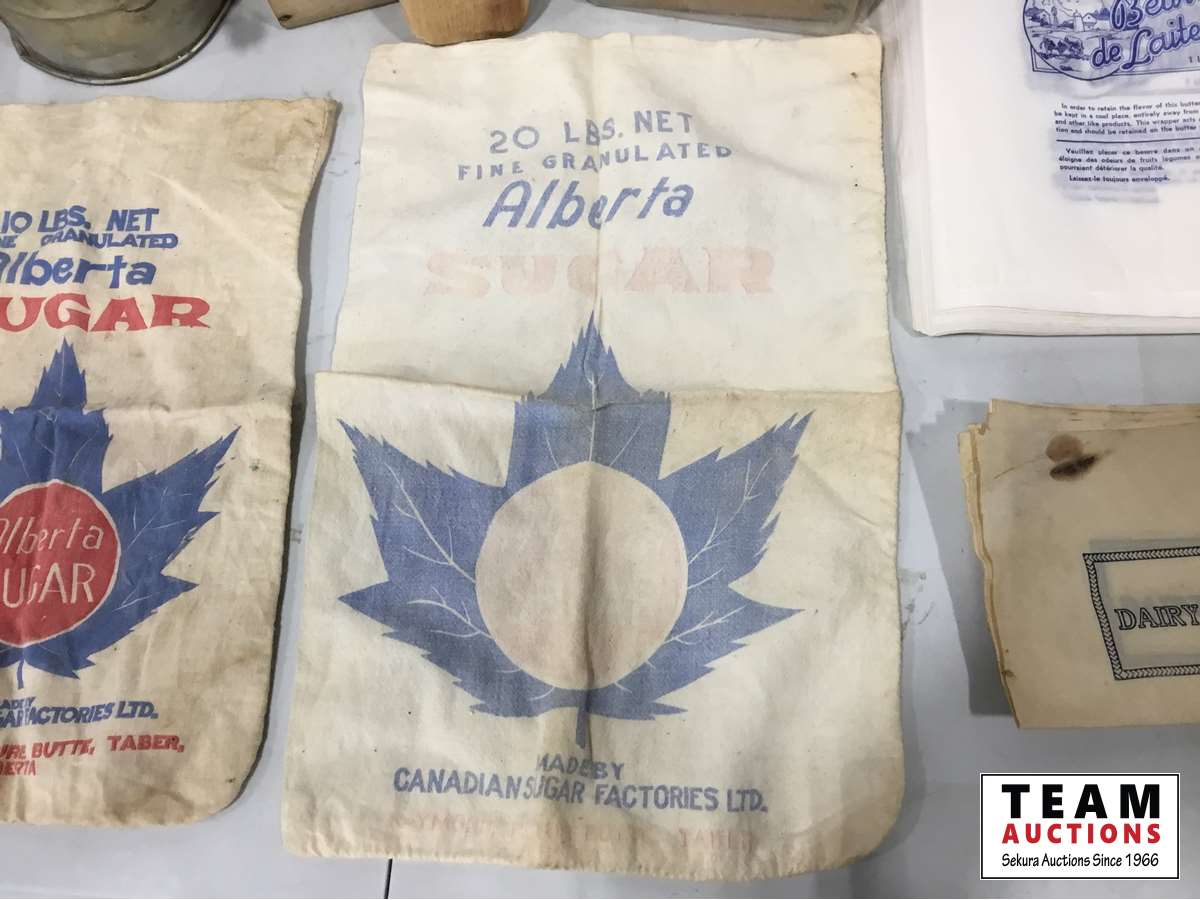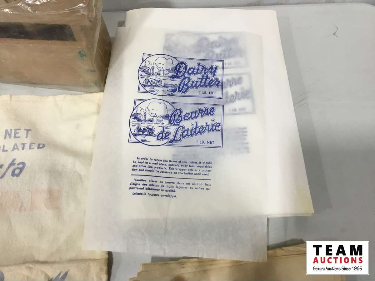 (2) Butter presses, (2) sugar bags, Qty of butter wrapers, hand juicer, flour sifter