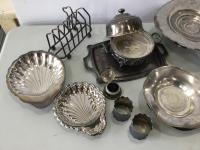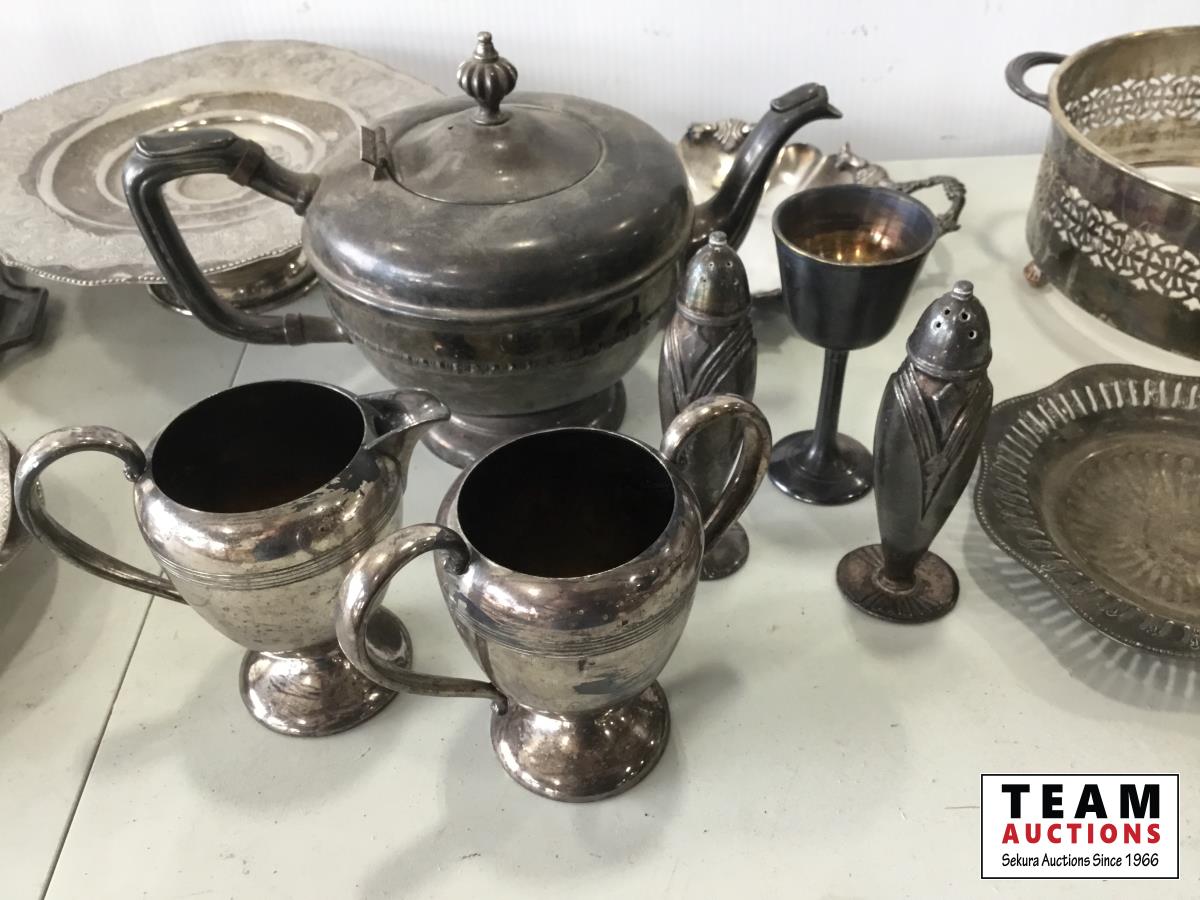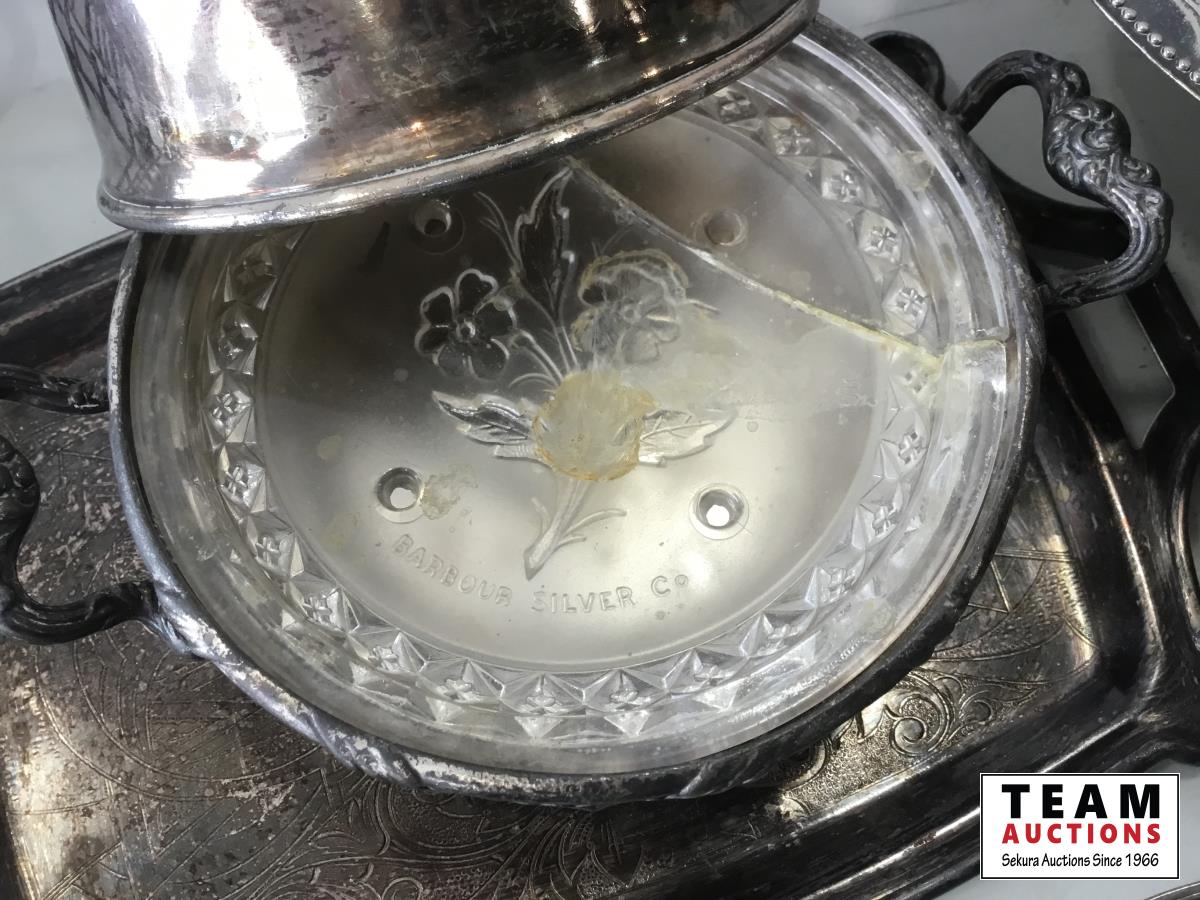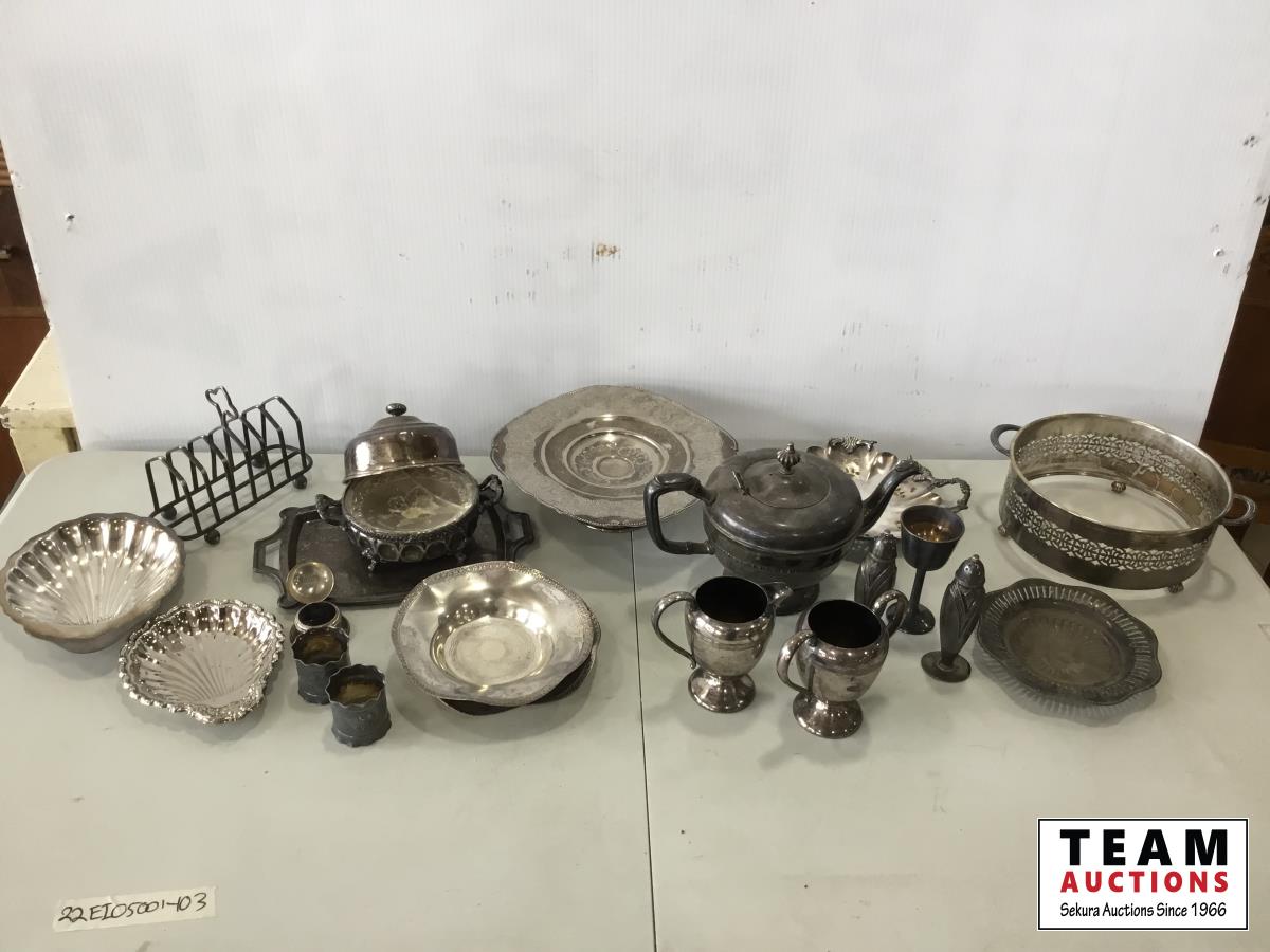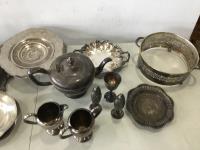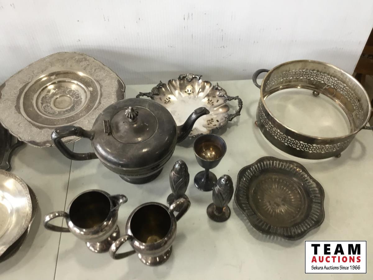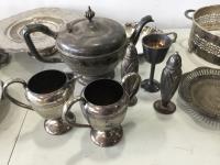 serving trays, salt & pepper shaker, cream & sugar bowls, goblet tea pot, miscellaneous