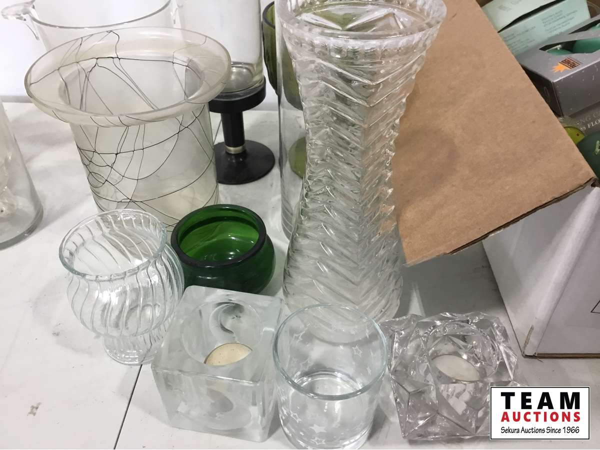 1113 Assorted Glasses, Vases, Candles