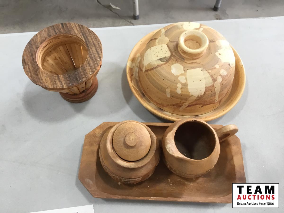 1173 Pottery Items & Wood Vase