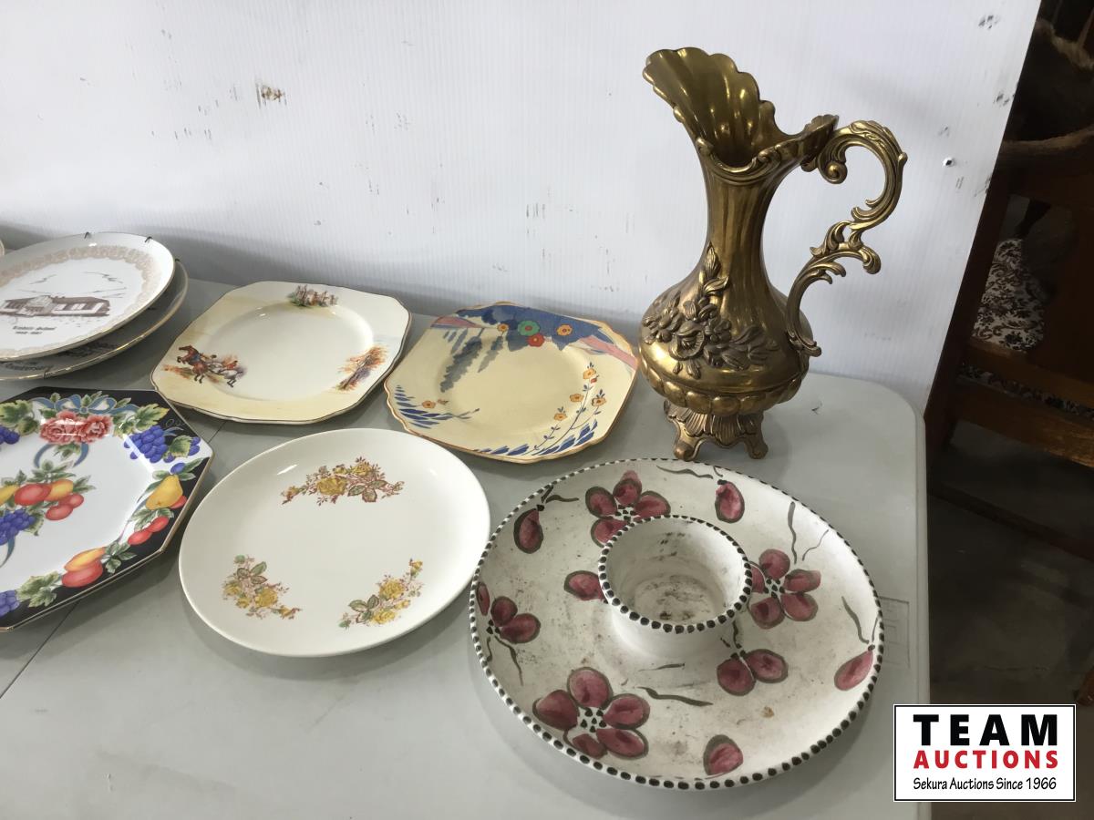 1219 Qty of Plates & Brass Pitcher