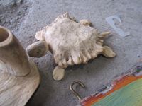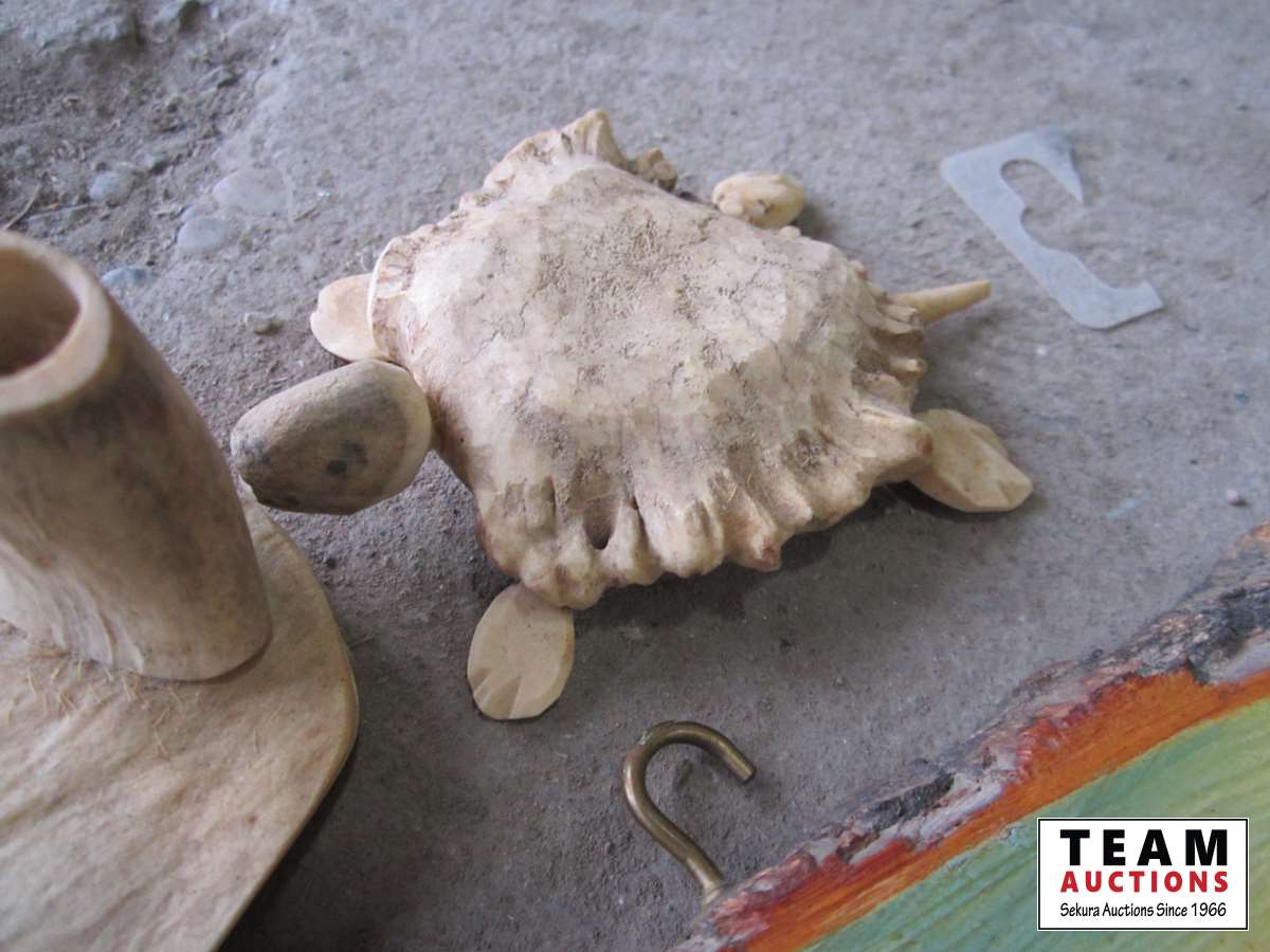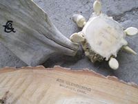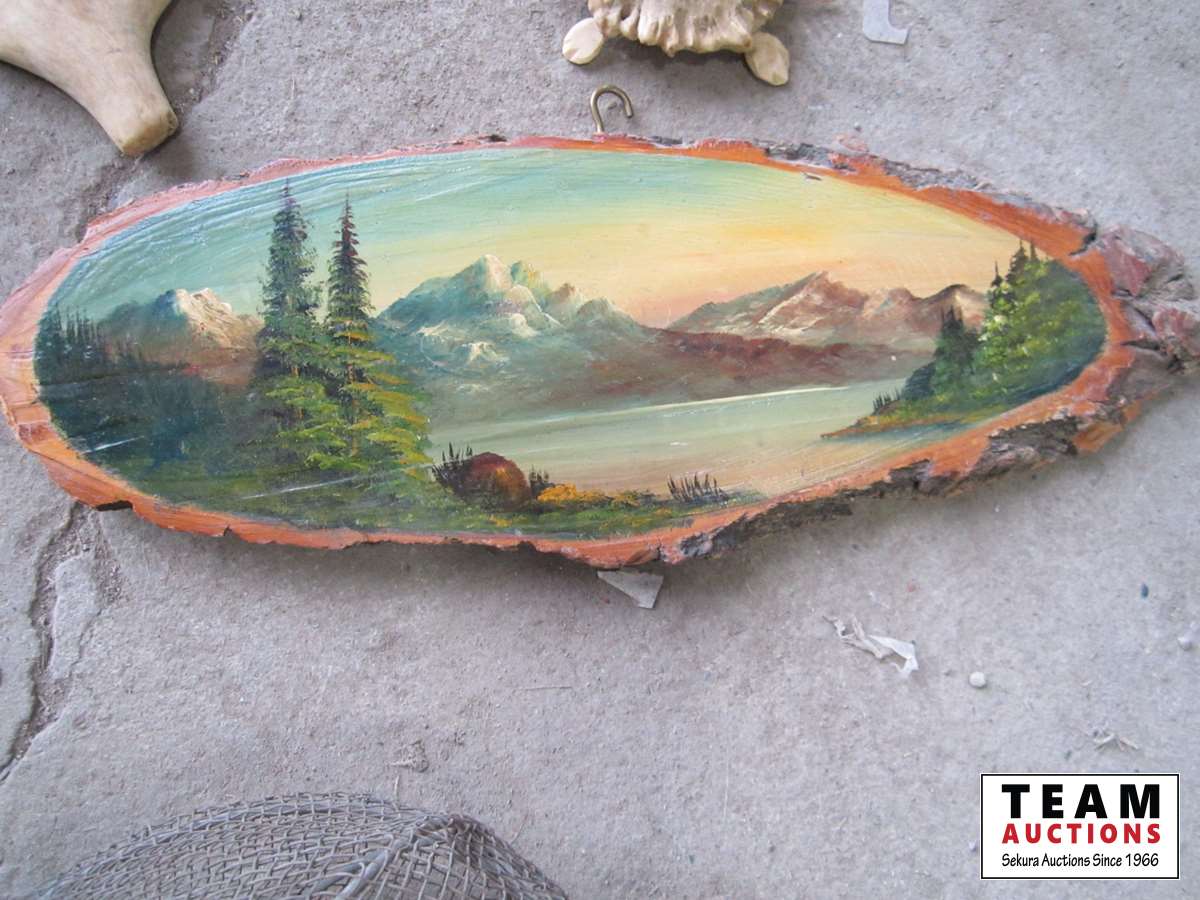 1338 wood slab w/Picture, strainer, turtle and