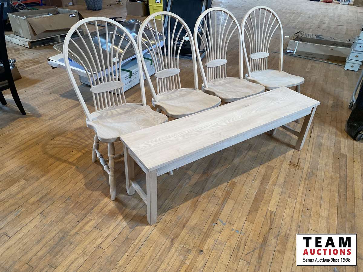 1010 Wood Table W/4 Chairs & Bench
