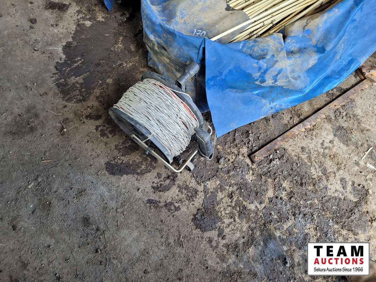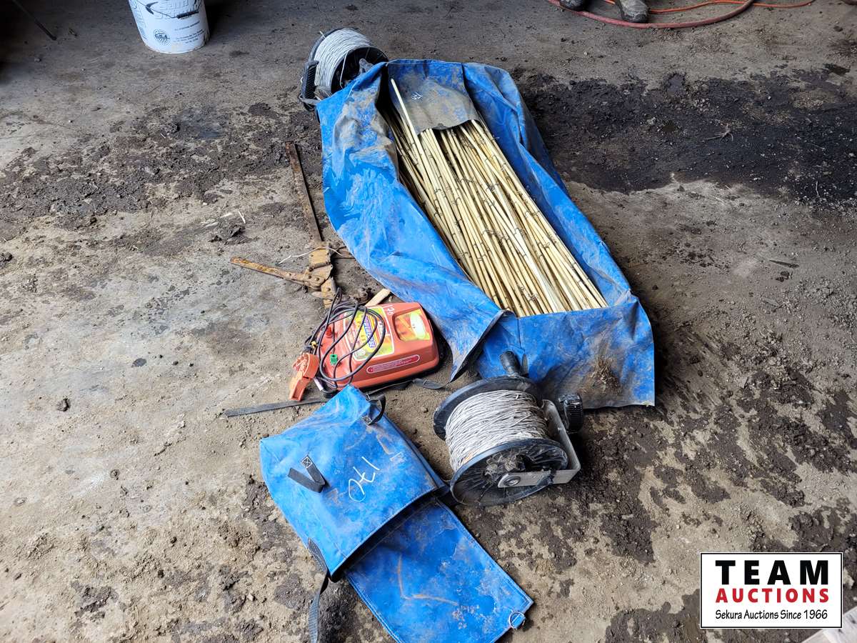 Fibre glass post, (2) rolls of wire, Fence stretcher, fencer