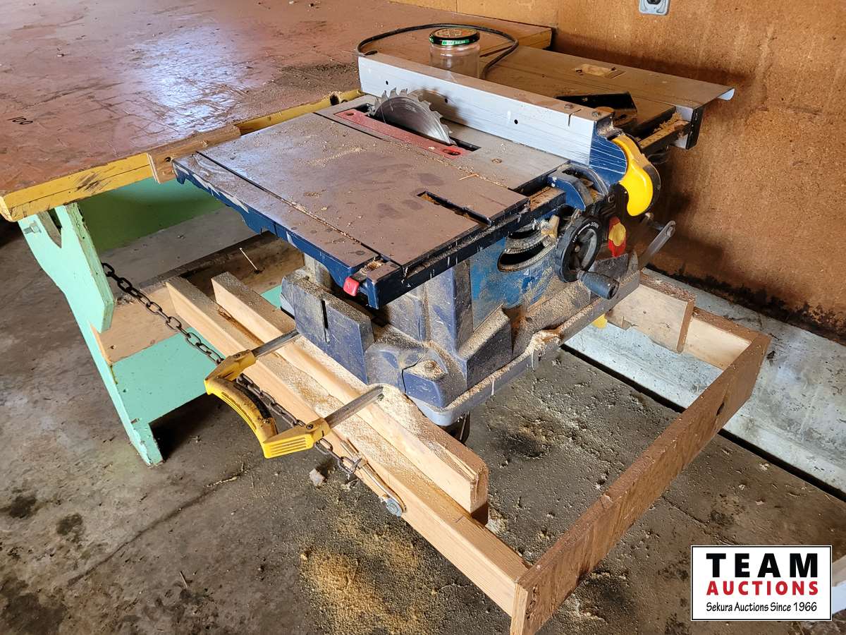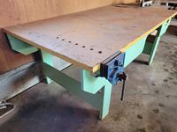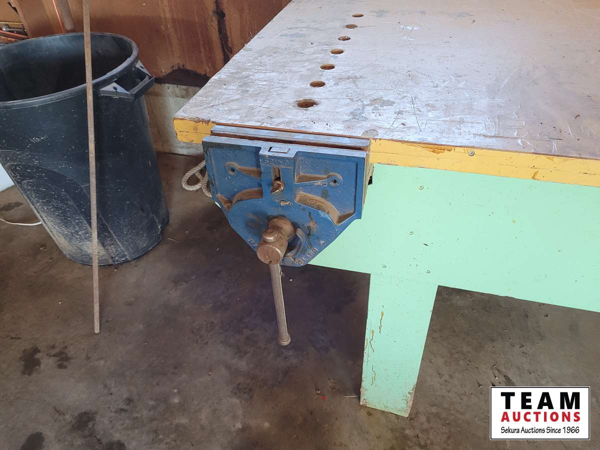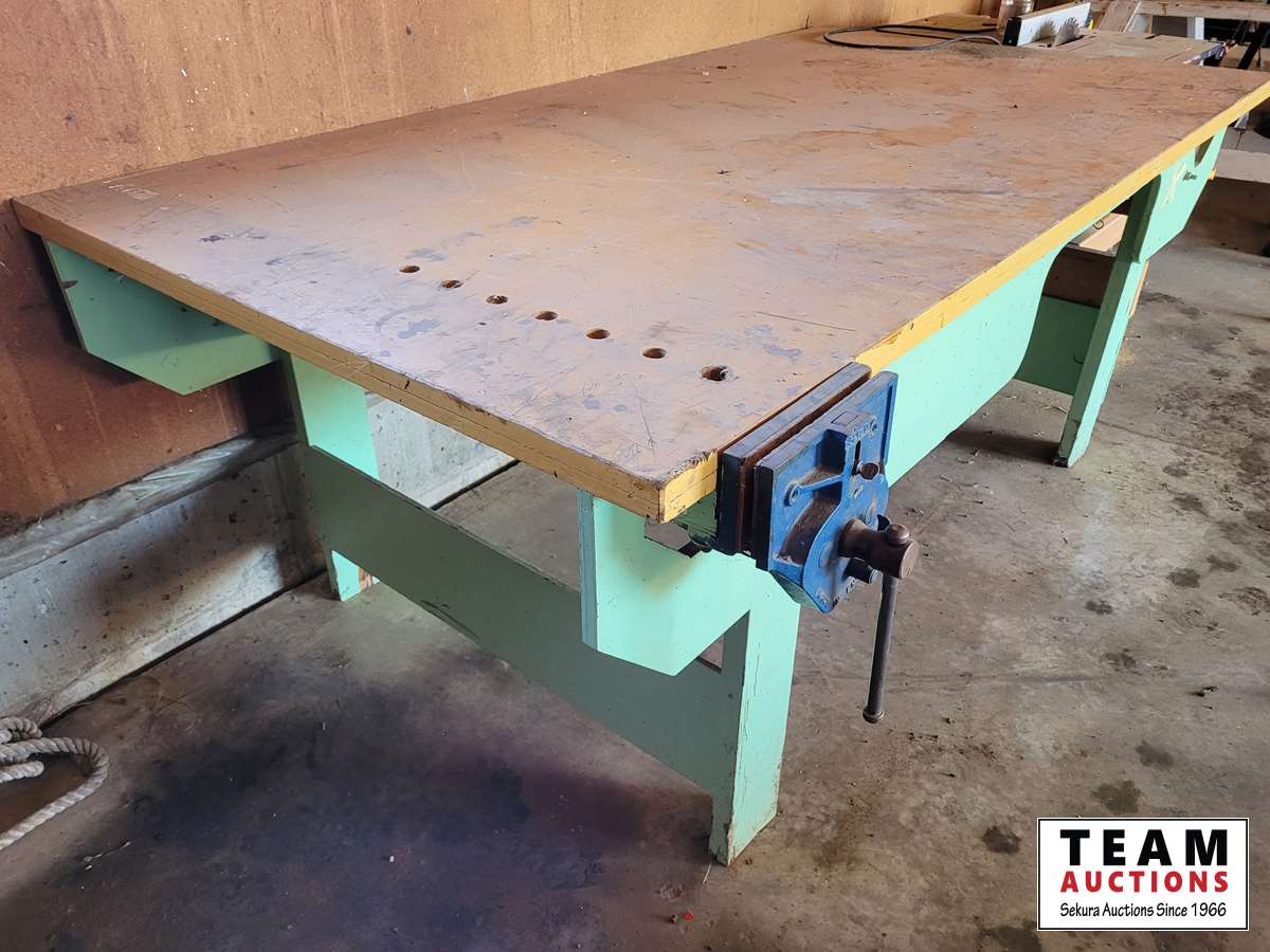29 Mastercraft 14 Inch Table Saw & Vise Attached to 4 X 8 Table