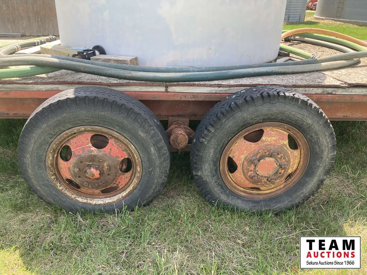 1250 gallon tank, miscellaneous 2 inch hose, miscellaneous fittings, trailer has walking beam