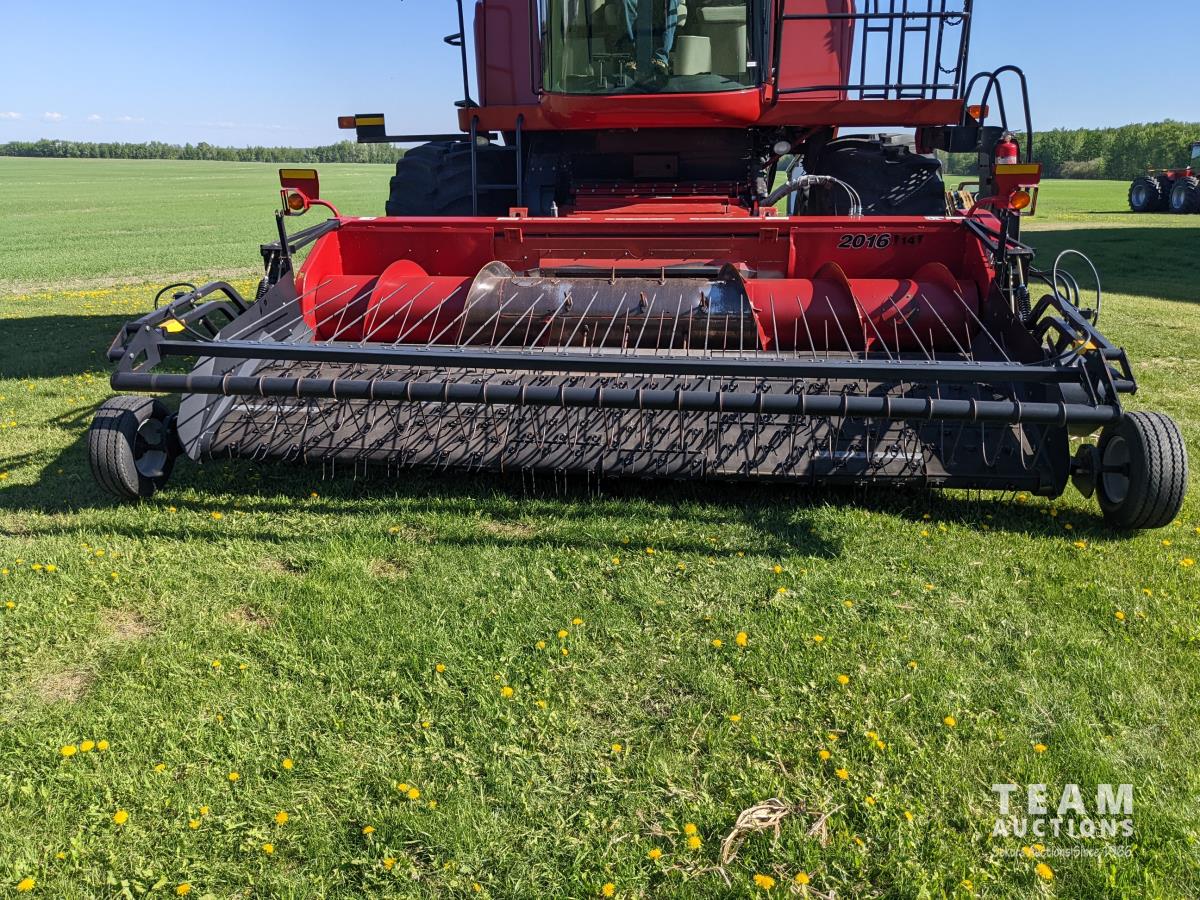 2016 Case IH 14 ft pickup header, auto height, fore & aft, reverser, Hopper Topper, long unload auger, 900/60R32 front &R30 rear tires, 1691 engine hrs showing 1191 rotor hrs showing